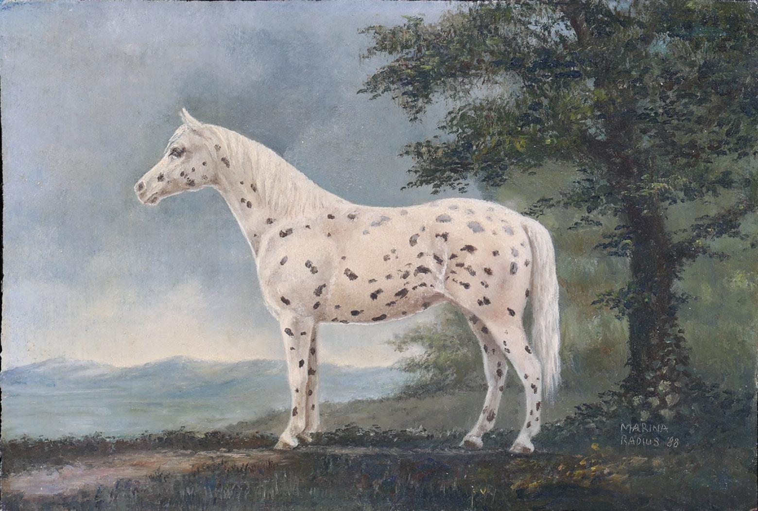 Marina Radius (1953), Gestippeld paard, olieverf op paneel, gedateerd 1988, 10,5 x 15 cm.