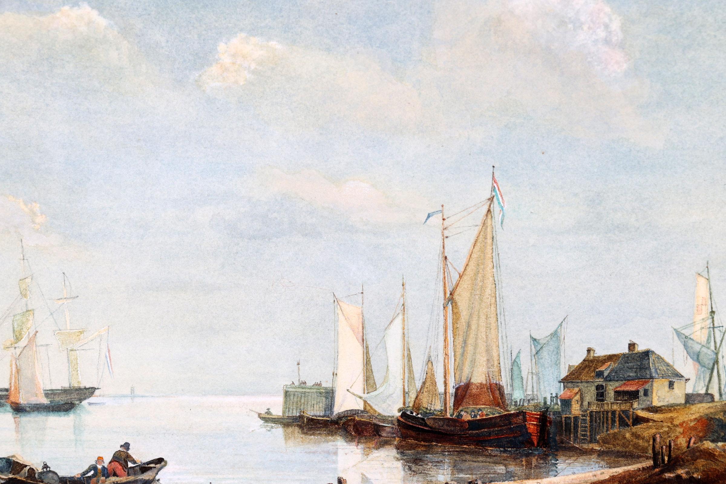Jan Christianus Schotel (1787-1838), Afgemeerde boten langs de kust, aquarel, 17 x 25 cm., Provenance: particuliere collectie