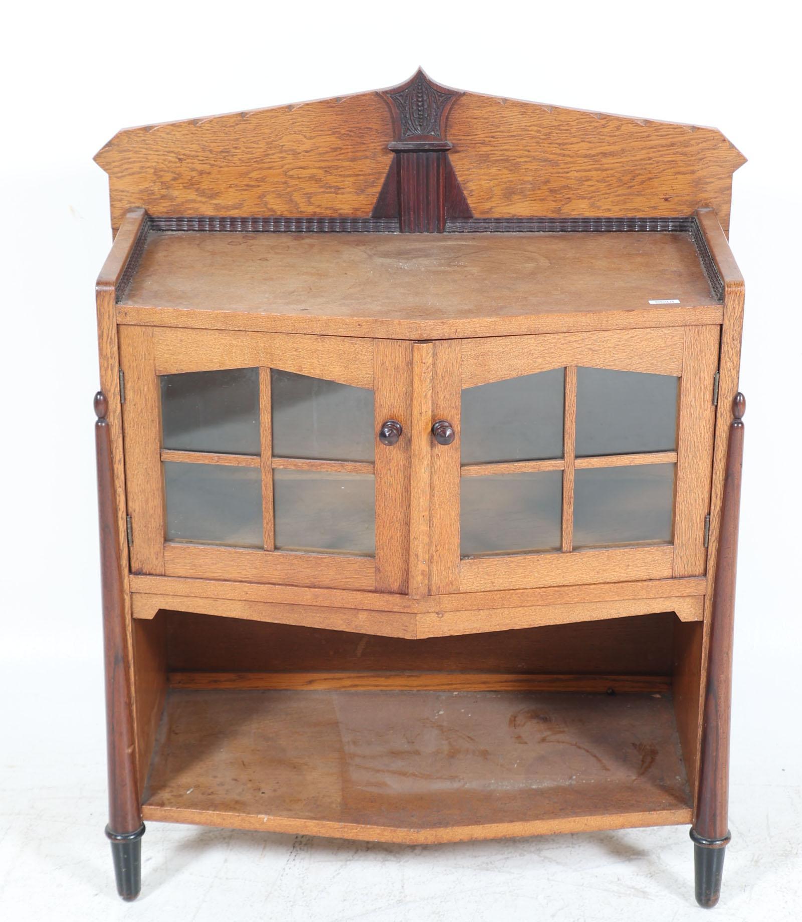 Eikenhouten Art Deco theekast, h.98 x b.77 x d.38 cm.