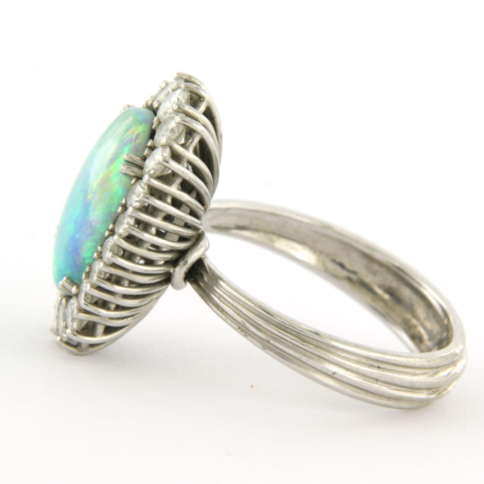 18 Kt. witgouden met platina entourage-ring bezet met opaal en briljant geslepen diamanten tot. 1.00 ct. - ringmaat 18.25(57)