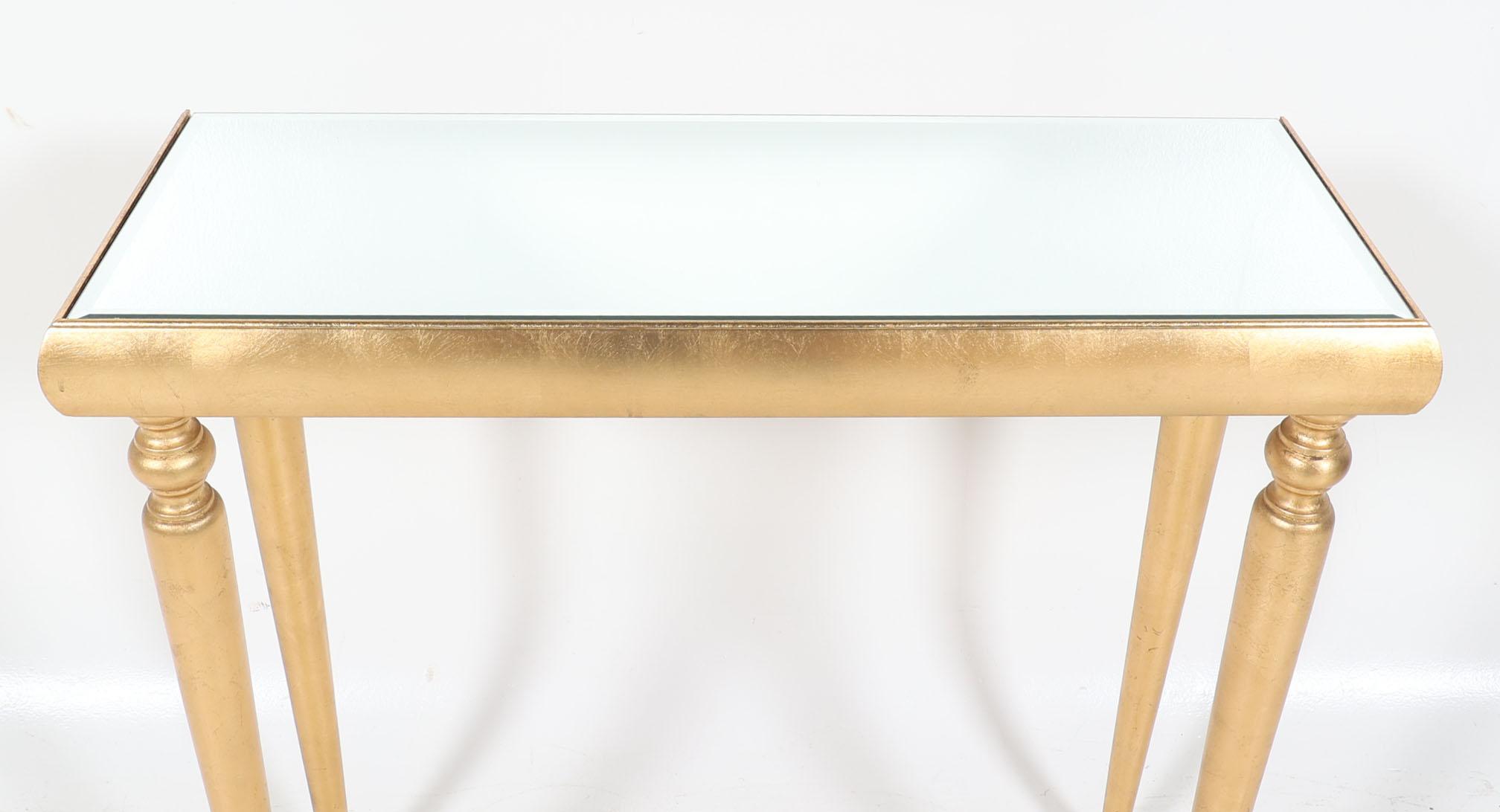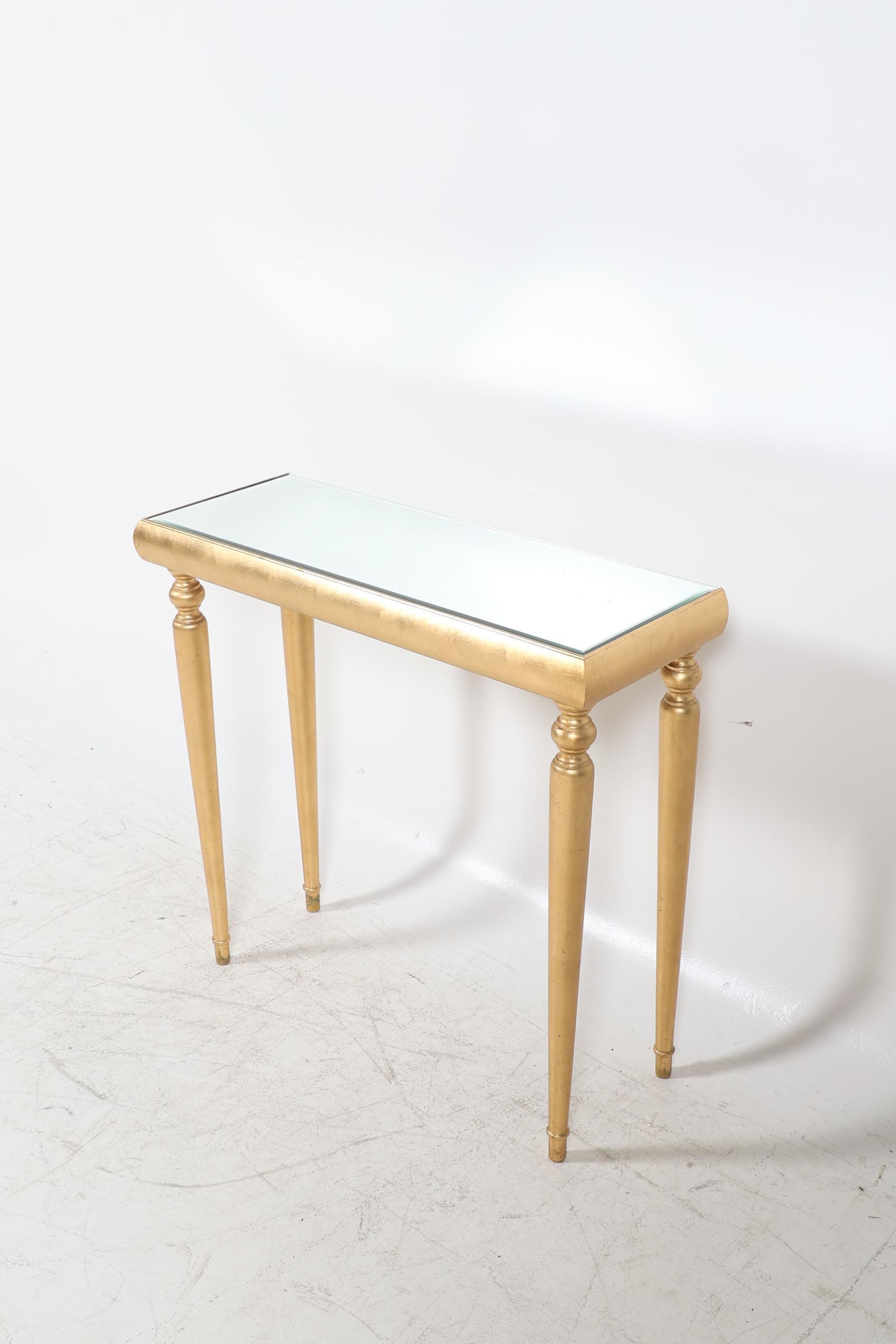 Goudkleurige wandtafel met spiegel blad, h.81 x b.85 x d.32 cm.