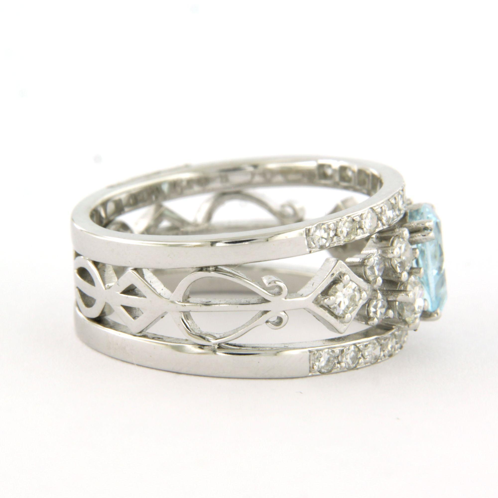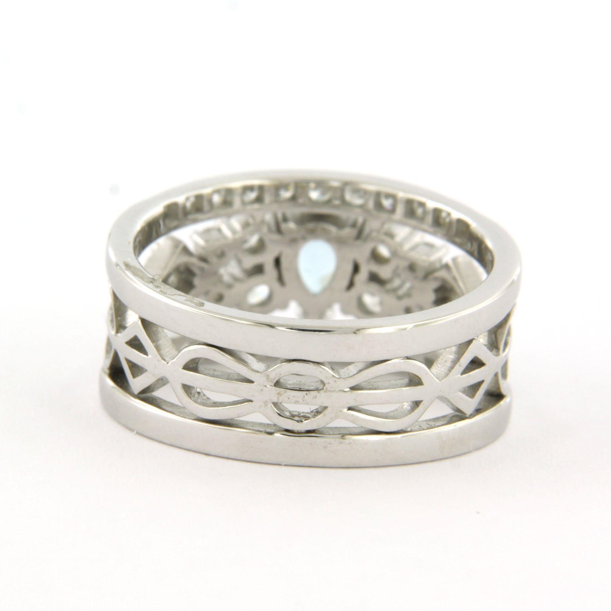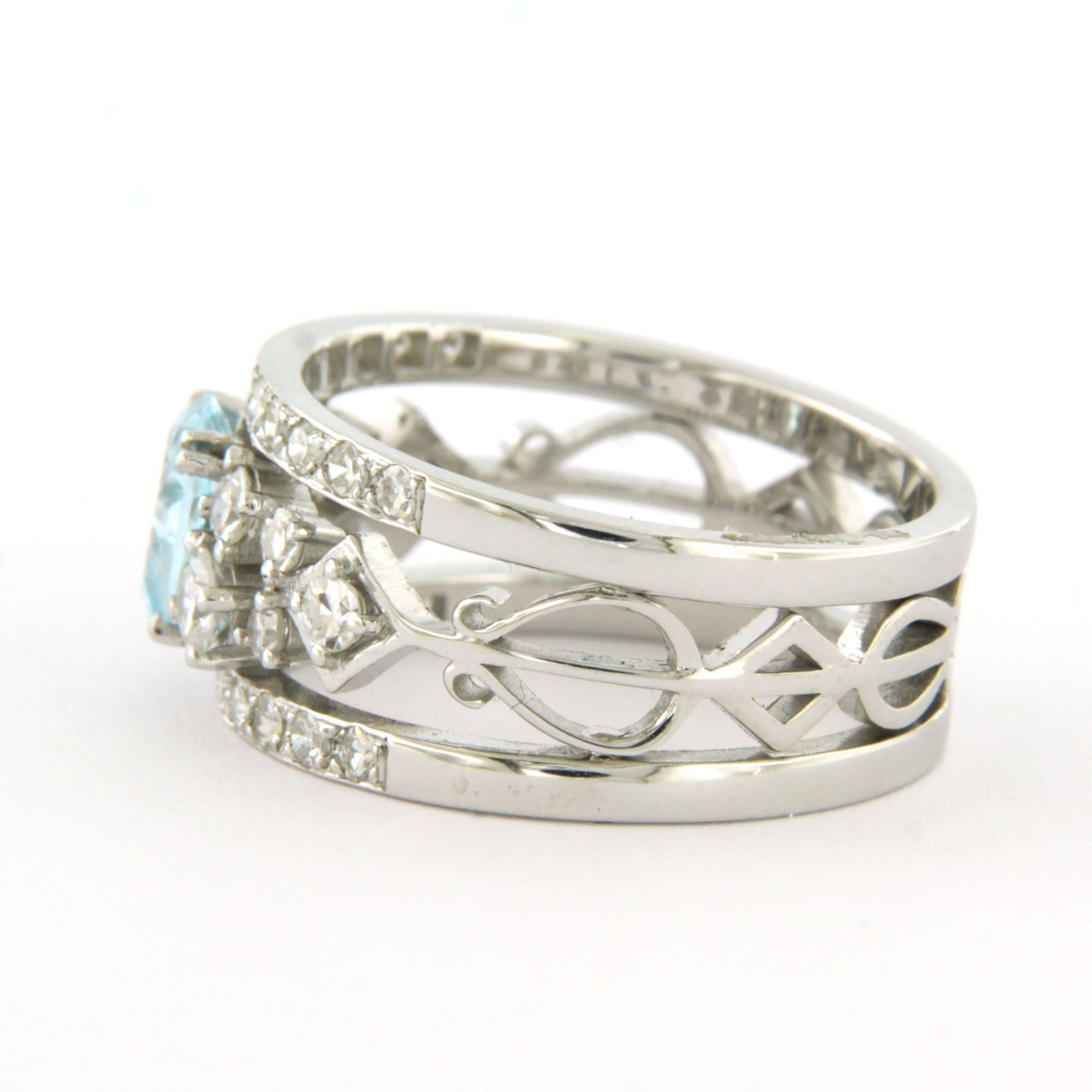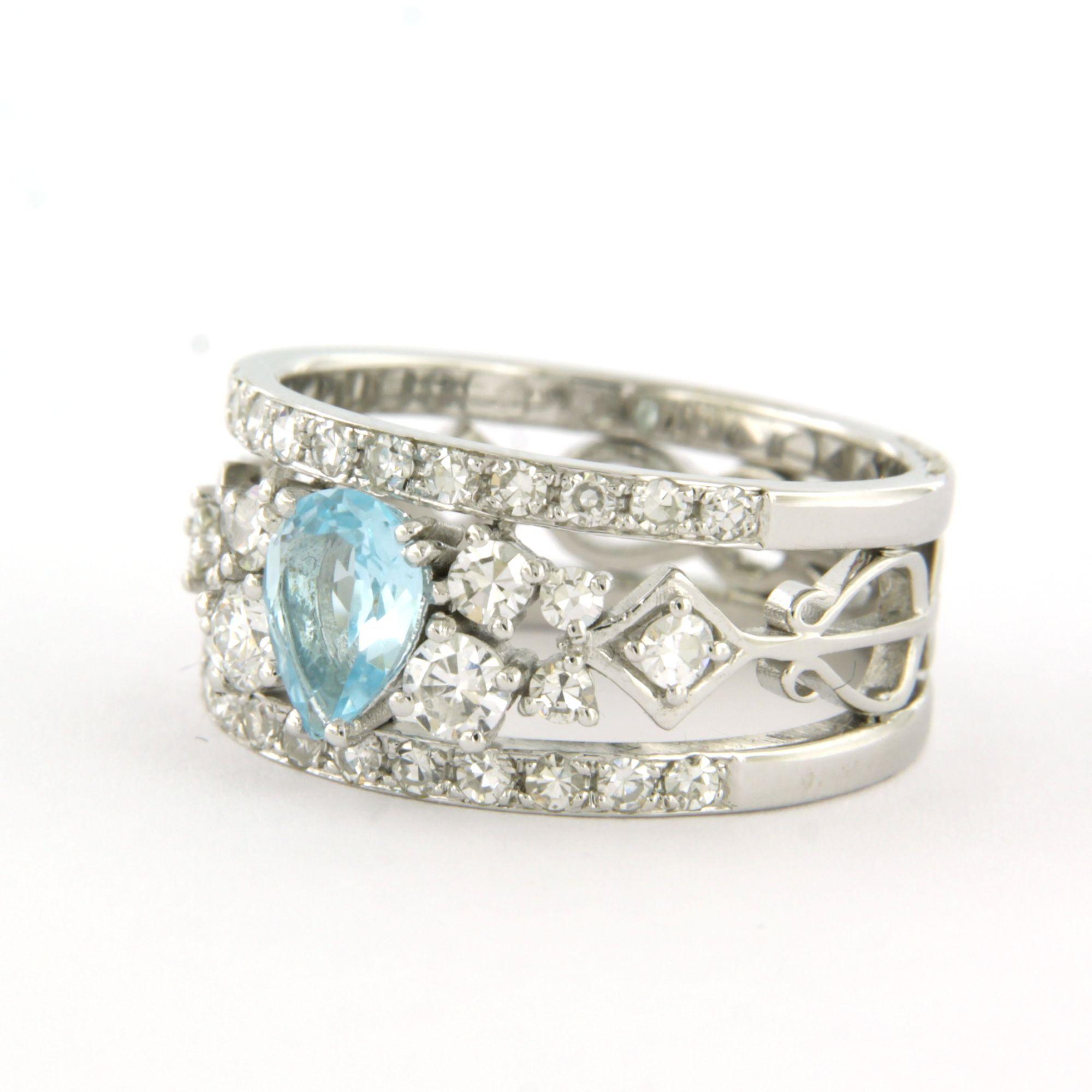 18 Kt. witgouden ring bezet met een topaas en briljant geslepen diamanten tot 0.80 ct. - ringmaat 17.5(55)