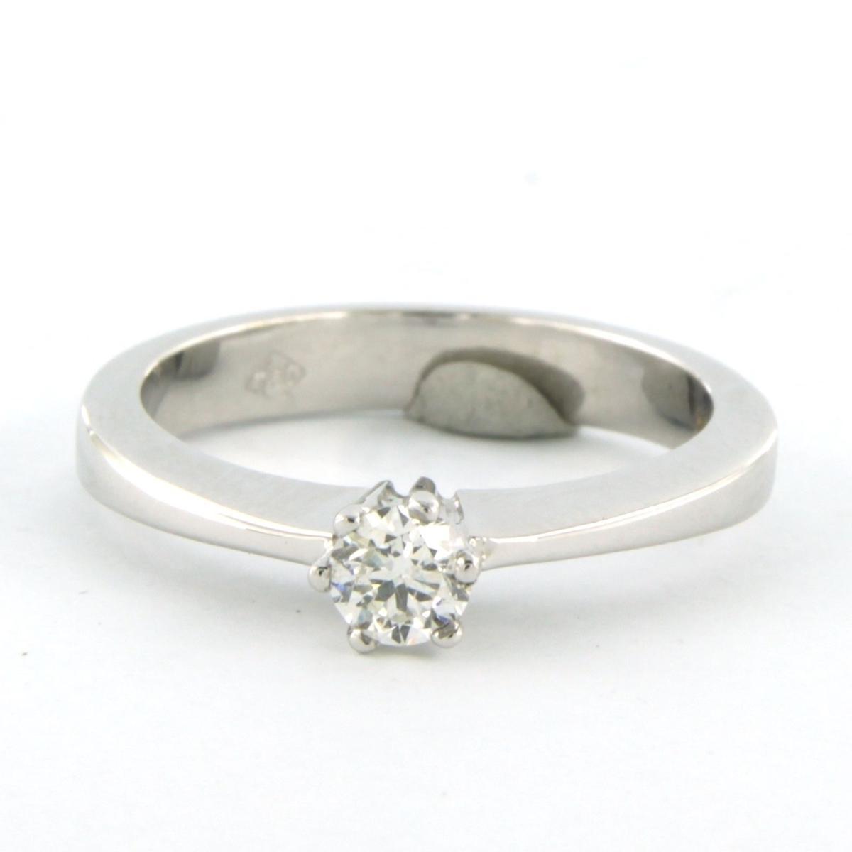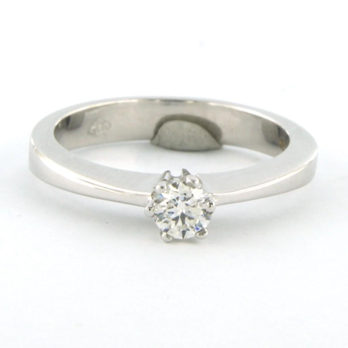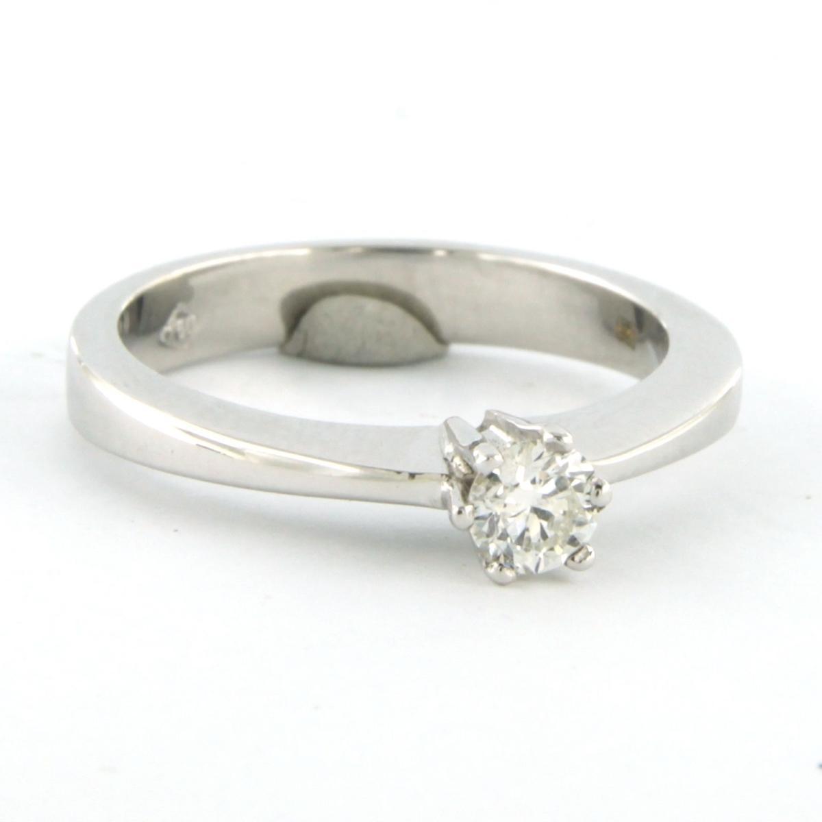 18 Kt. witgouden solitairring bezet met briljant geslepen diamant tot. 0.30 ct. - ringmaat 17.5(55)