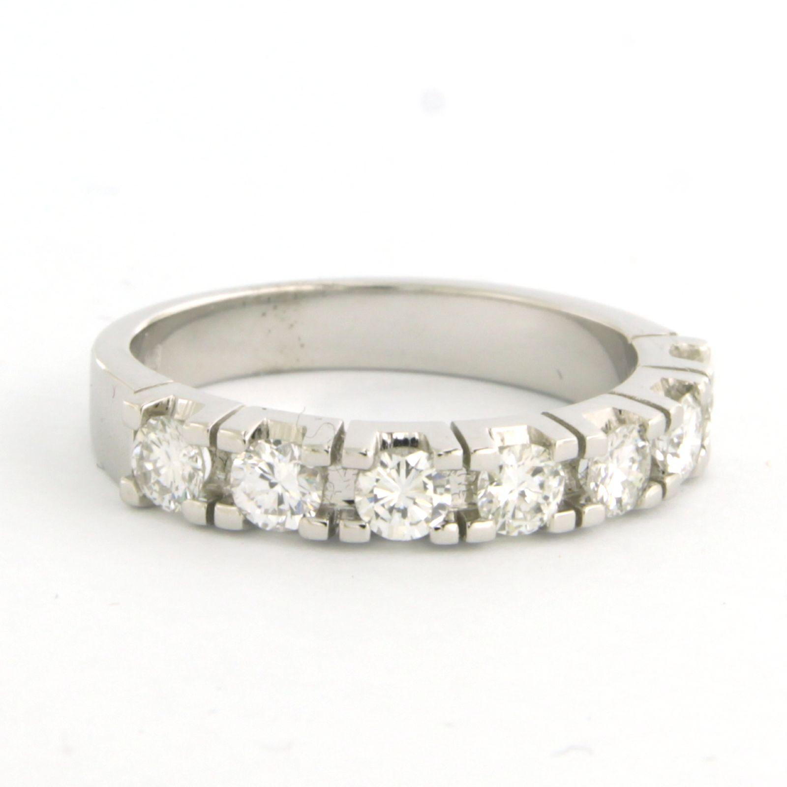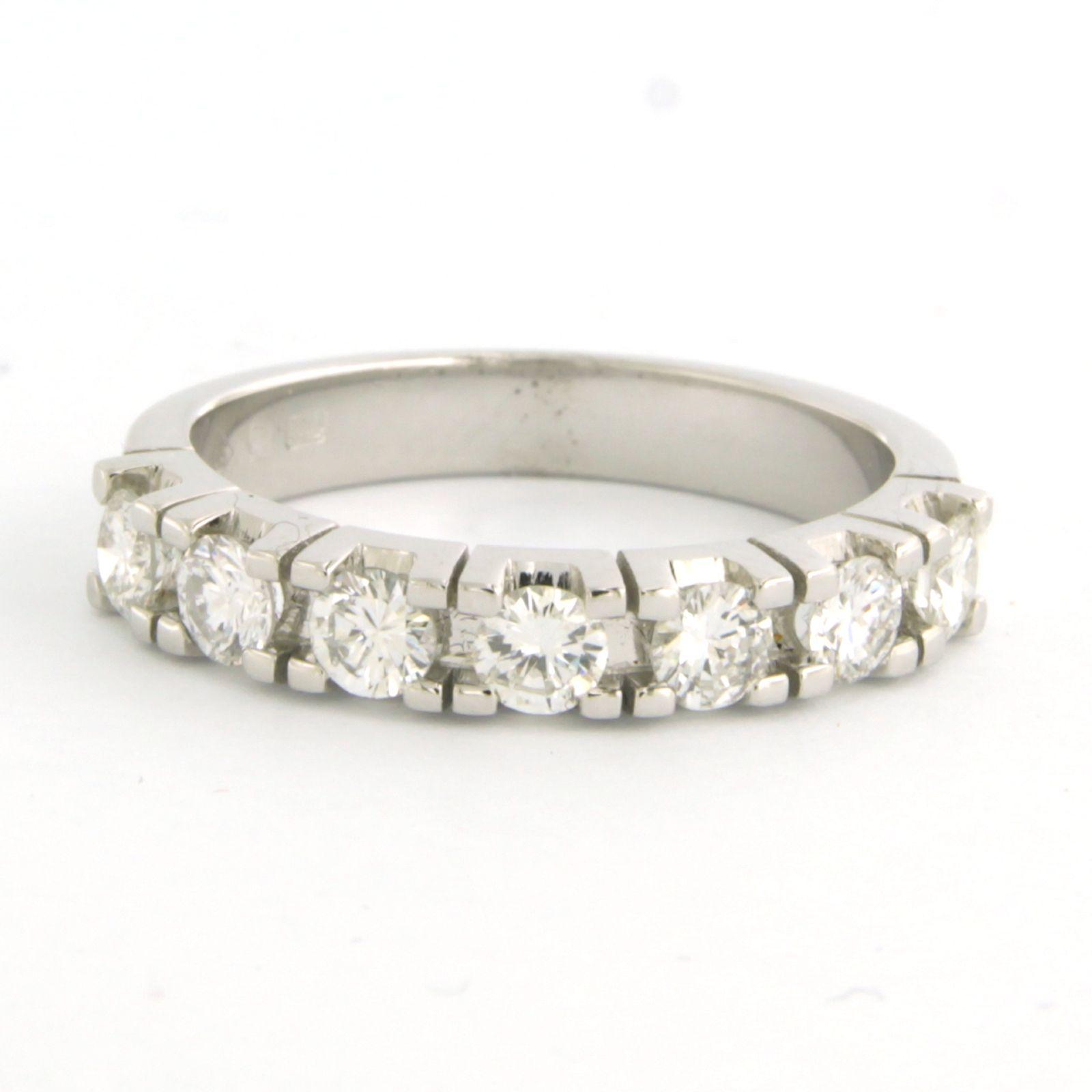 14 Kt. witgouden rijring bezet met briljant geslepen diamant tot. 0.88 ct. - ringmaat 17.25(54)