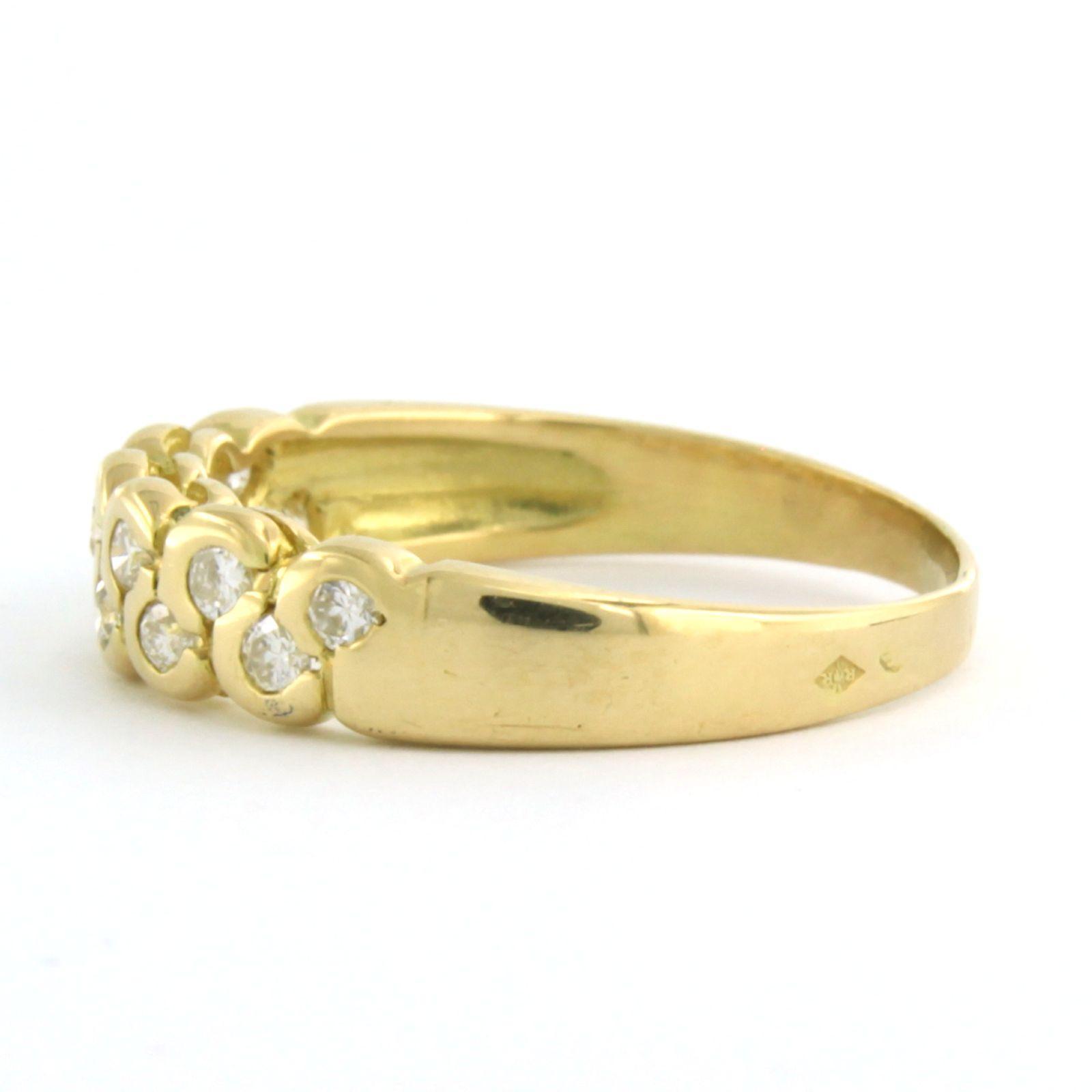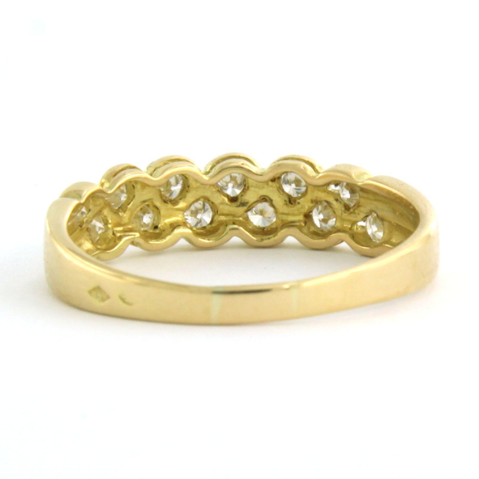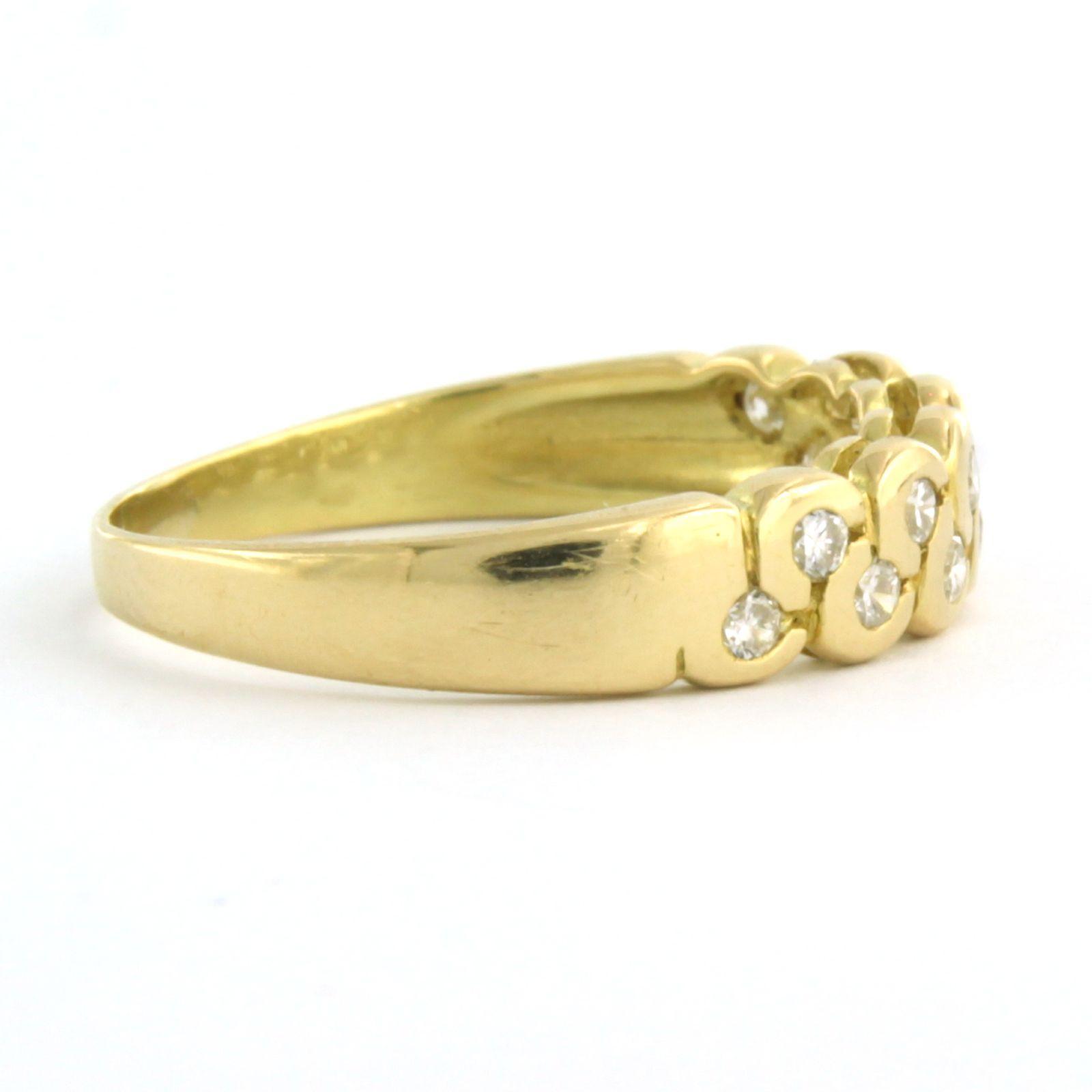 18 Kt. geel gouden ring bezet et briljant geslepen diamanten tot. 0.36 ct. - ringmaat 18(57)