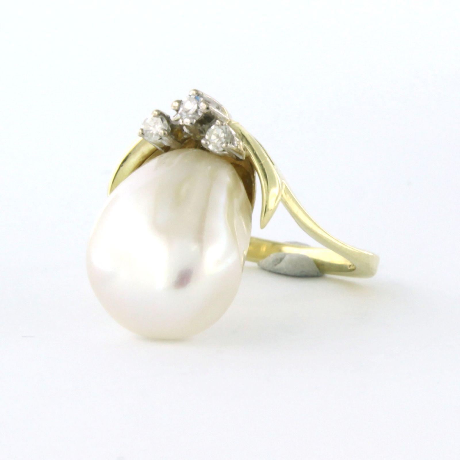 14 Kt. bicolour gouden ring bezet met parel en single cut geslepen diamant tot. 0.09 ct. - ringmaat 15(47)