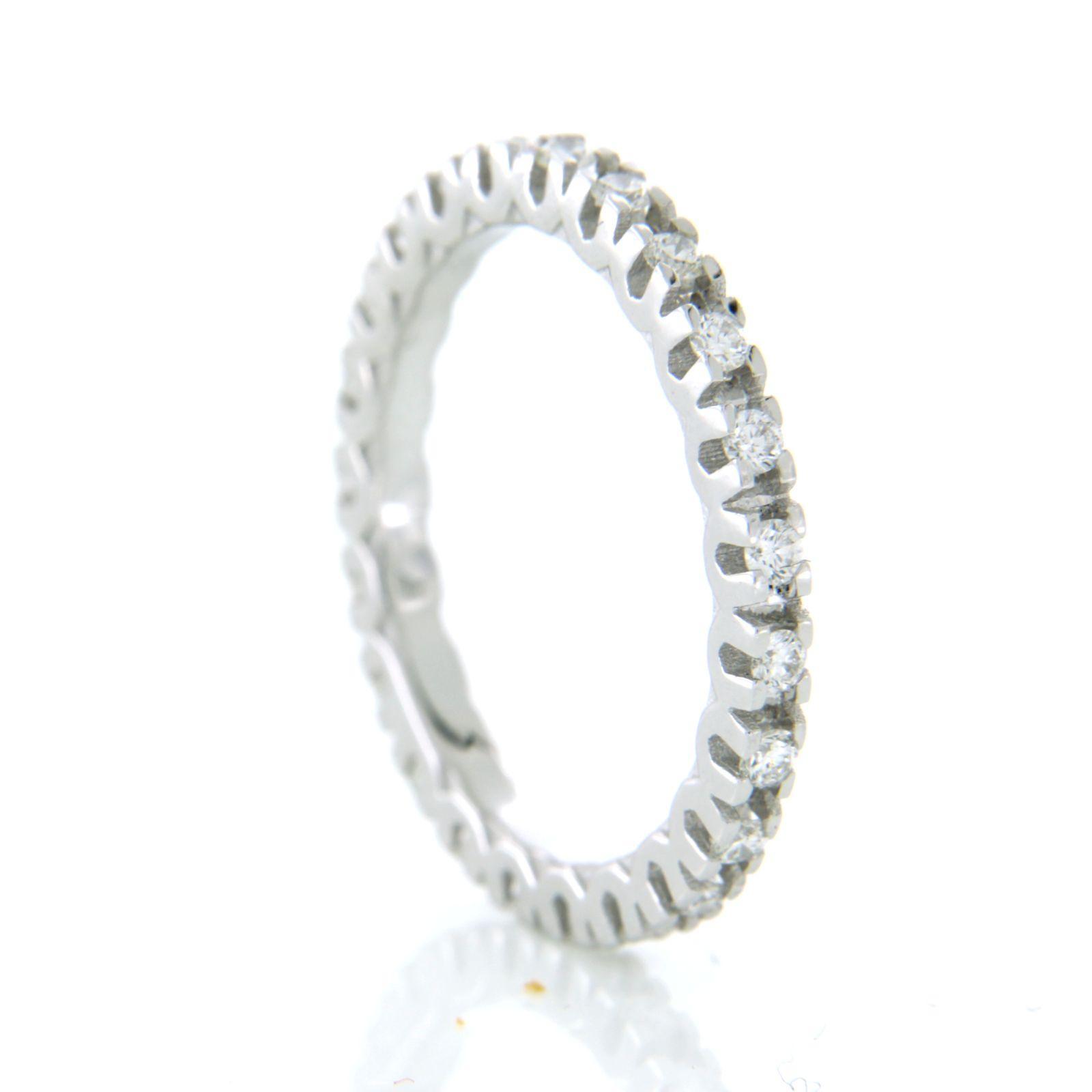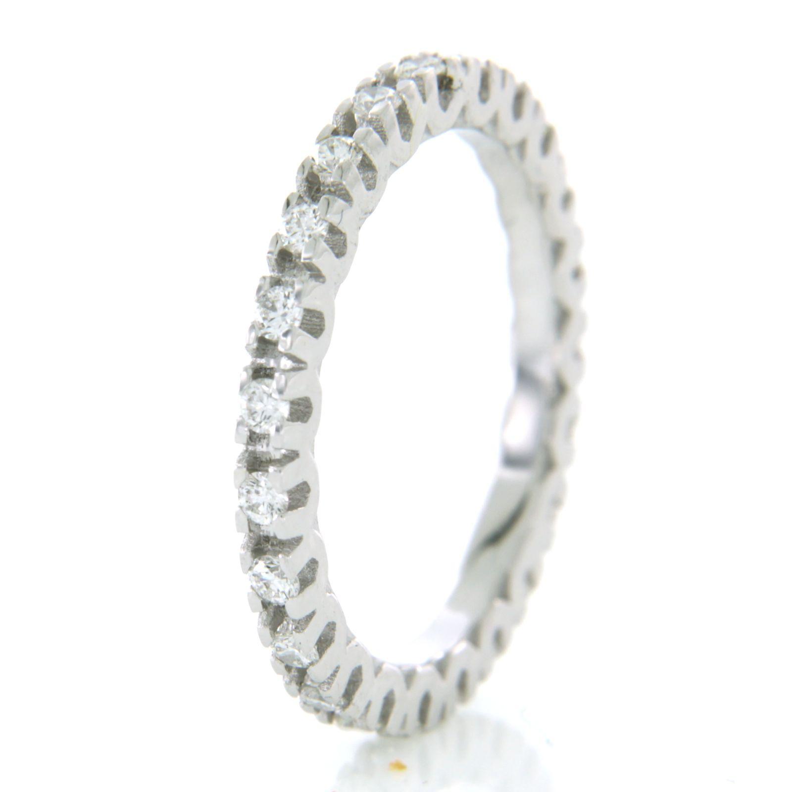 18 Kt. witgouden band ring bezet met briljant geslepen diamant tot. 0.65 ct. - ringmaat 17.5(55)