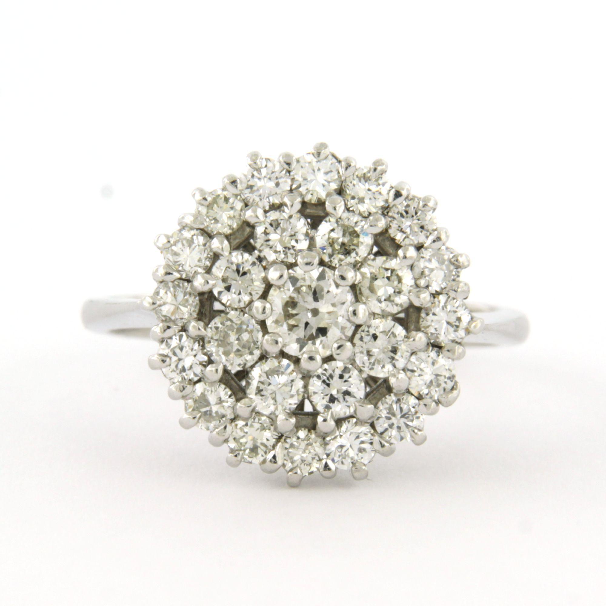 18 Kt. witgouden entourage ring bezet met briljant geslepen diamanten tot. 1.60 ct. - ringmaat 17.25(54)