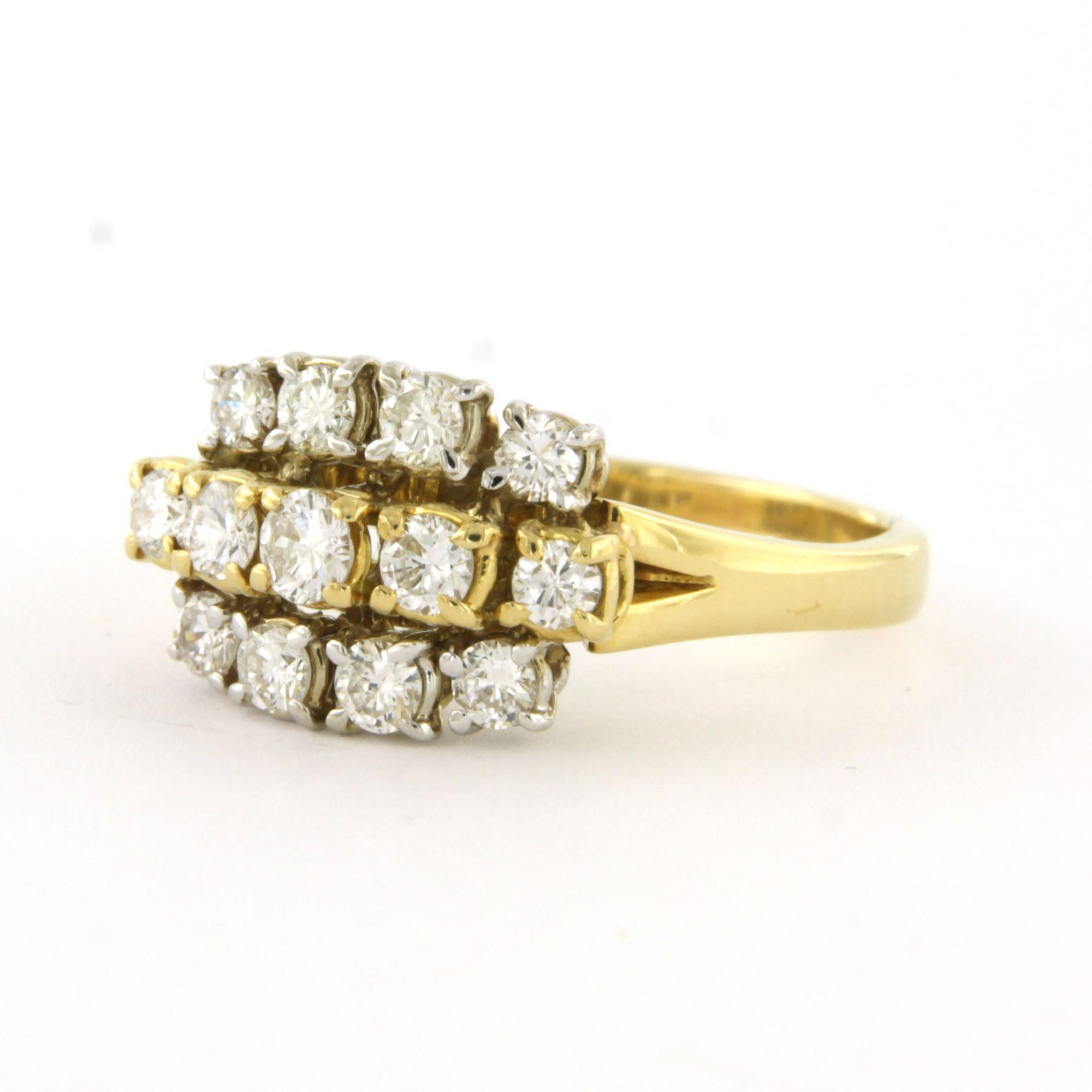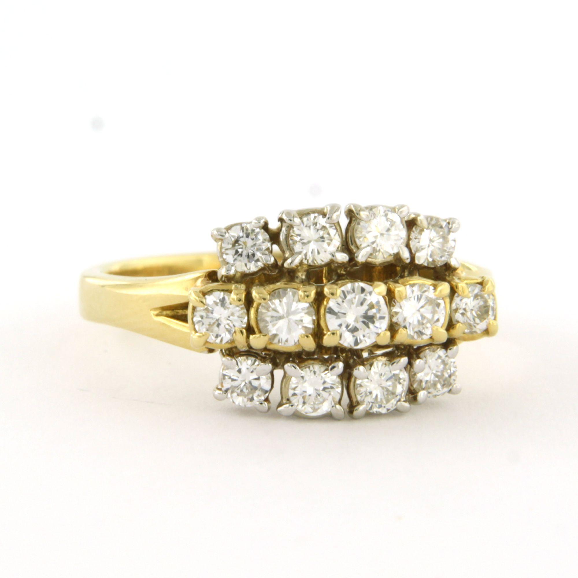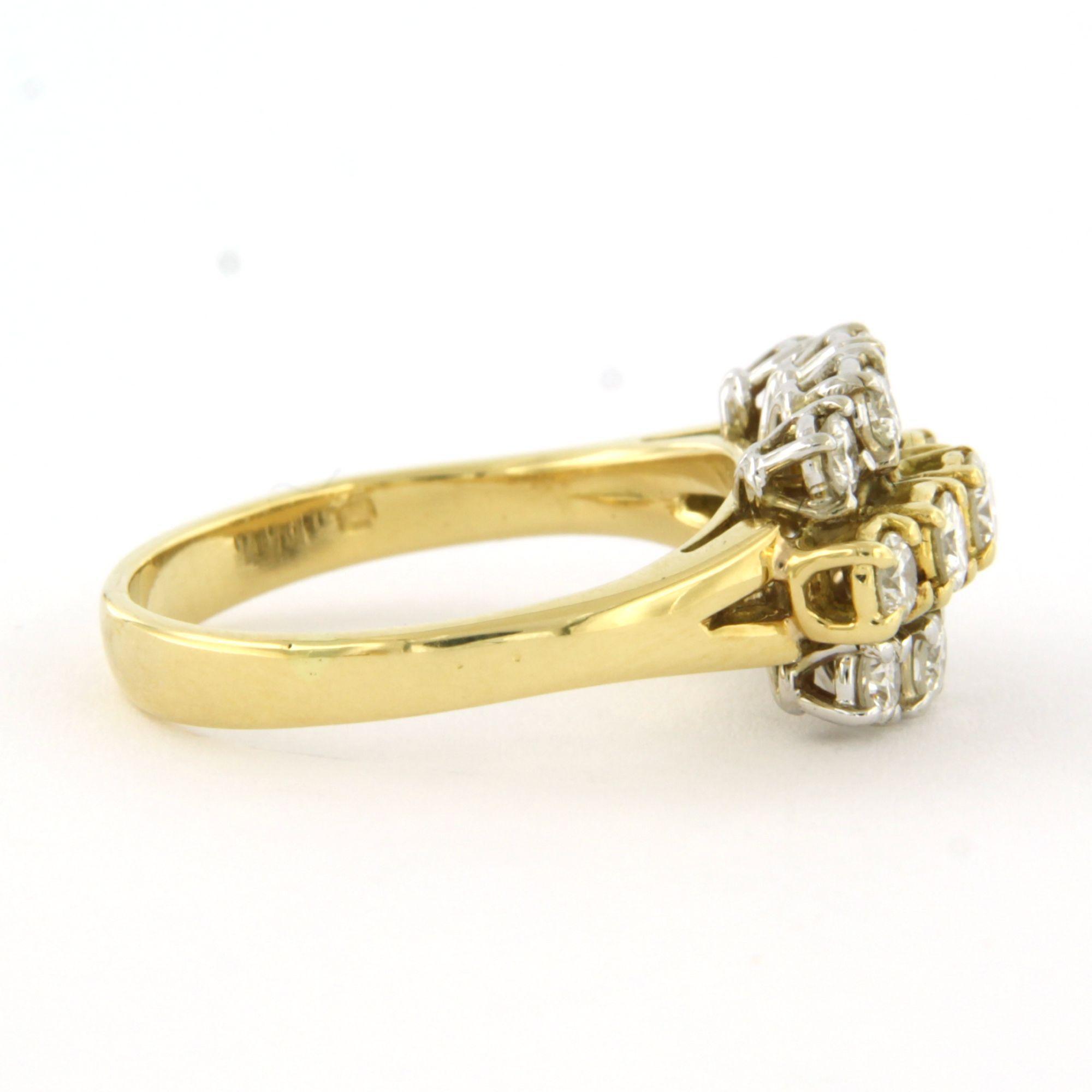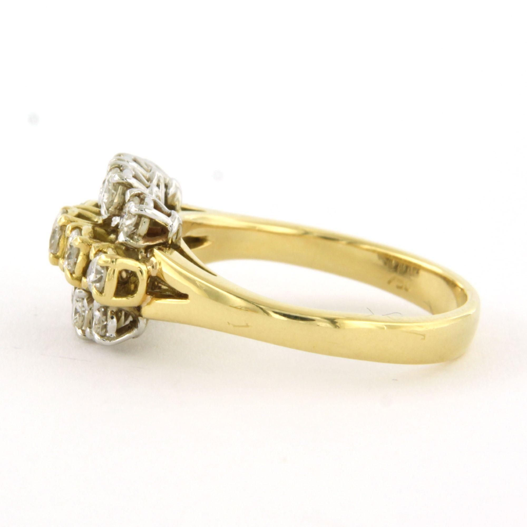 18 Kt. bicolour gouden ring bezet met briljant geslepen diamanten tot. 0.70 ct. - ringmaat 16.5(52)