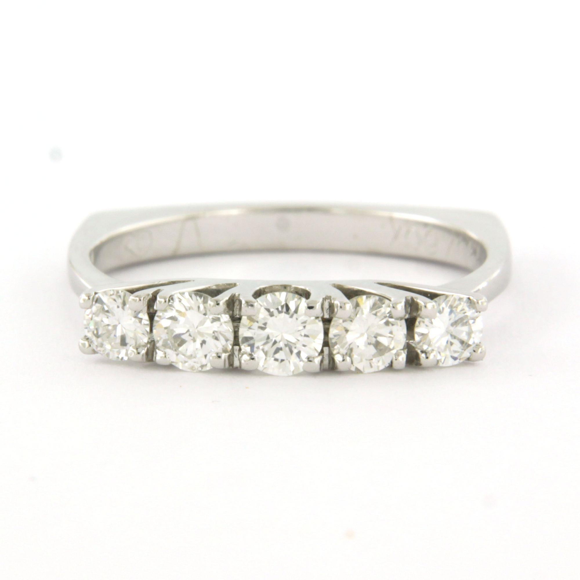 18 Kt. witgouden rijring bezet met briljant geslepen diamanten tot. 0.70 ct. - ringmaat 17.75(56)