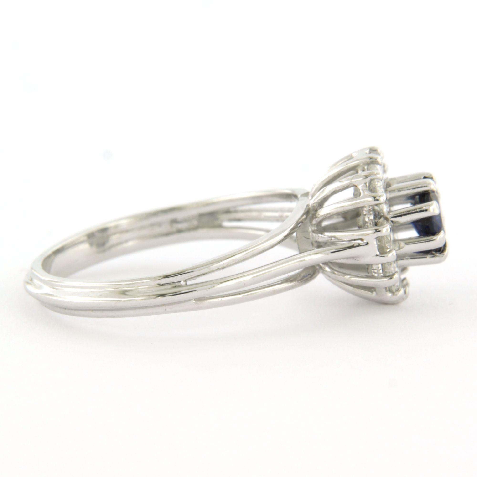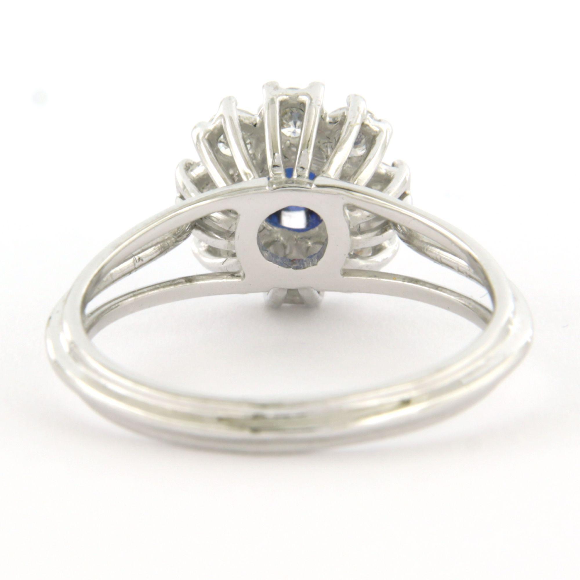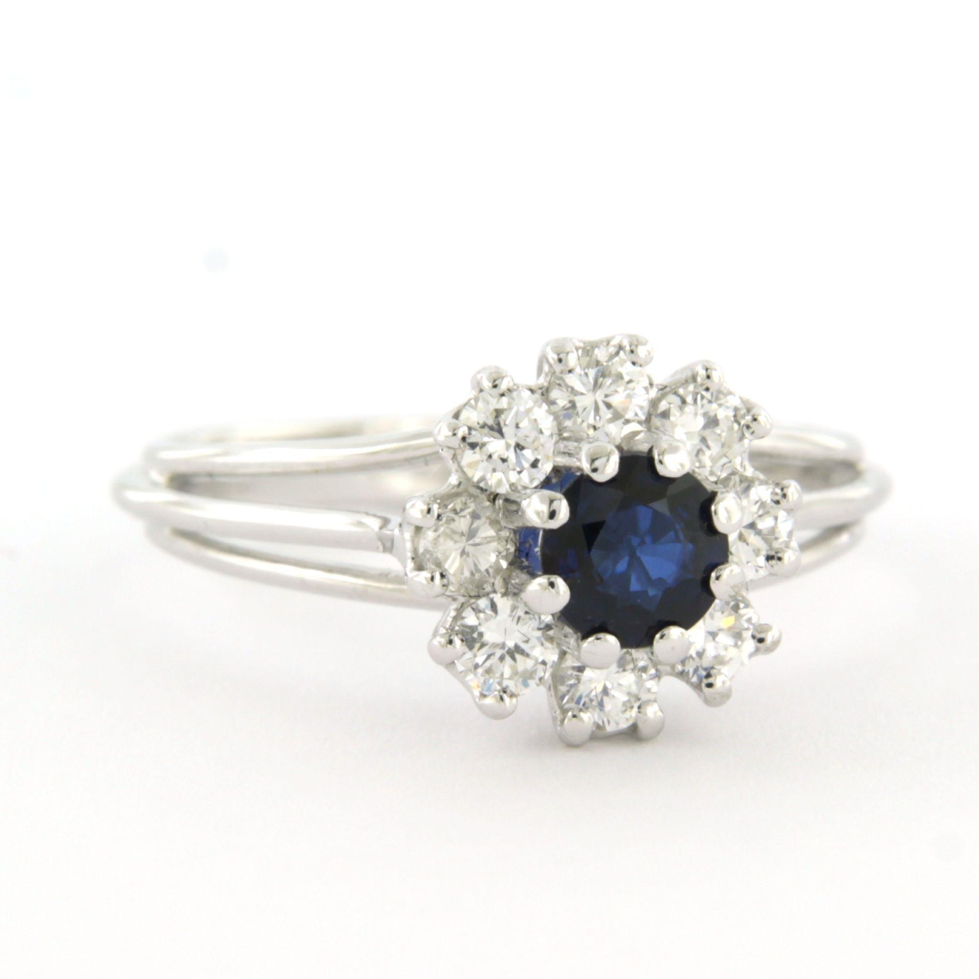 18 Kt. witgouden ring bezet met saffier en briljant geslepen diamant tot. 0.50 ct. - ringmaat 17.5(55)