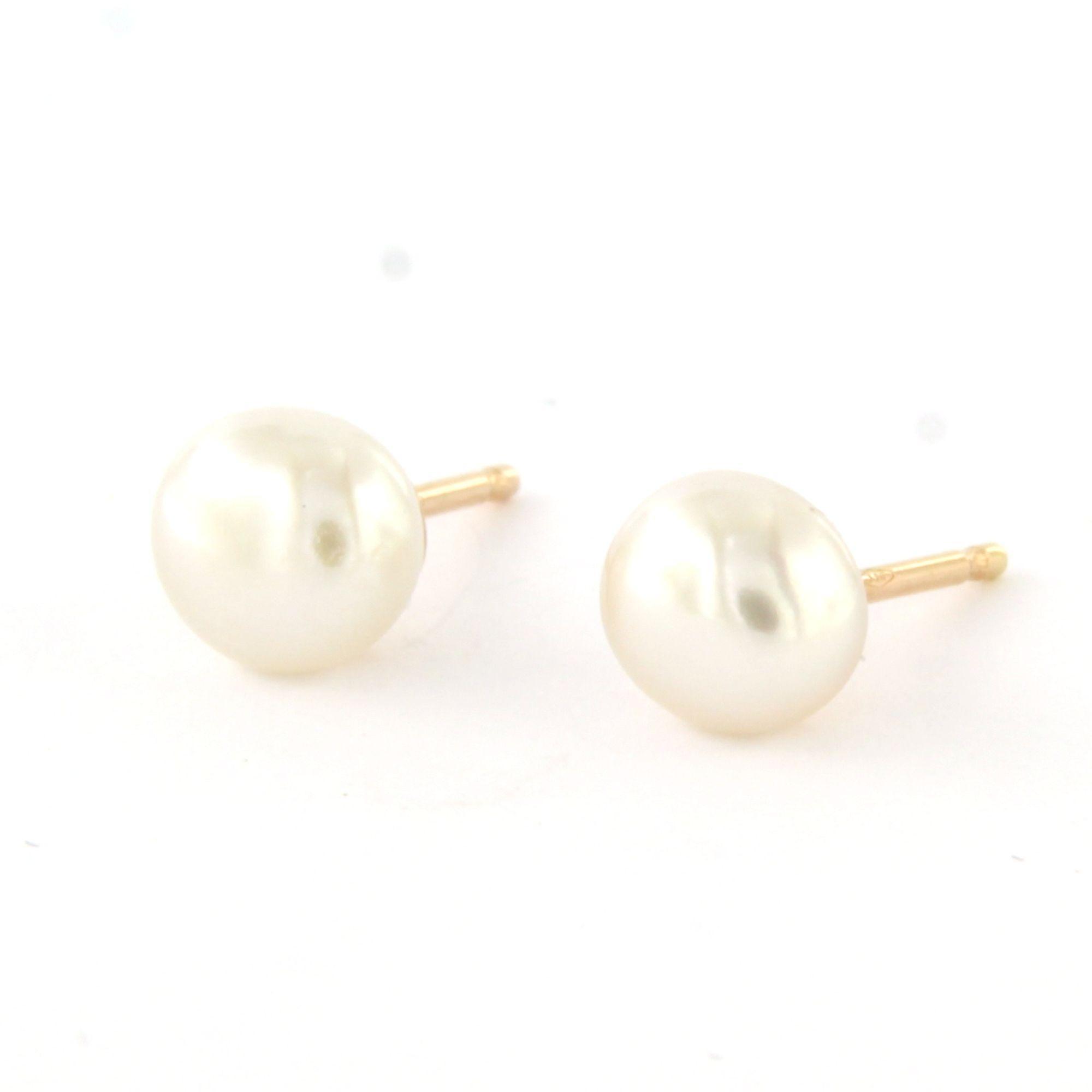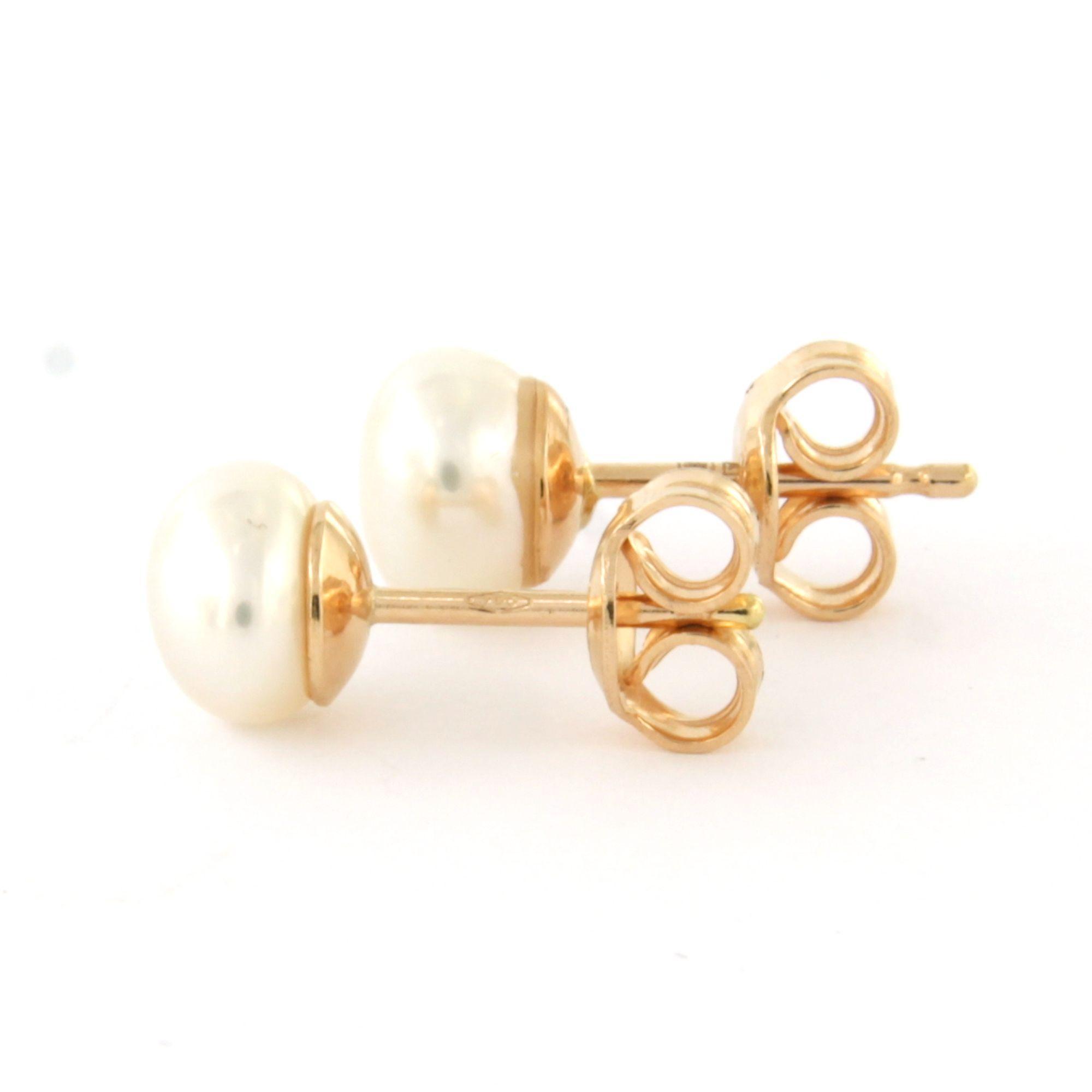 18 Kt. roségouden oorknoppen bezet met parel - 1.6 gram