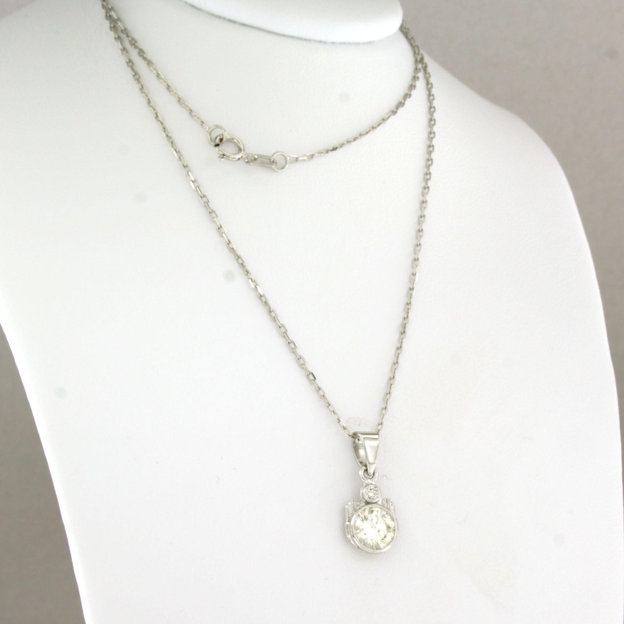 14 Kt. witgouden collier en hanger bezet met briljant geslepen diamant tot. 0.95 ct.