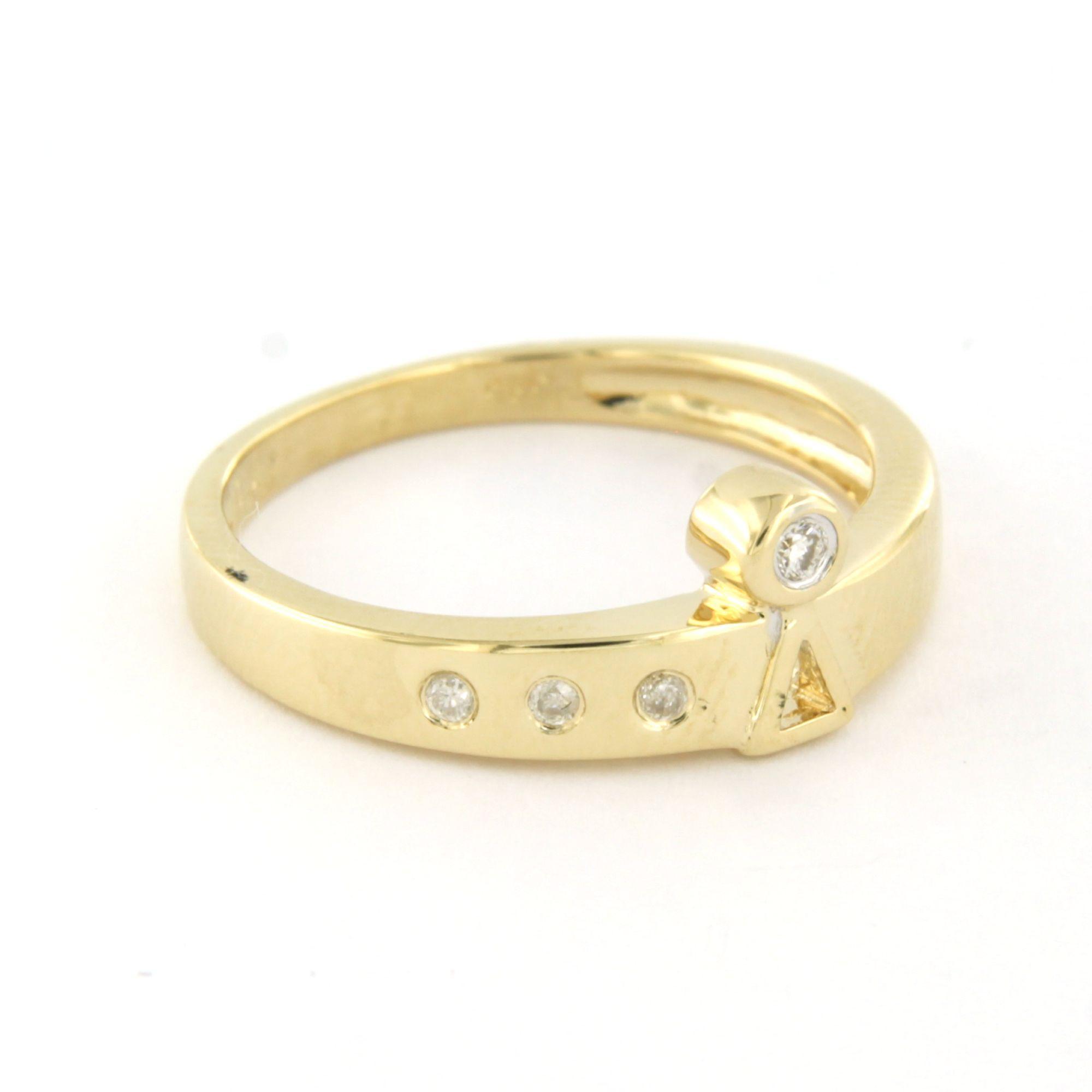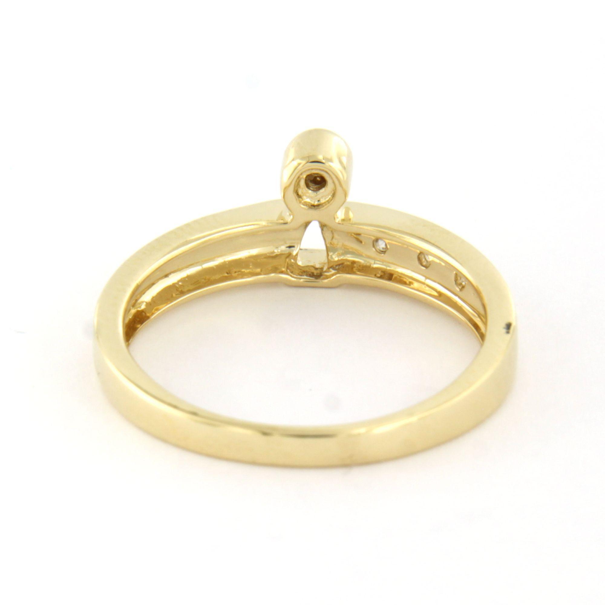 14 Kt. geelgouden ring bezet met briljant geslepen diamant tot. 0.05 ct. - ringmaat 16.5(52)