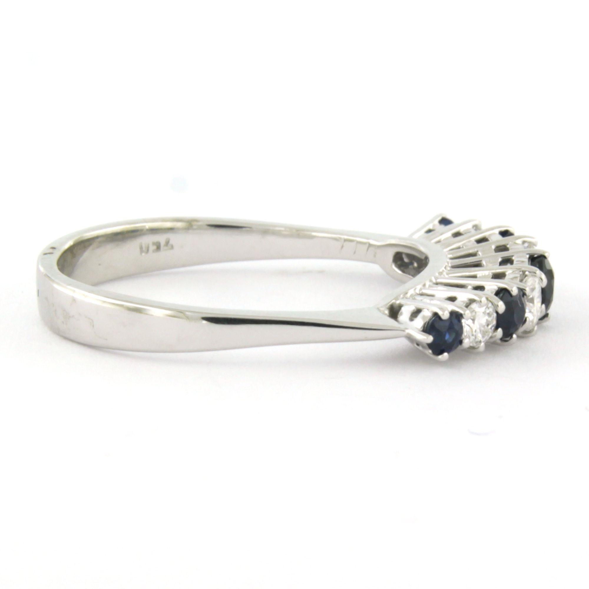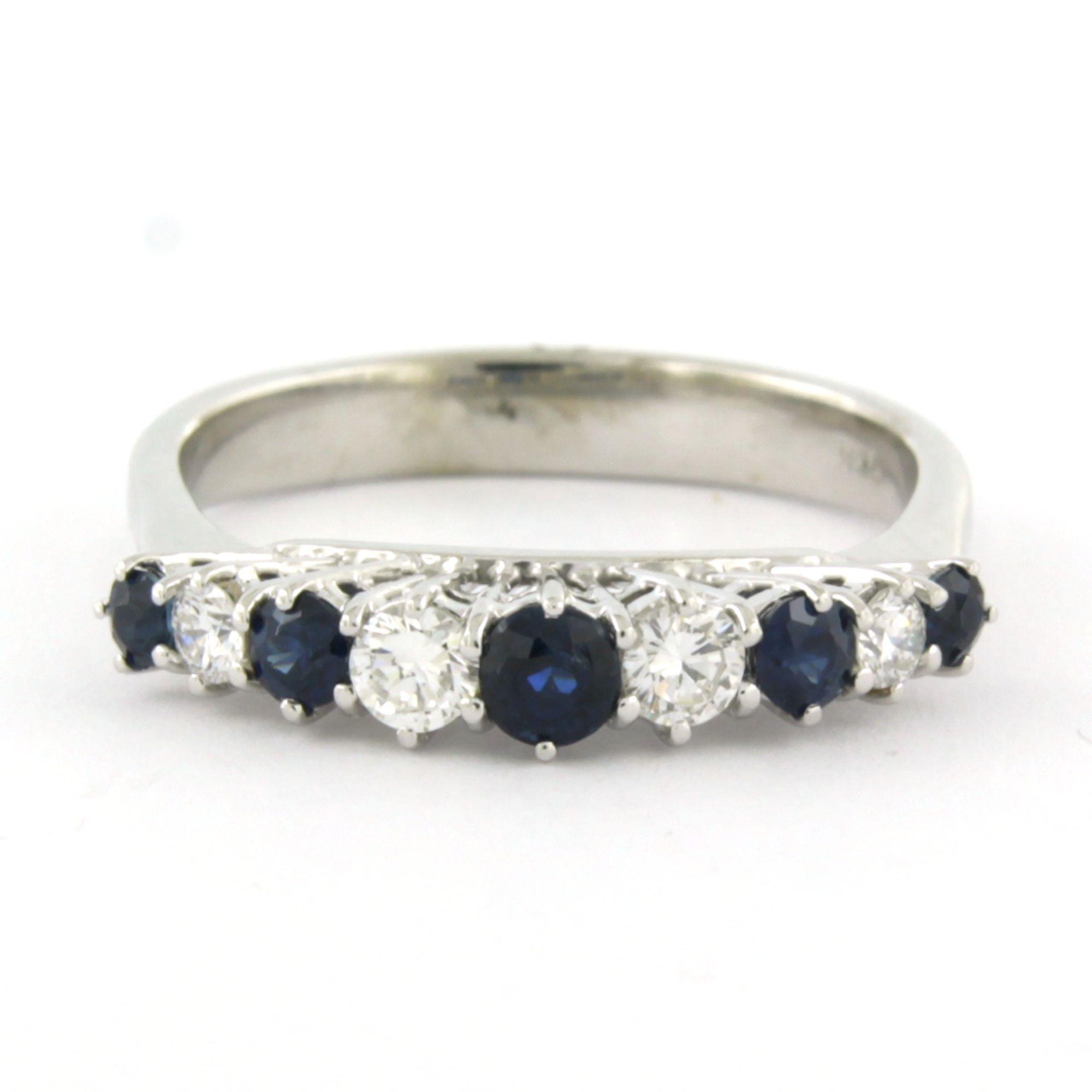 18 Kt. witgouden ring bezet met saffier en briljant geslepen diamant tot. 0.30 ct. - ringmaat 17.5(55)