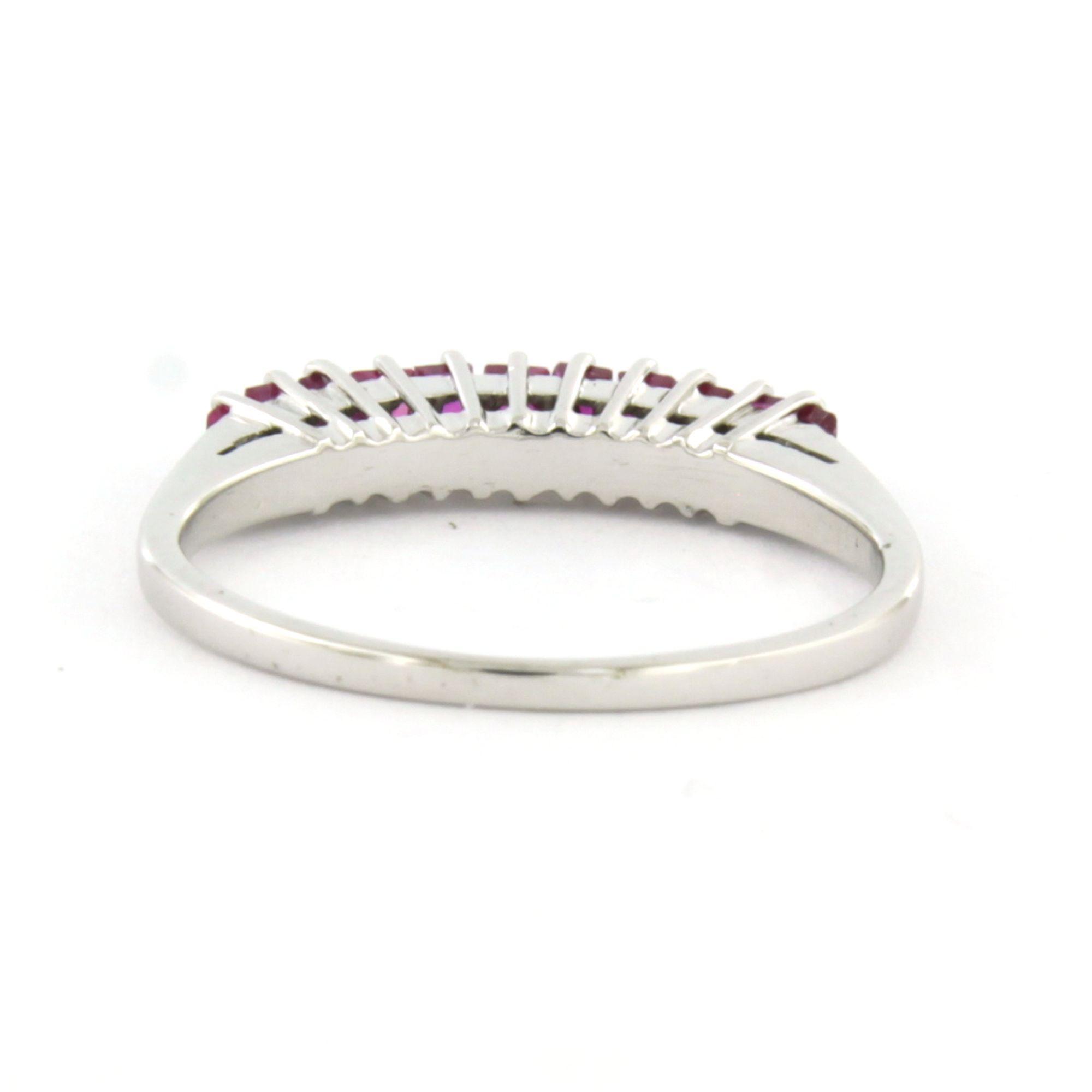 18 Kt. witgouden ring bezet met robijn - ringmaat 16.5(52)
