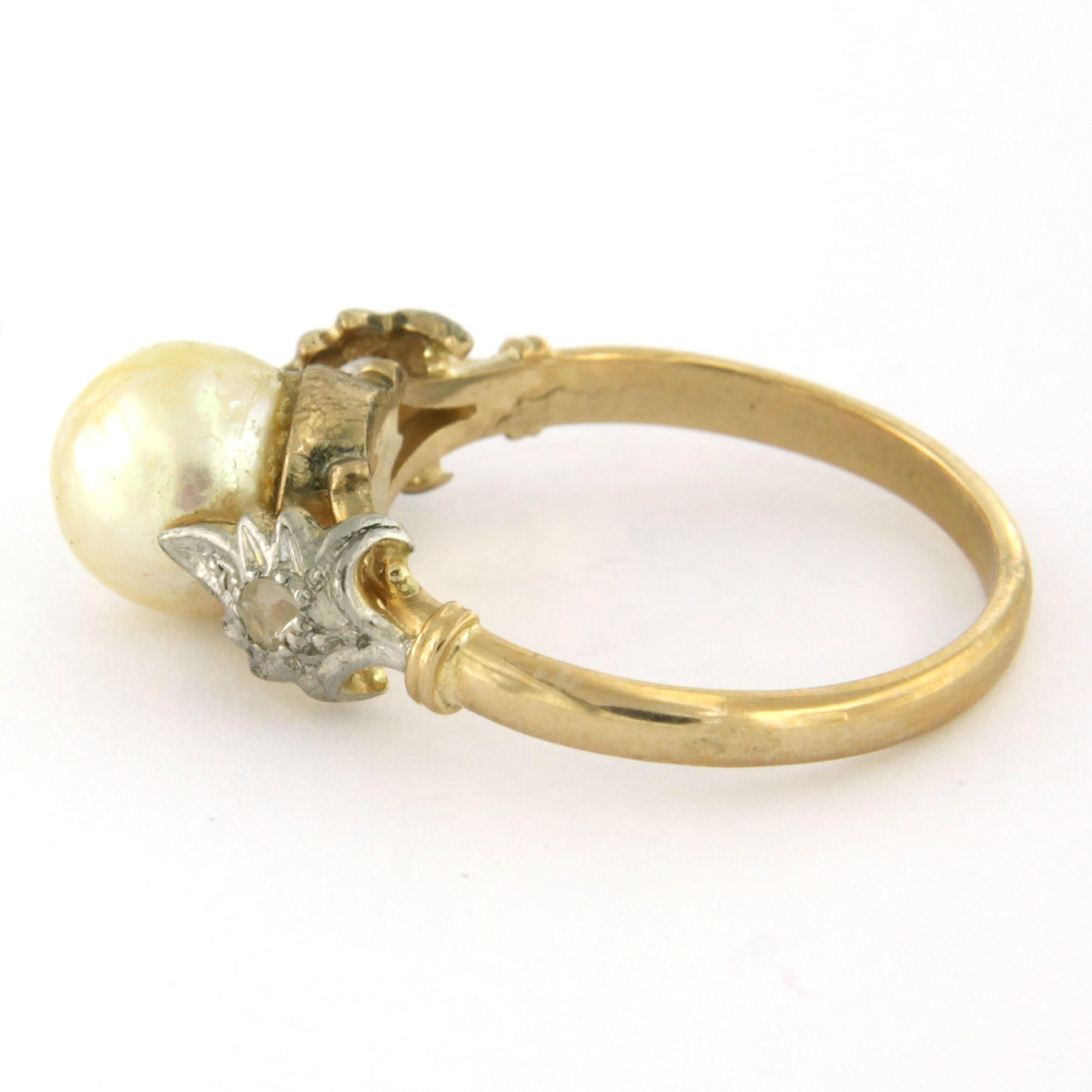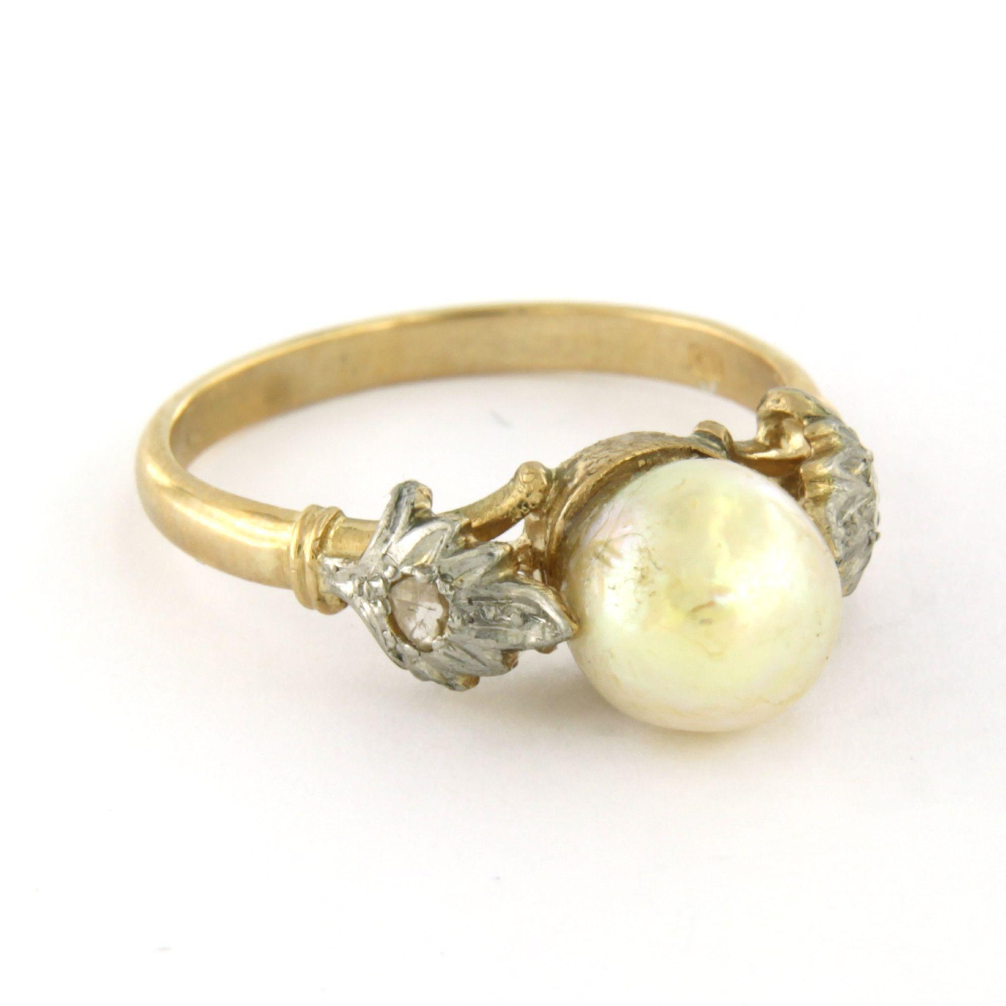 14 Kt. bicolor gouden ring bezet met parel en roosgeslepen diamant tot. 0.02 ct. – G/H - SI - ringmaat 17(53)
