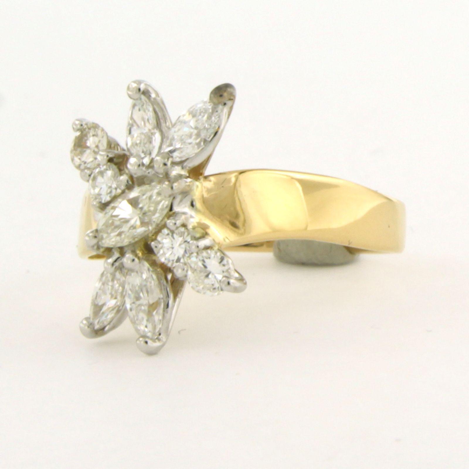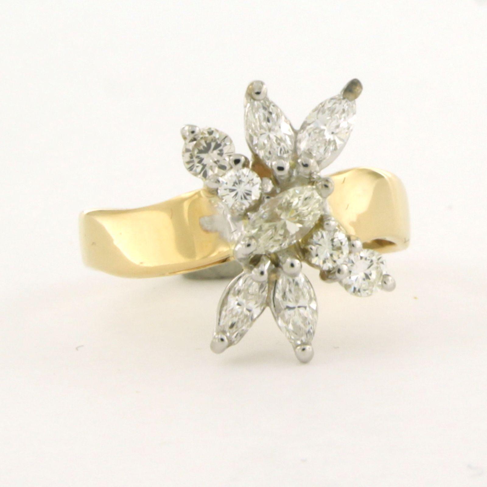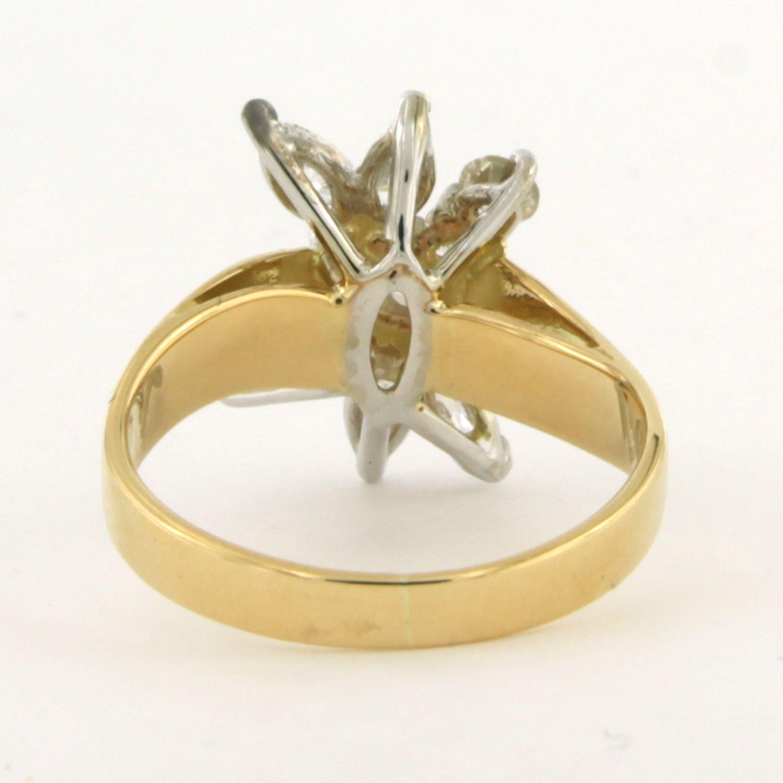 18 Kt. bicolor gouden ring met marquise en briljant geslepen diamant tot. 0.75 ct. – F/G - VS/SI - ringmaat 16(50)