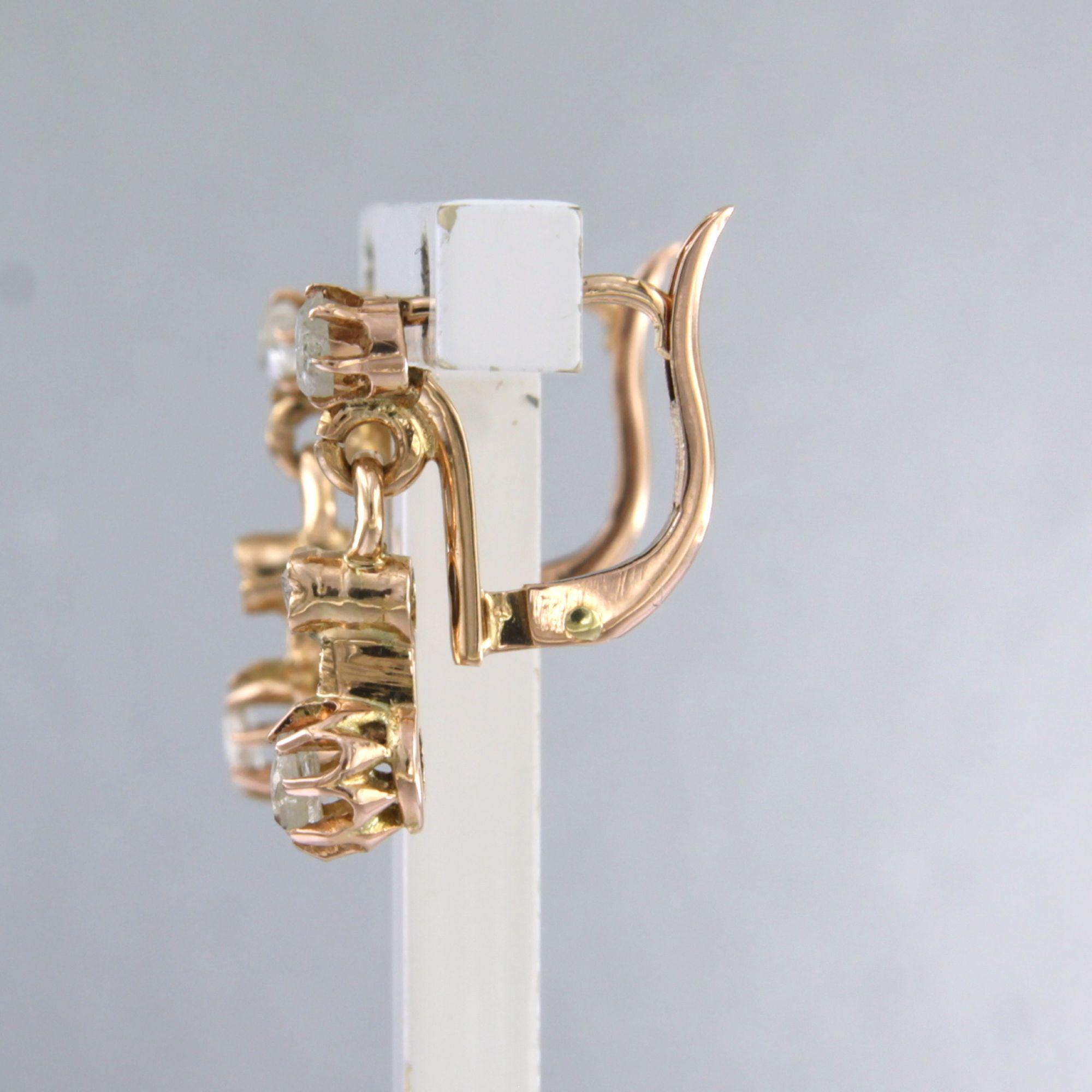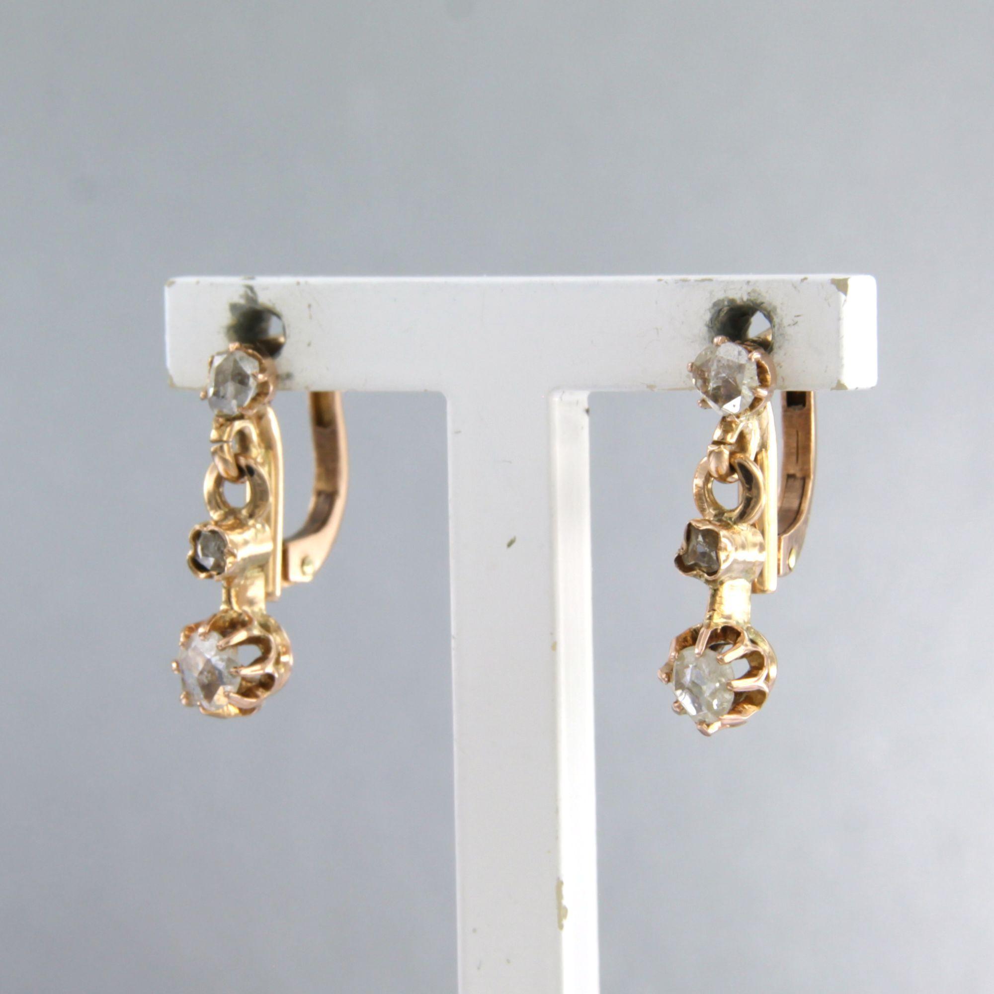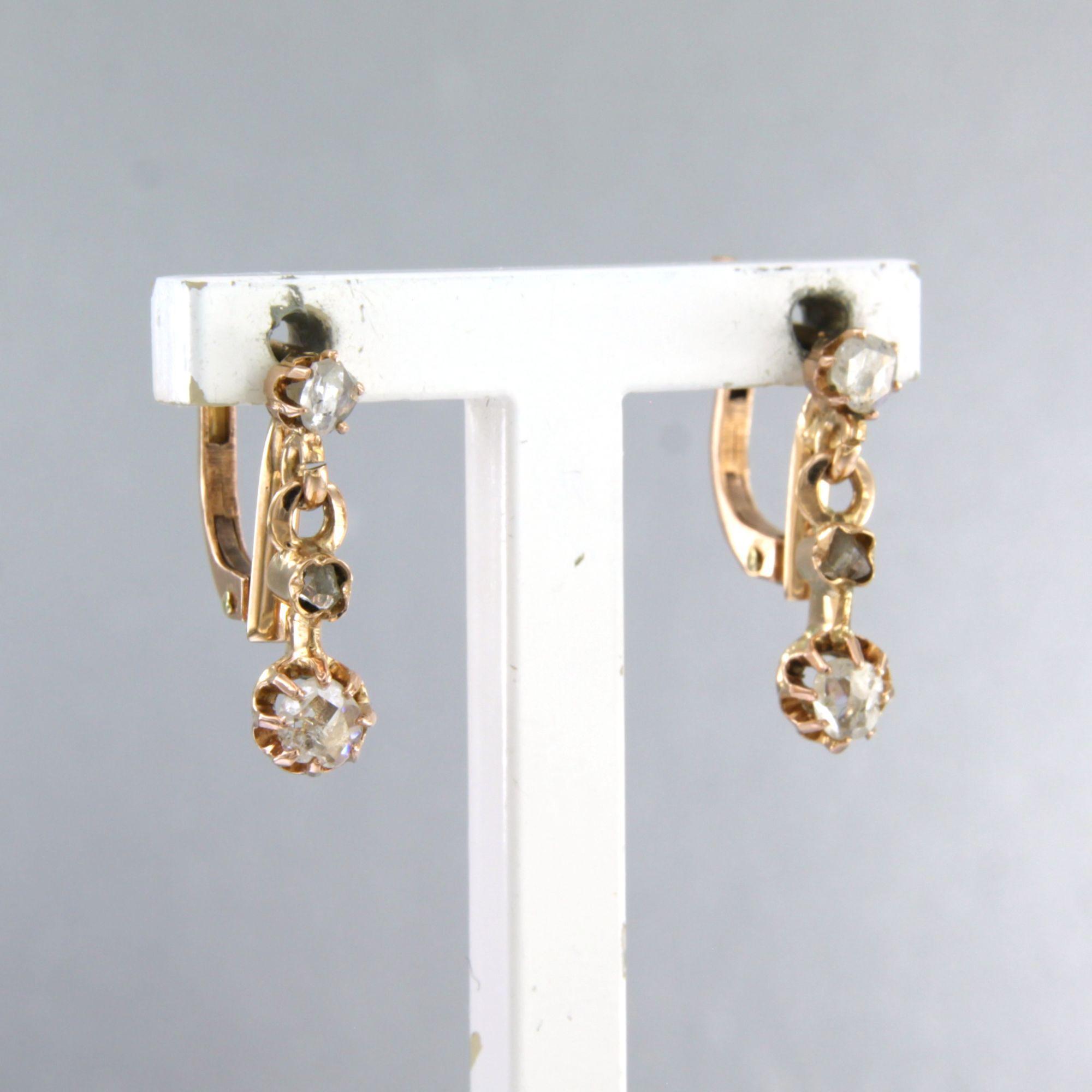 18 Kt. roségouden oorhangers bezet met roosdiamanten tot. 0.15 ct.