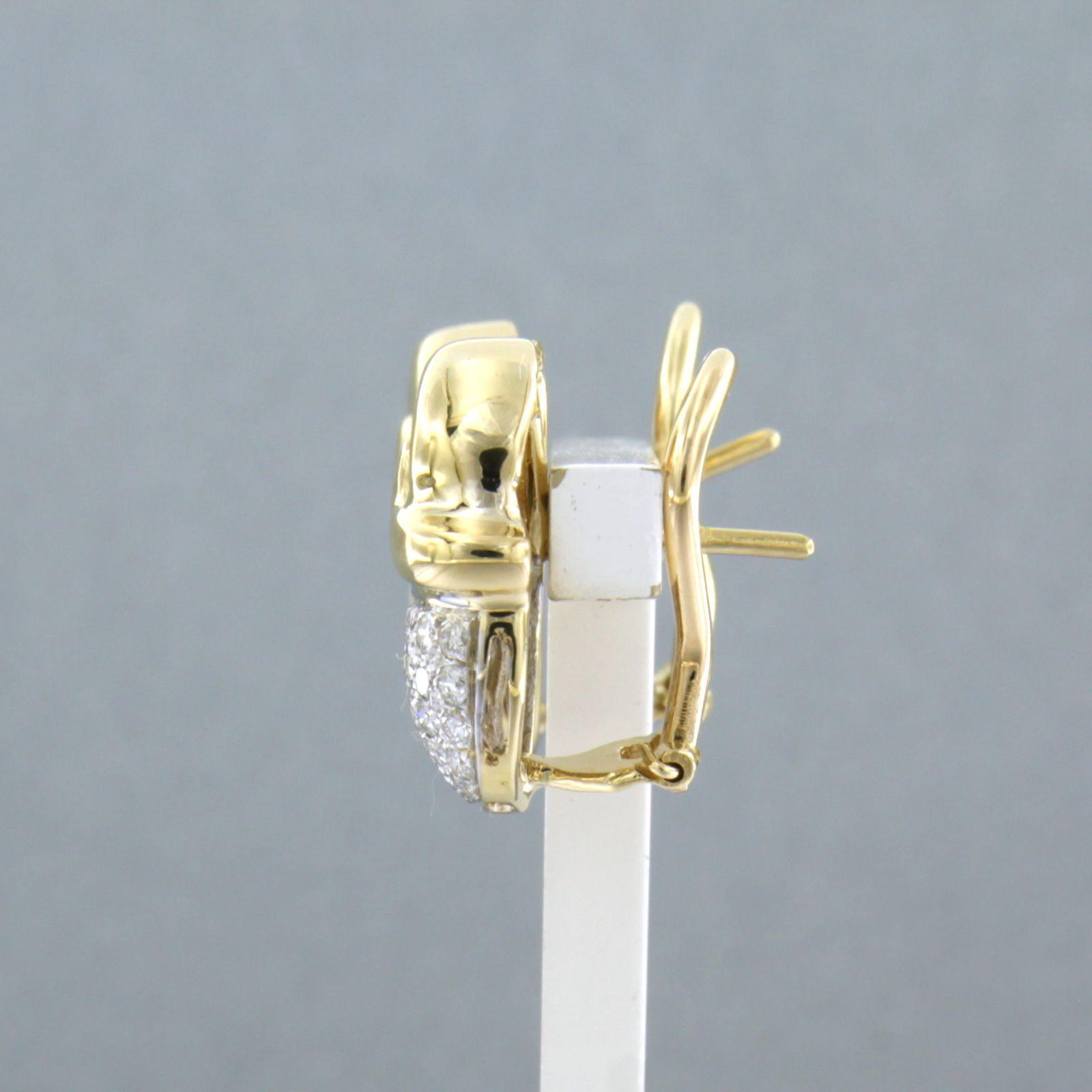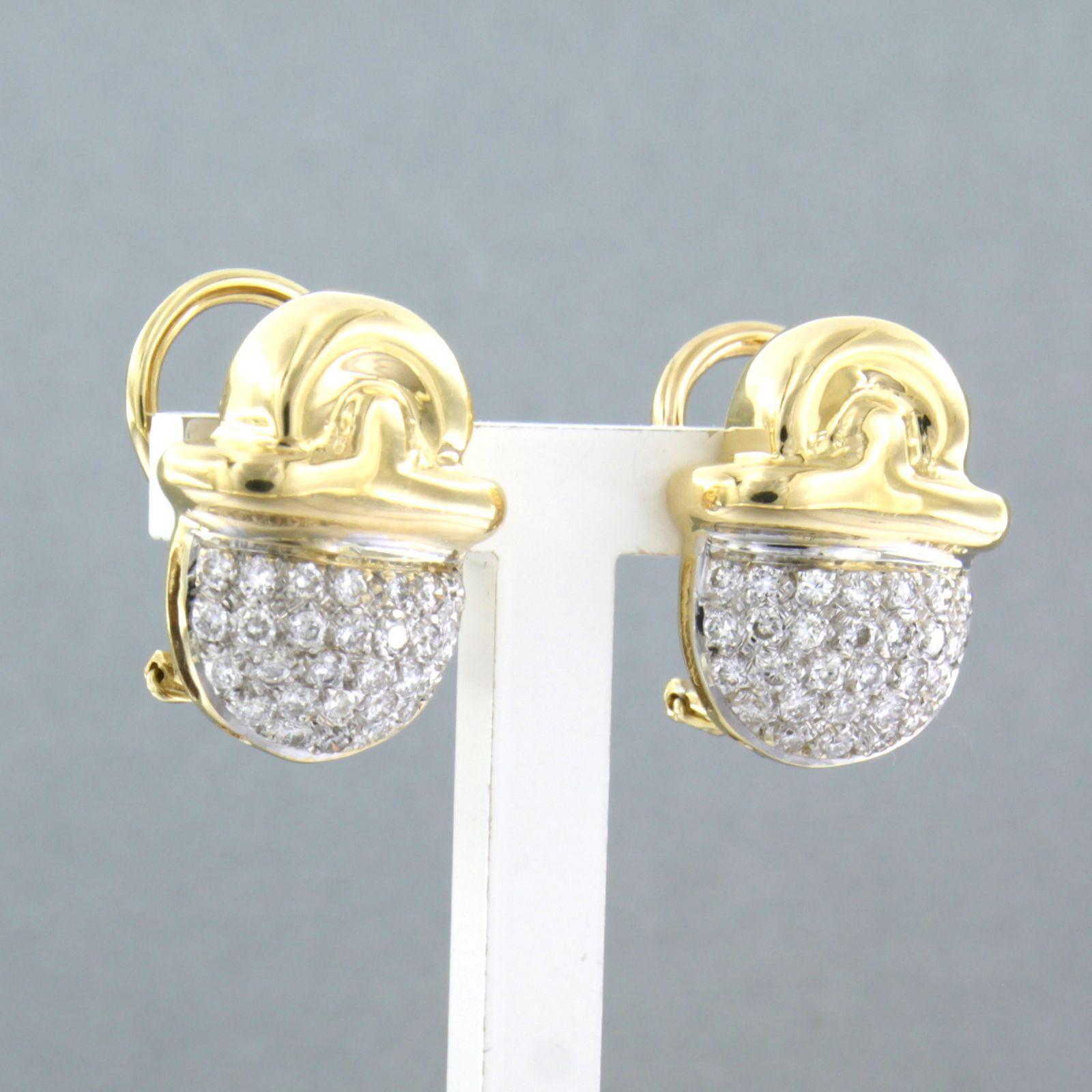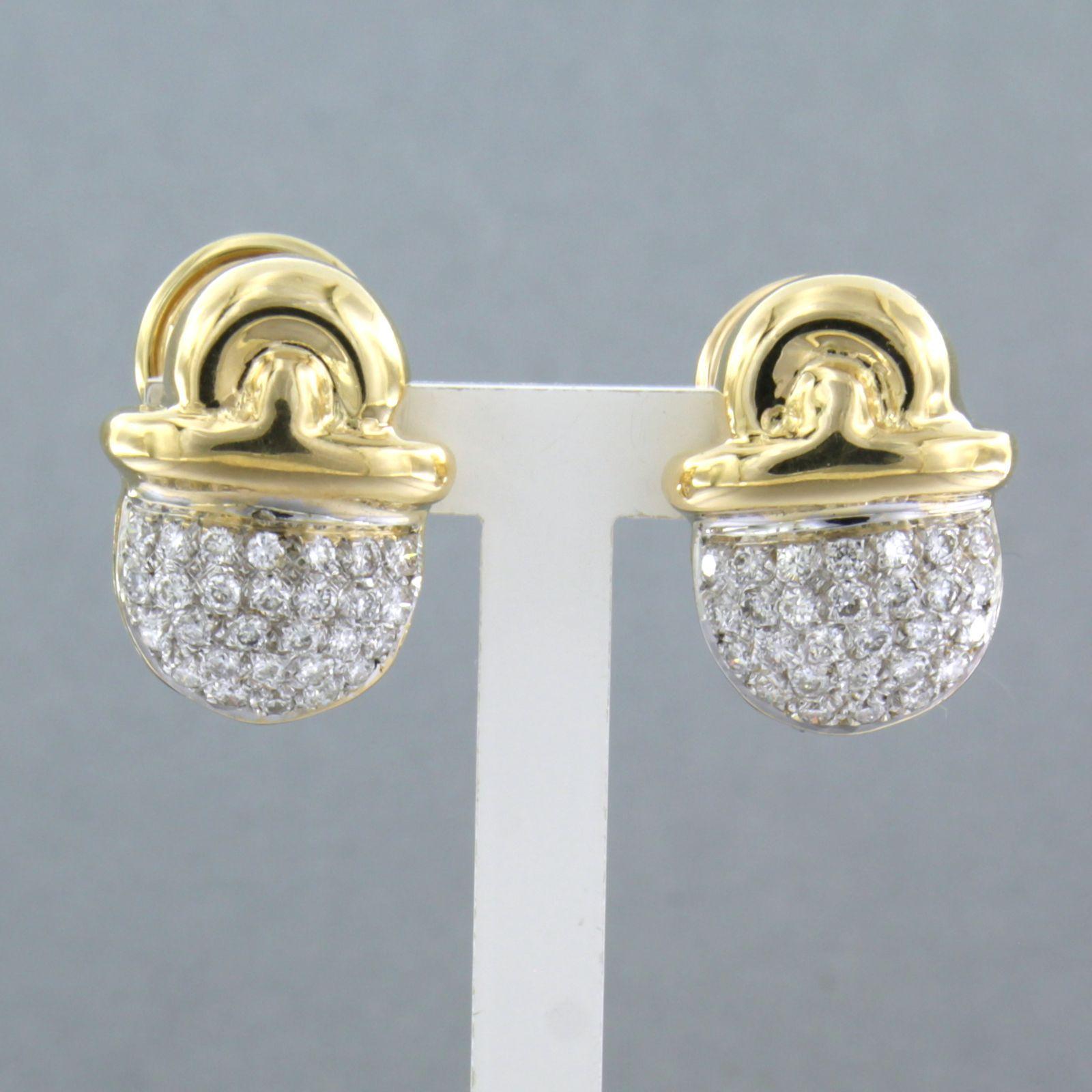 14 Kt. bicolor gouden oorclips bezet met briljant geslepen diamanten tot. 0.80 ct.