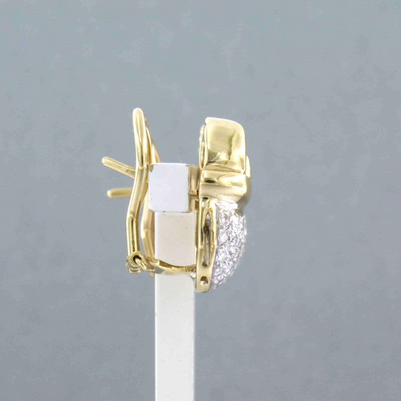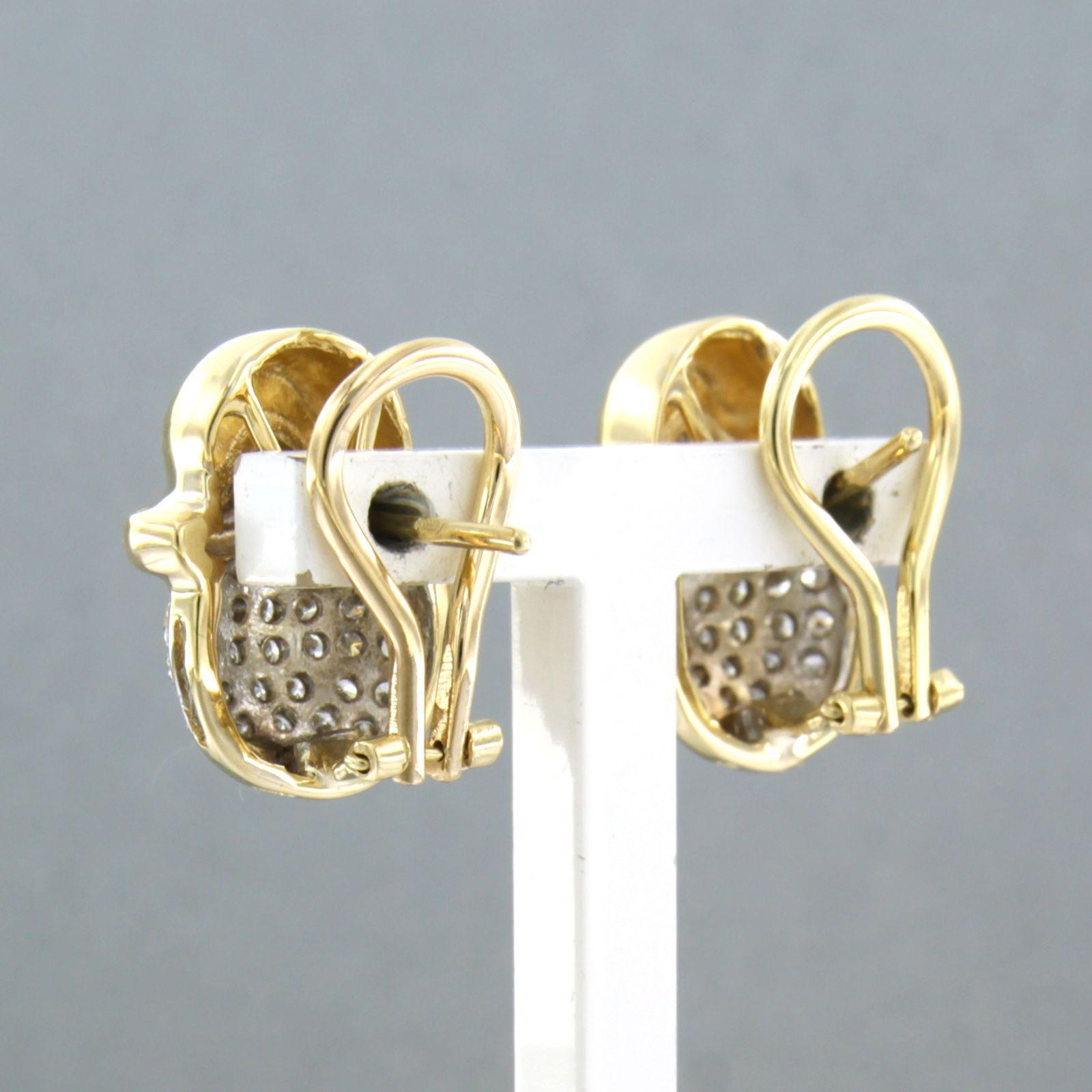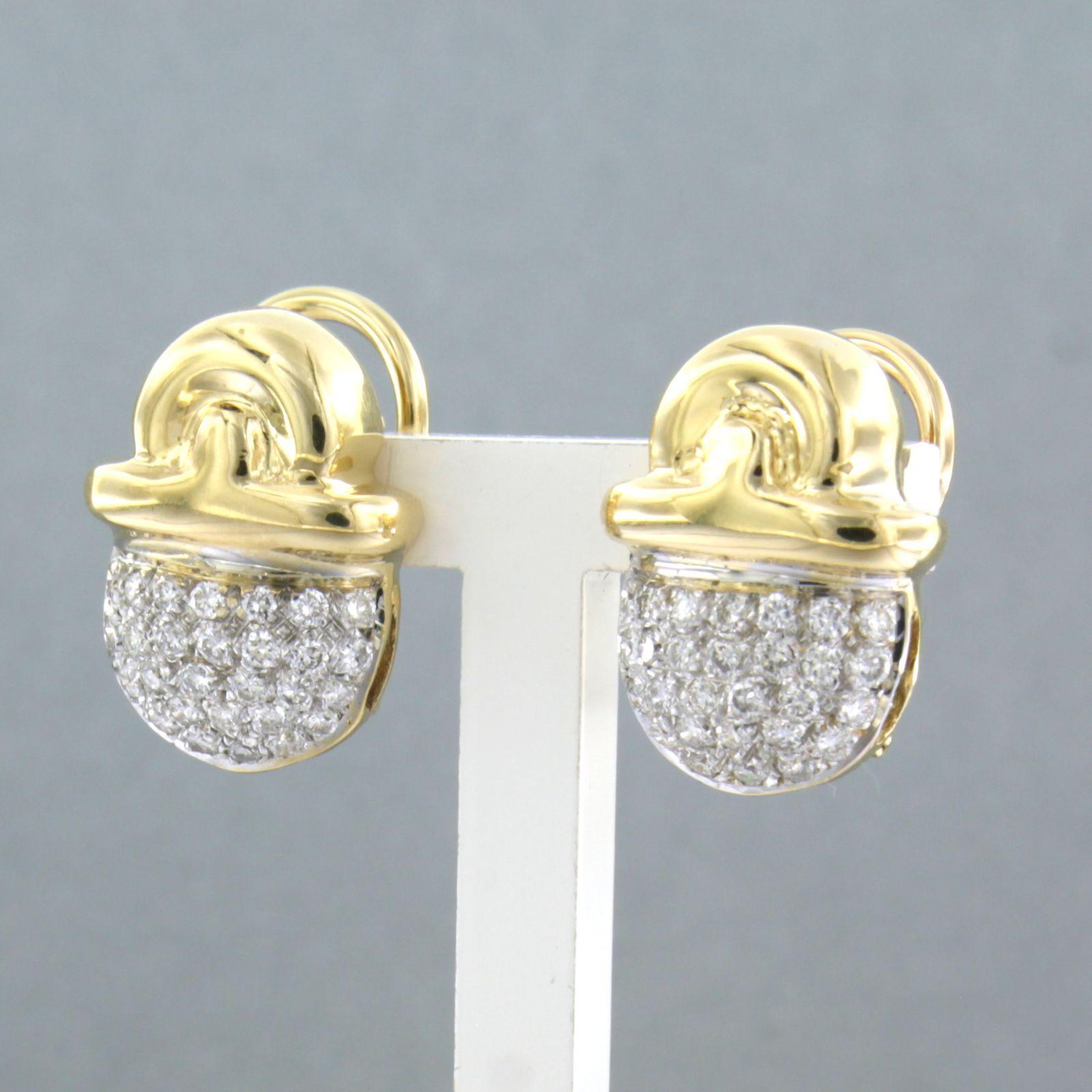 14 Kt. bicolor gouden oorclips bezet met briljant geslepen diamanten tot. 0.80 ct.