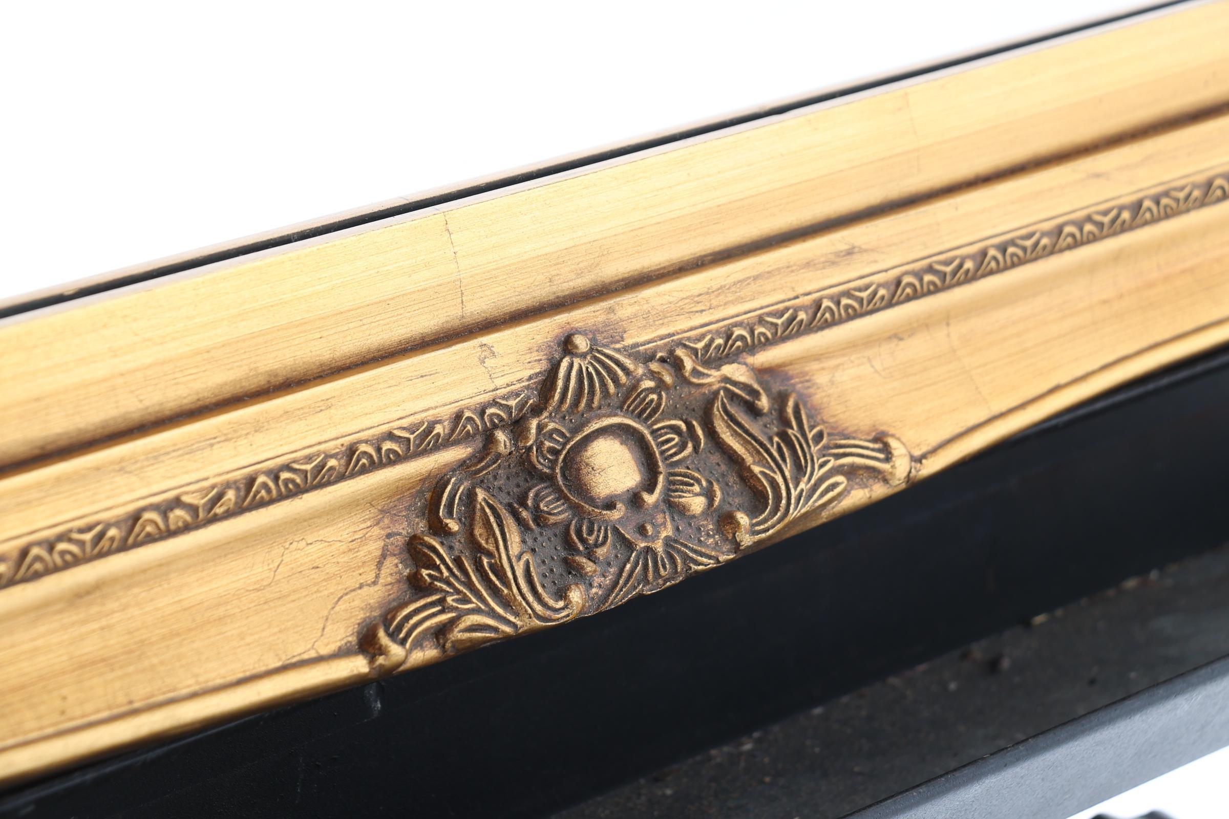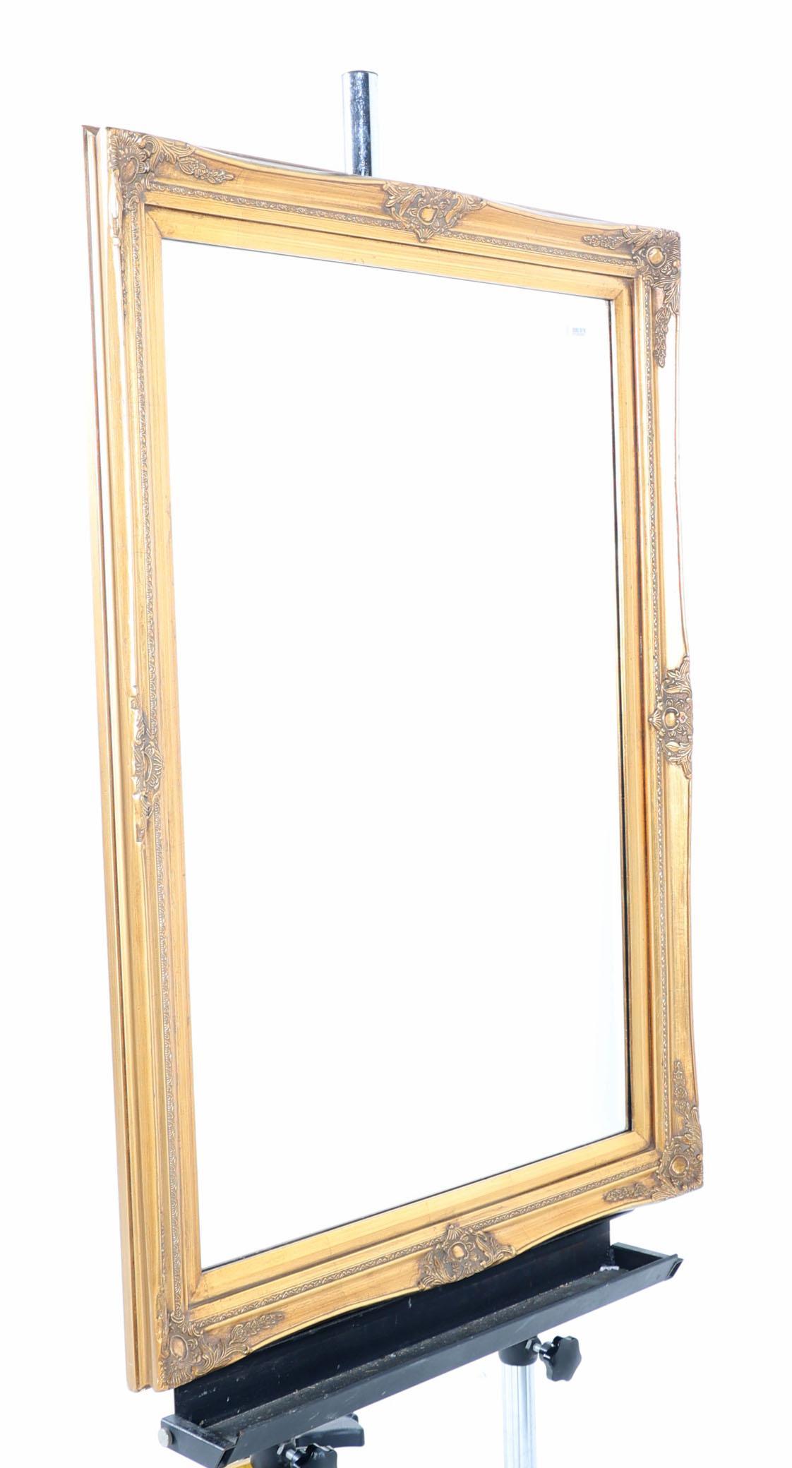 Geslepen spiegel in goudkleurige lijst, 106 x 75 cm.