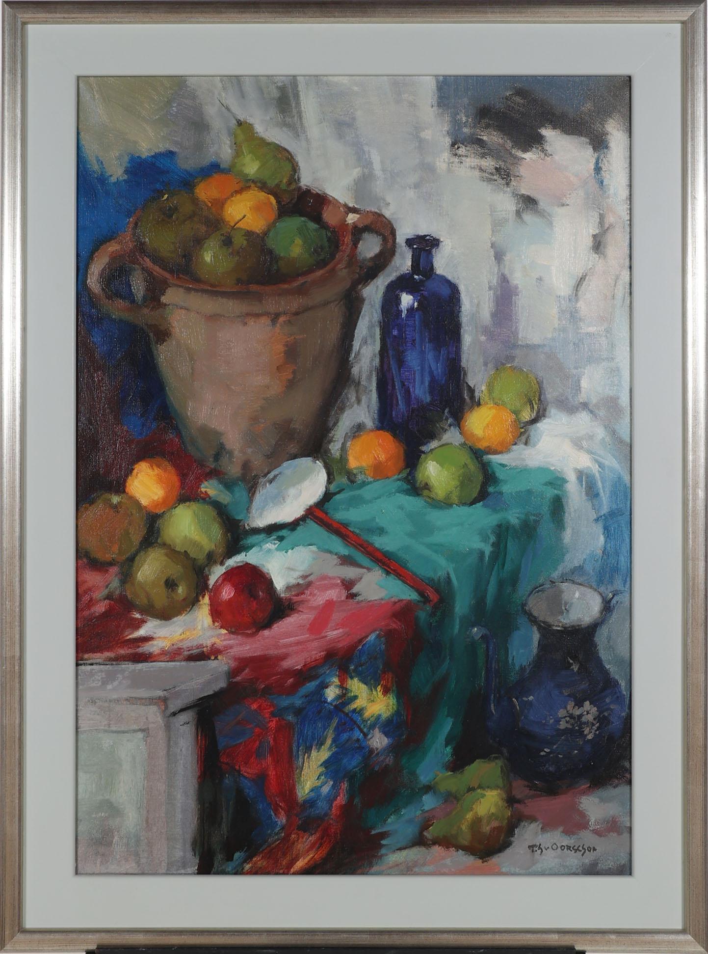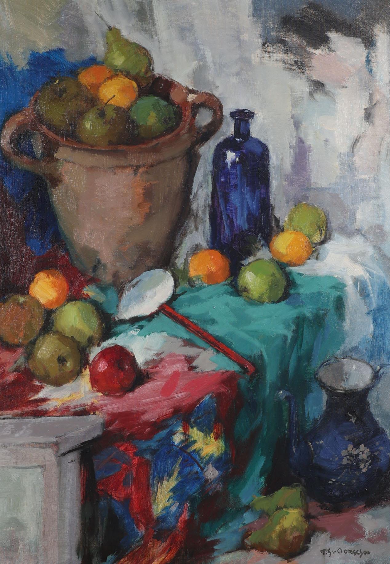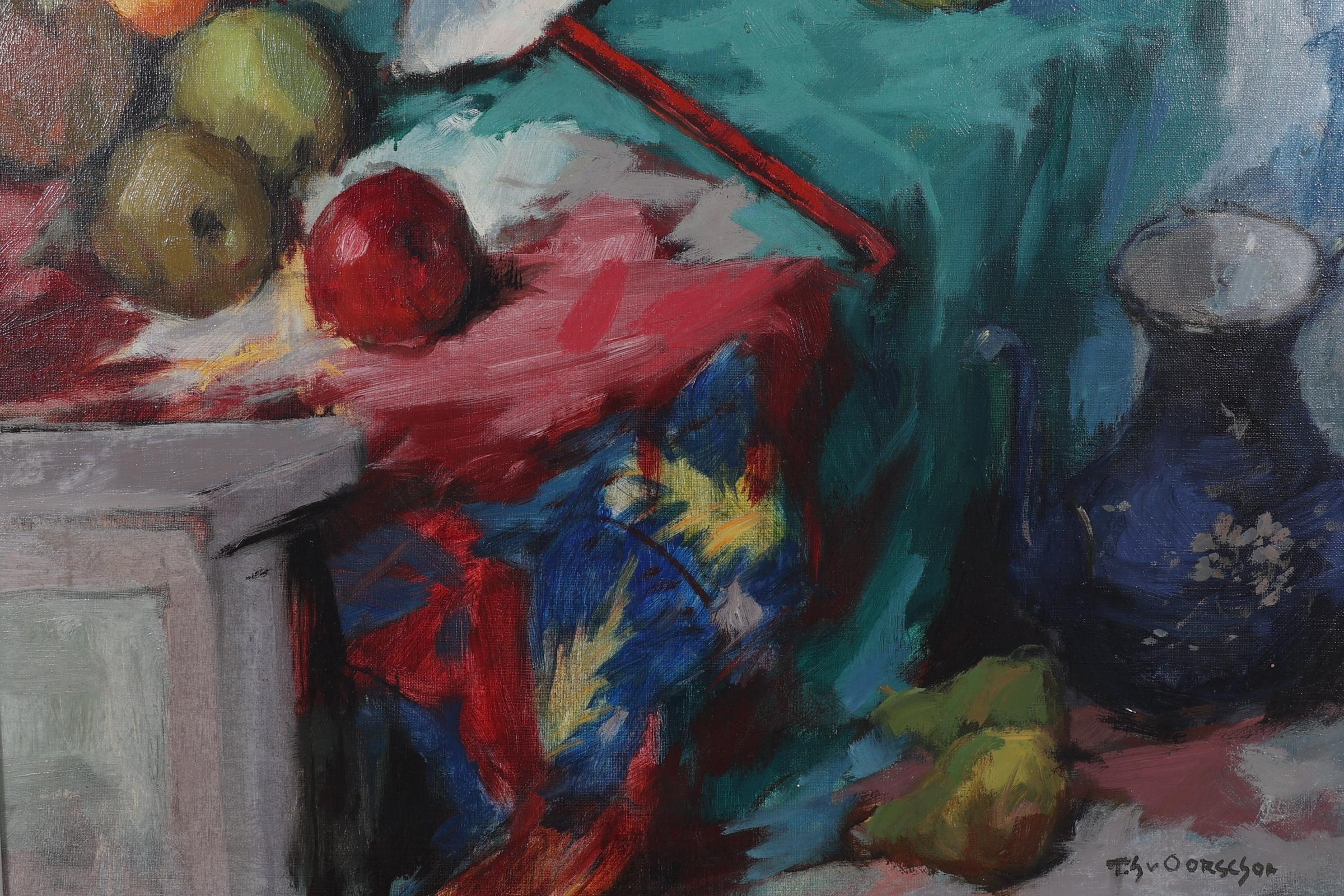 Theodorus van Oorschot (1910-1989), Stilleven met fruit, olieverf op doek, 100 x 70 cm.