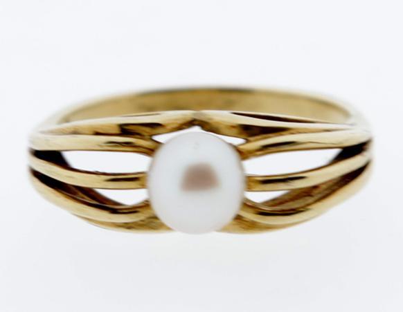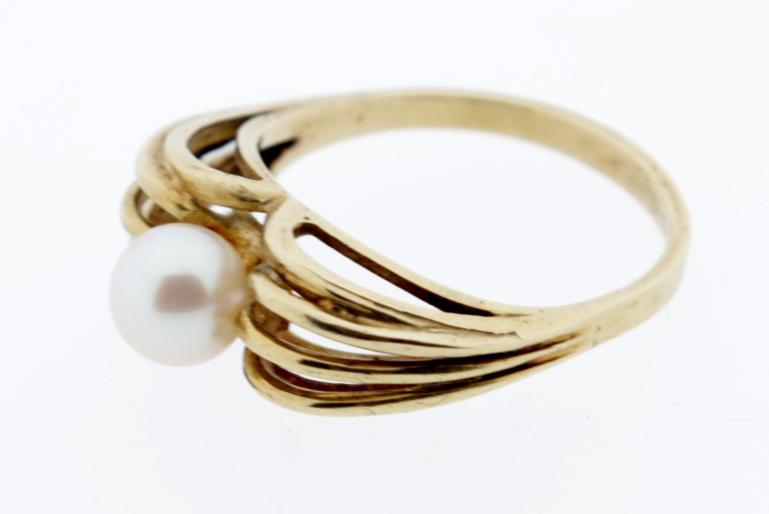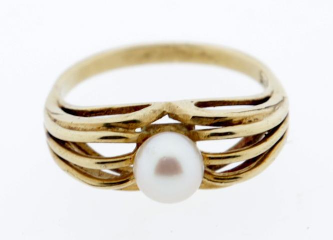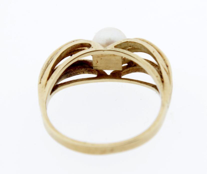 Gouden damesring bezet met parel, diam.19 mm., 4 gram