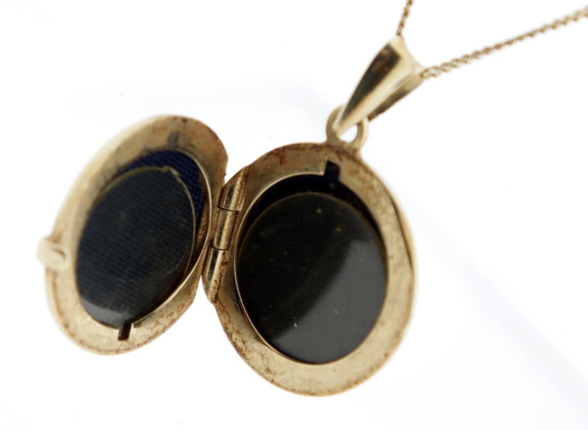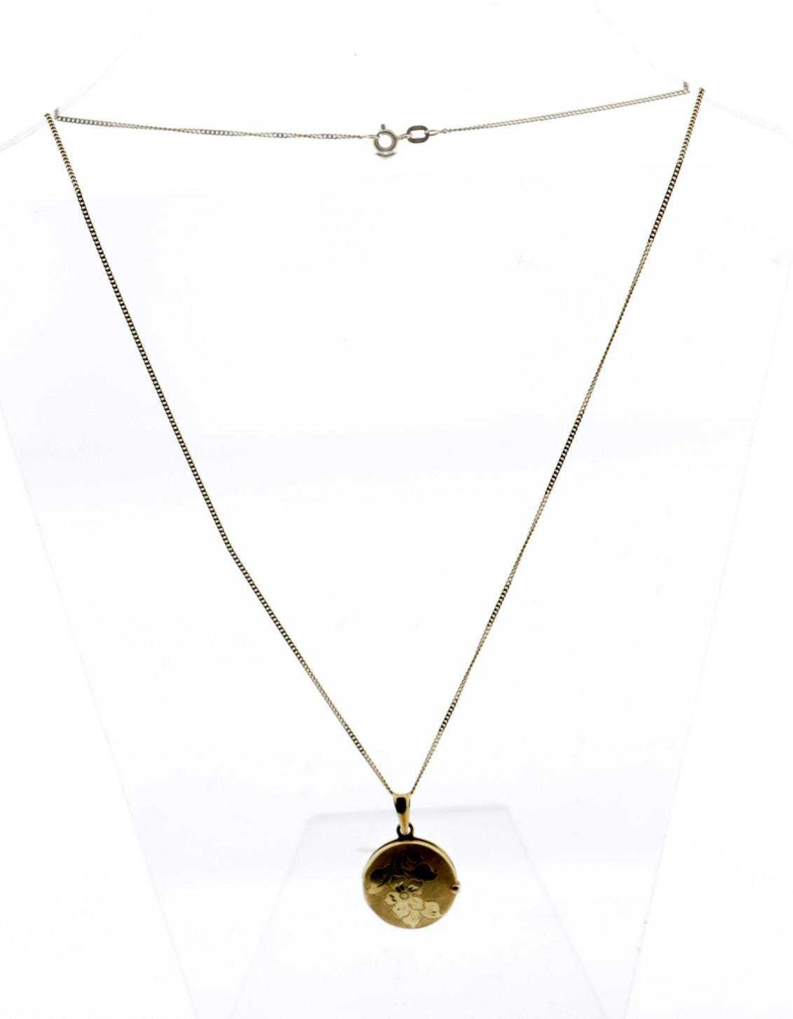 Gouden medaillion aan gouden collier, ca.7 gram, lengte 45 cm