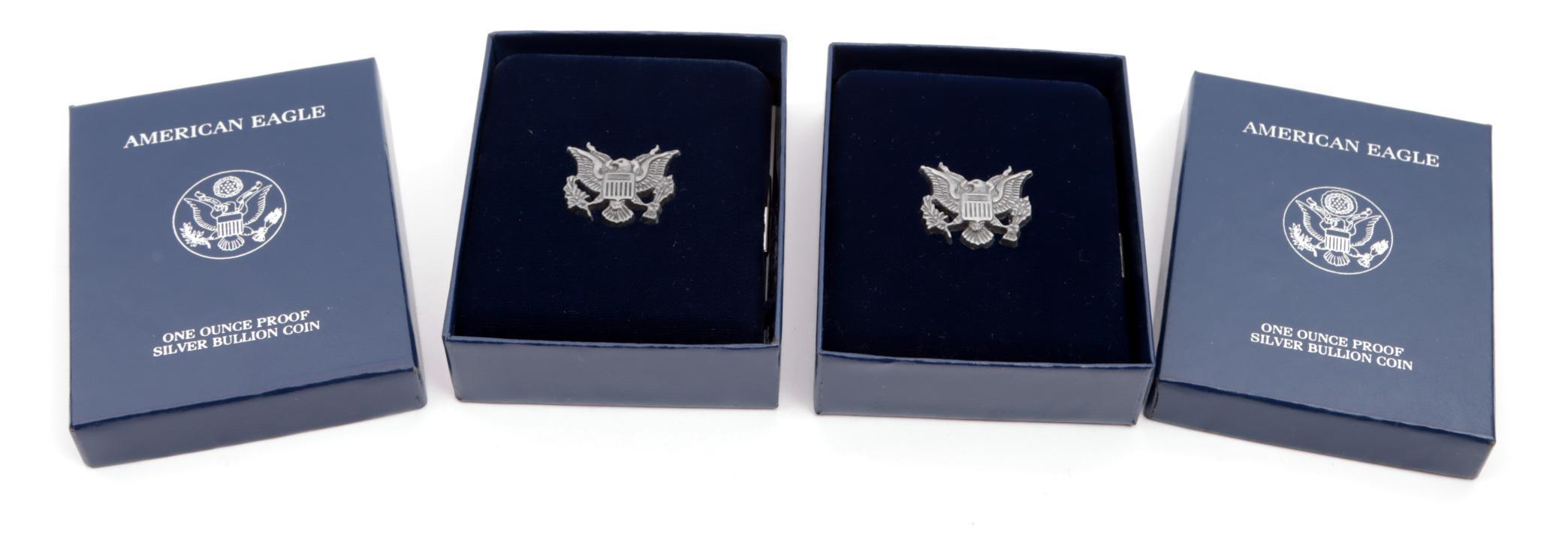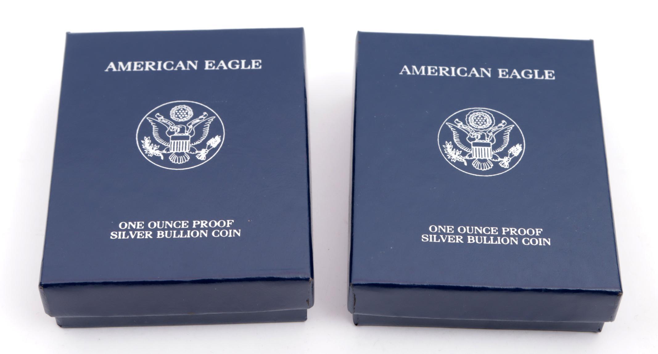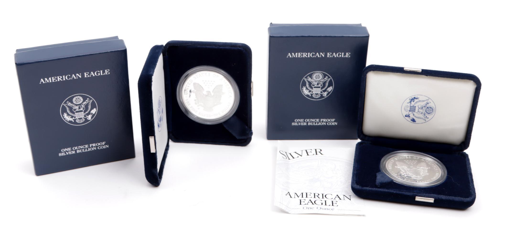 2 Zilveren One Ounce American Eagle, proof 0.999, 2002 en 2003