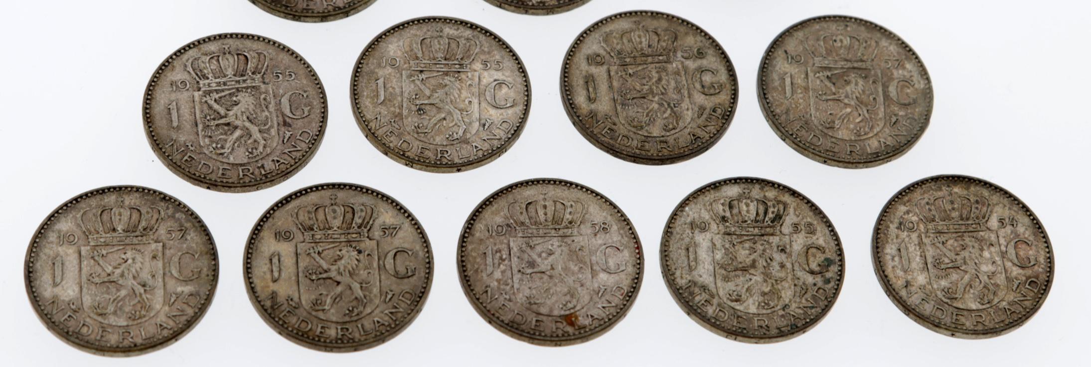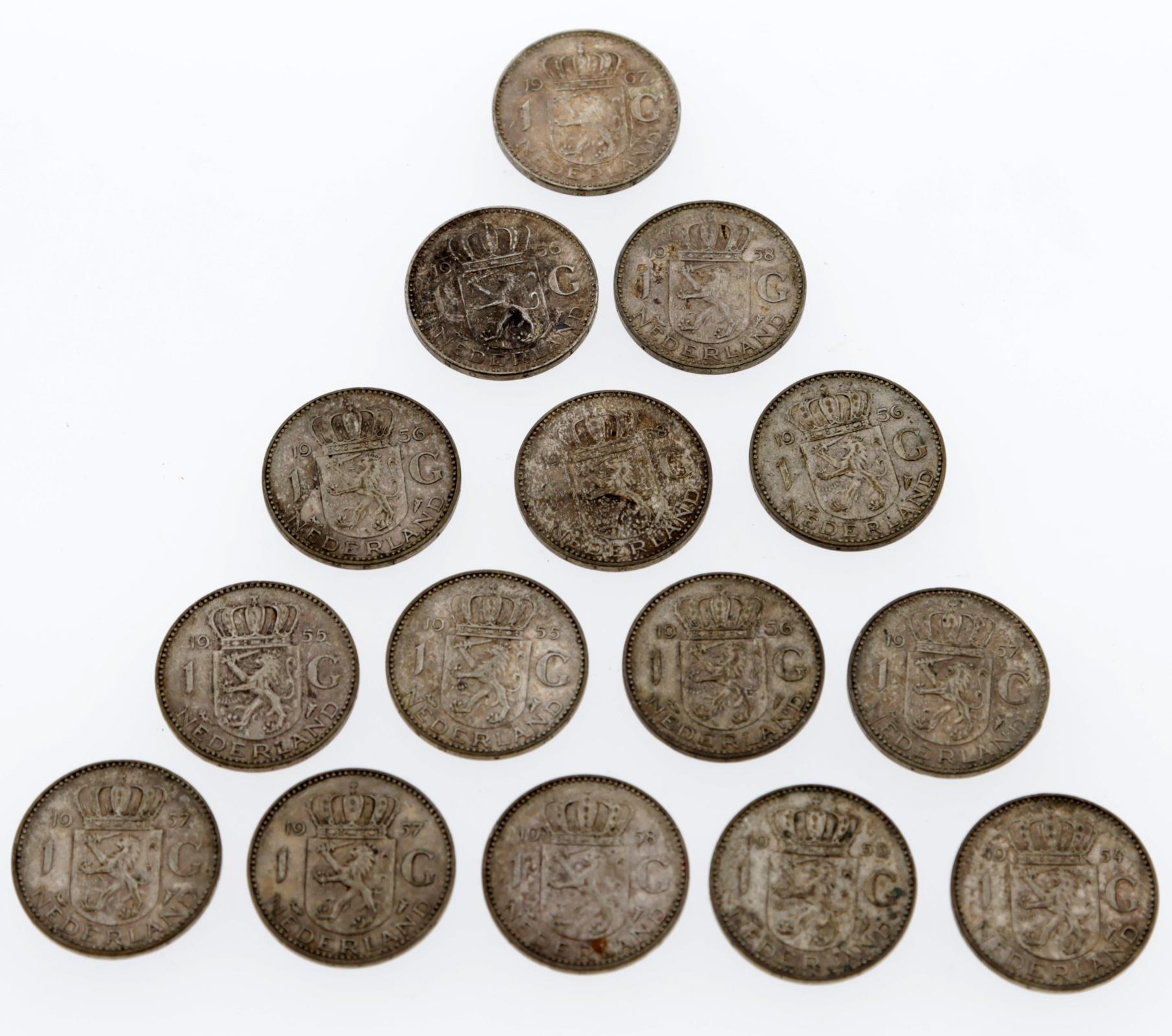 15 Zilveren gulden muntstukken, Koningin Juliana, diverse jaren, zilver gewicht 100 gram