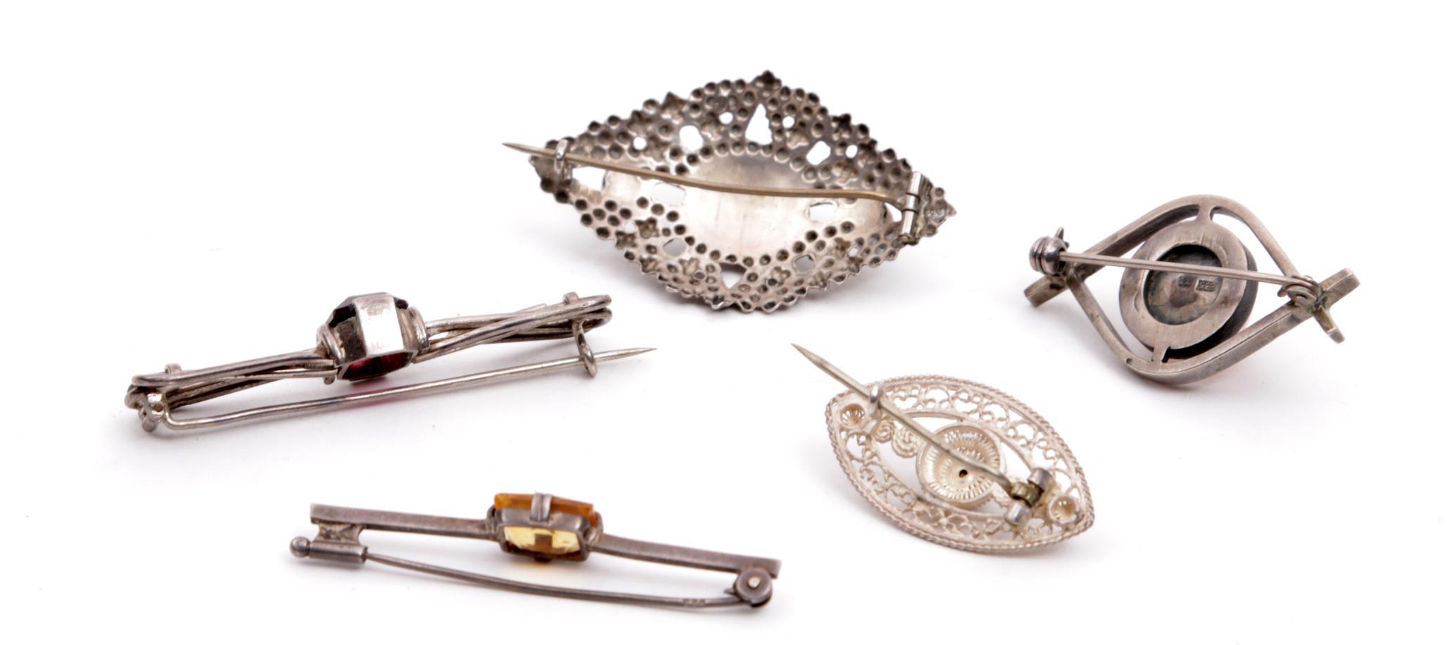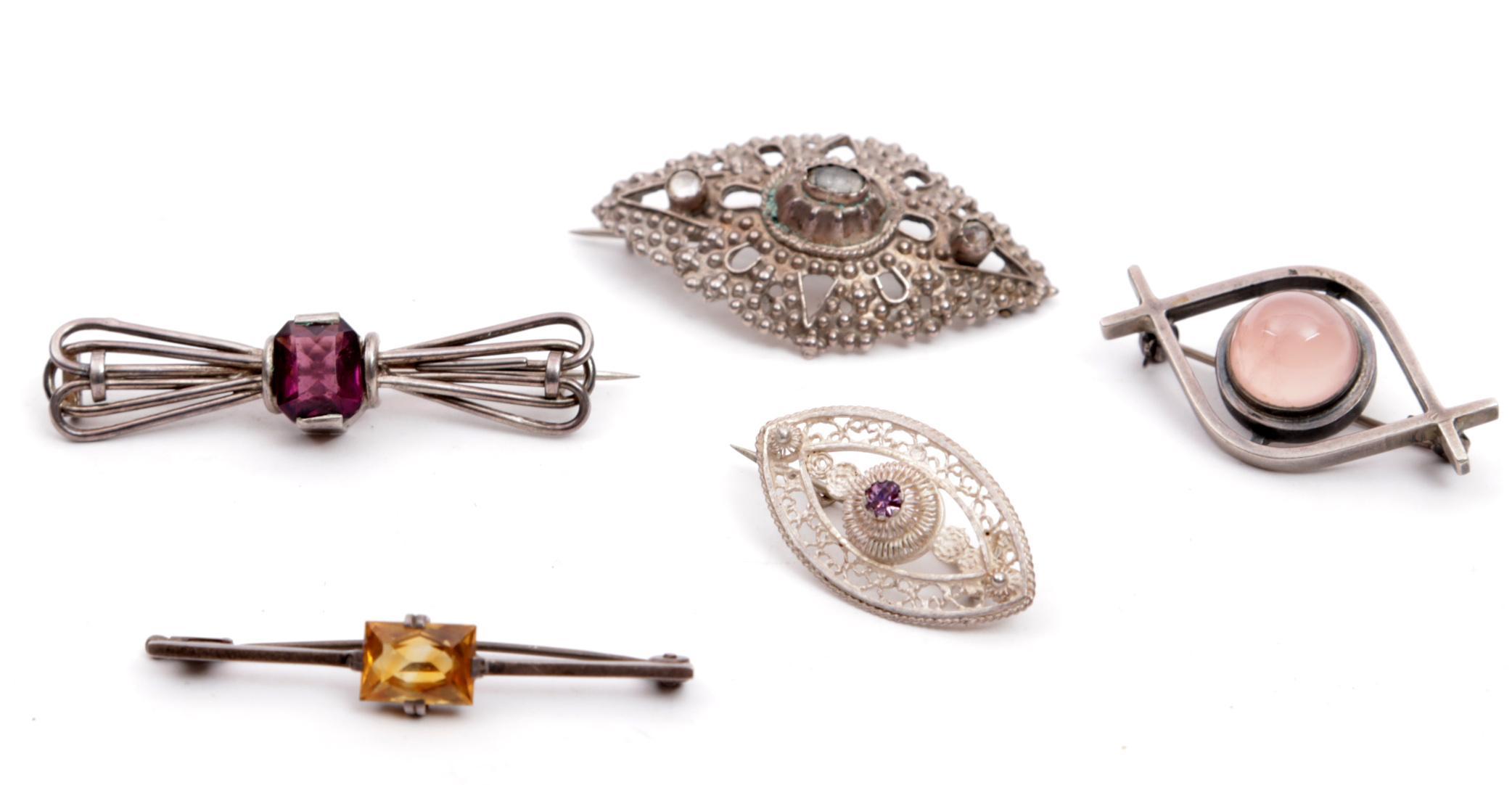 5 Diverse antieke zilveren damesbroches w.o. 19e eeuw