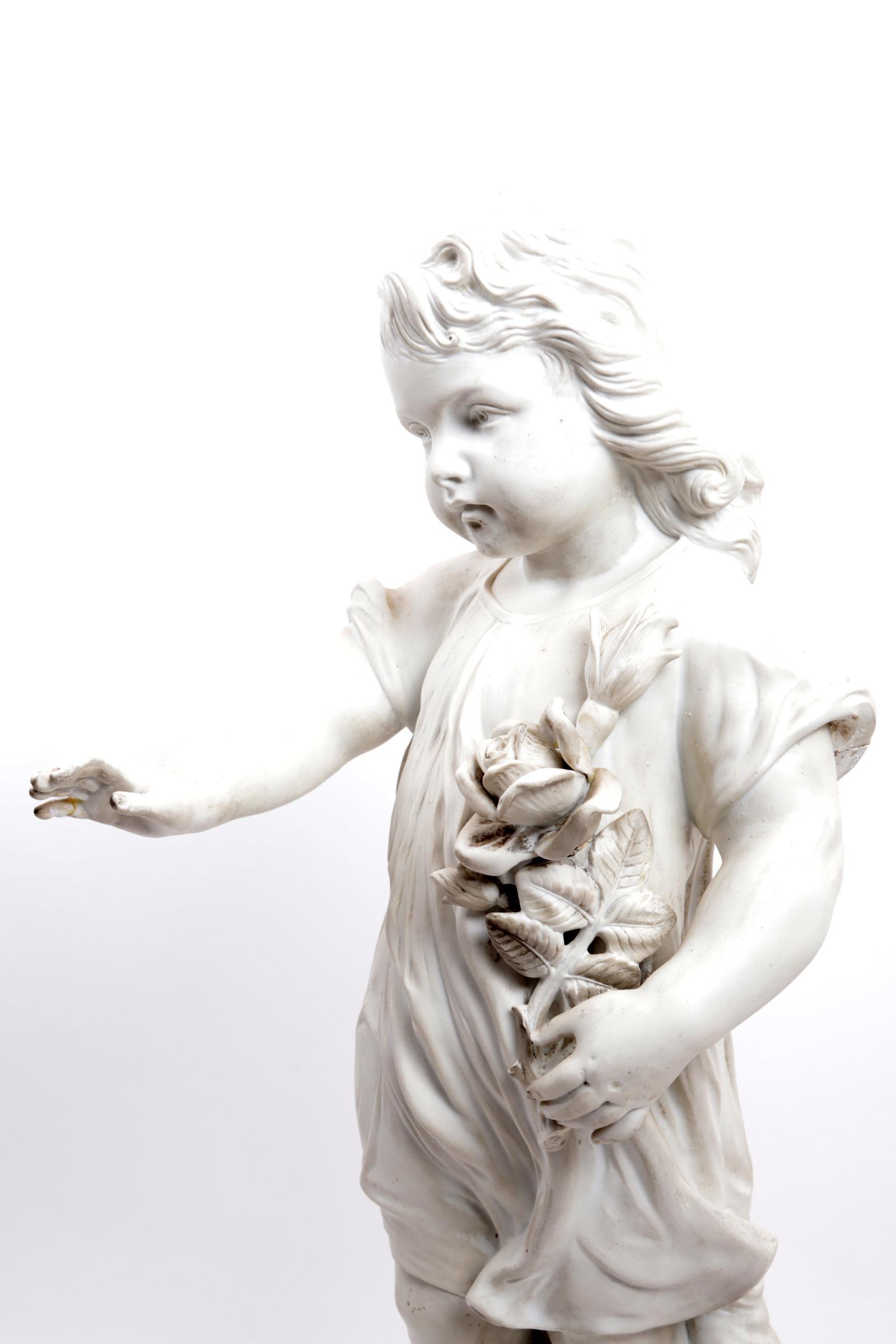 Wit biscuit beeld van een meisje, h.61,5 cm.