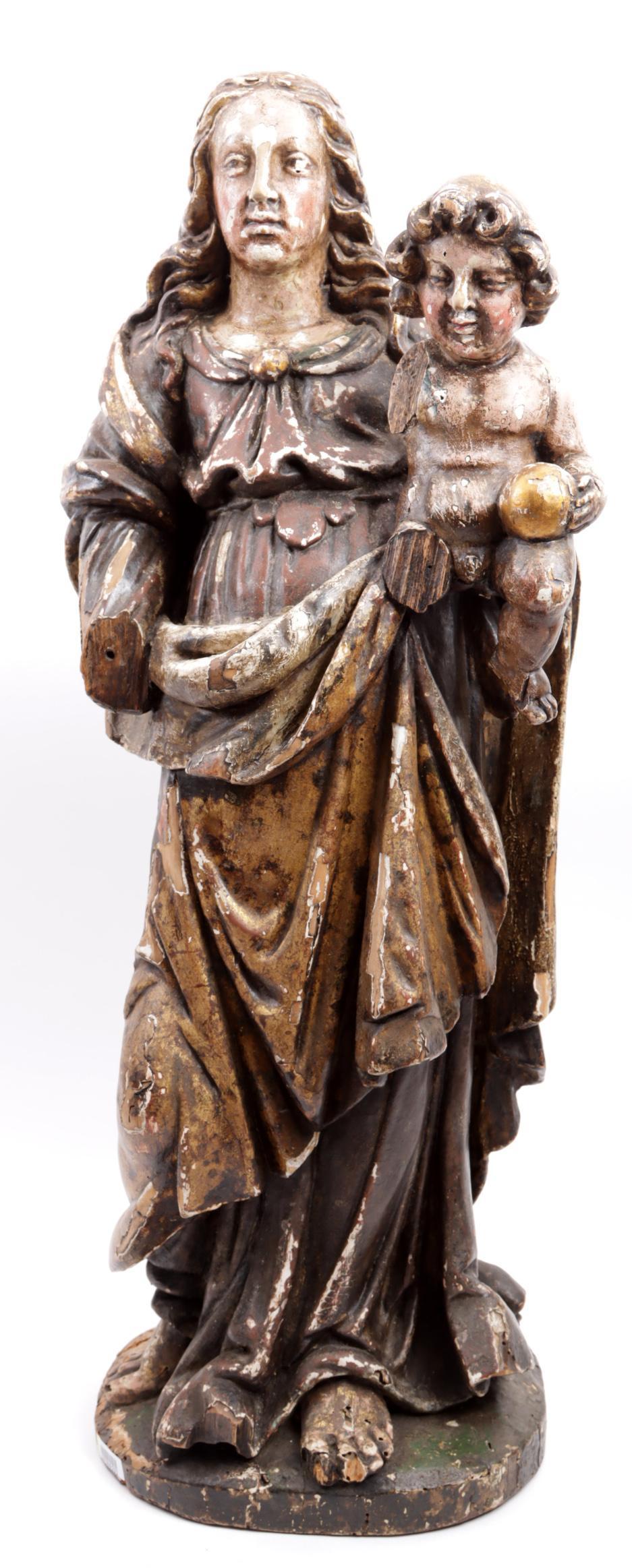 Gepolychromeerd houten beeld van Maria met kind, h.60 cm.