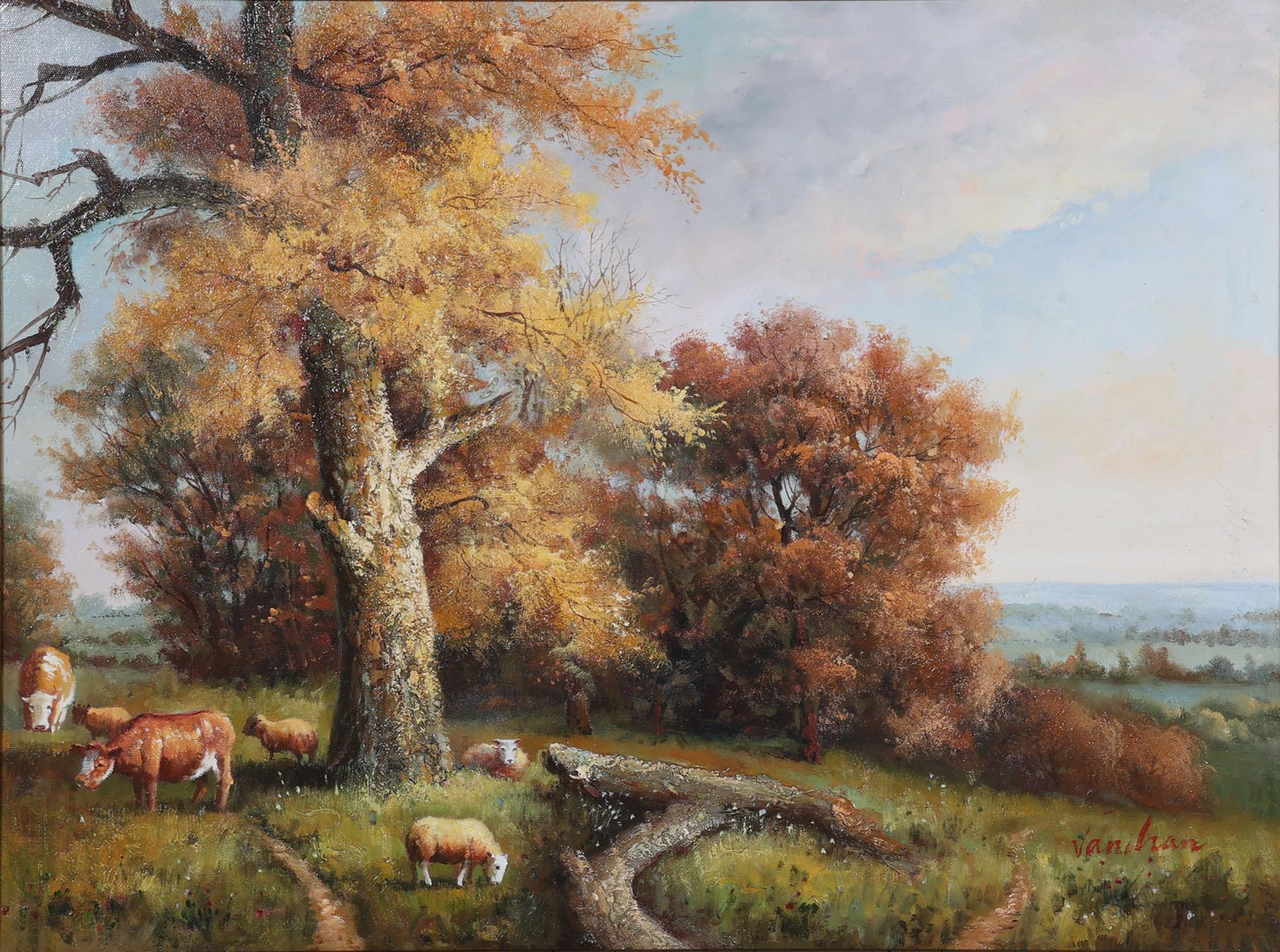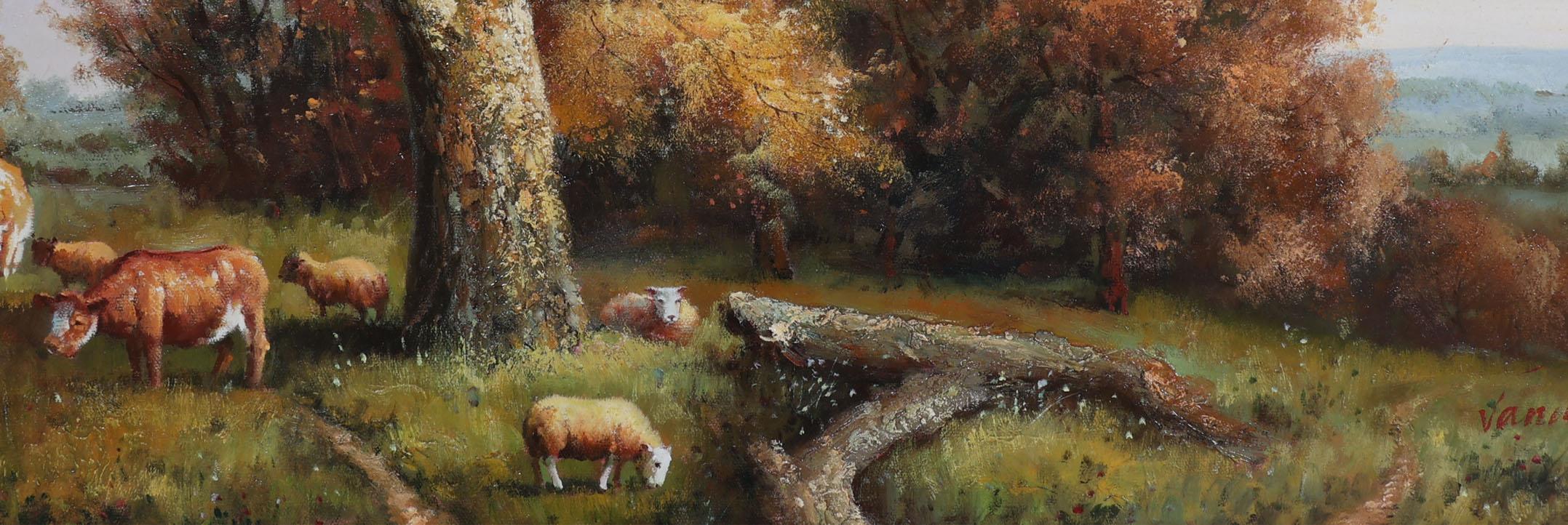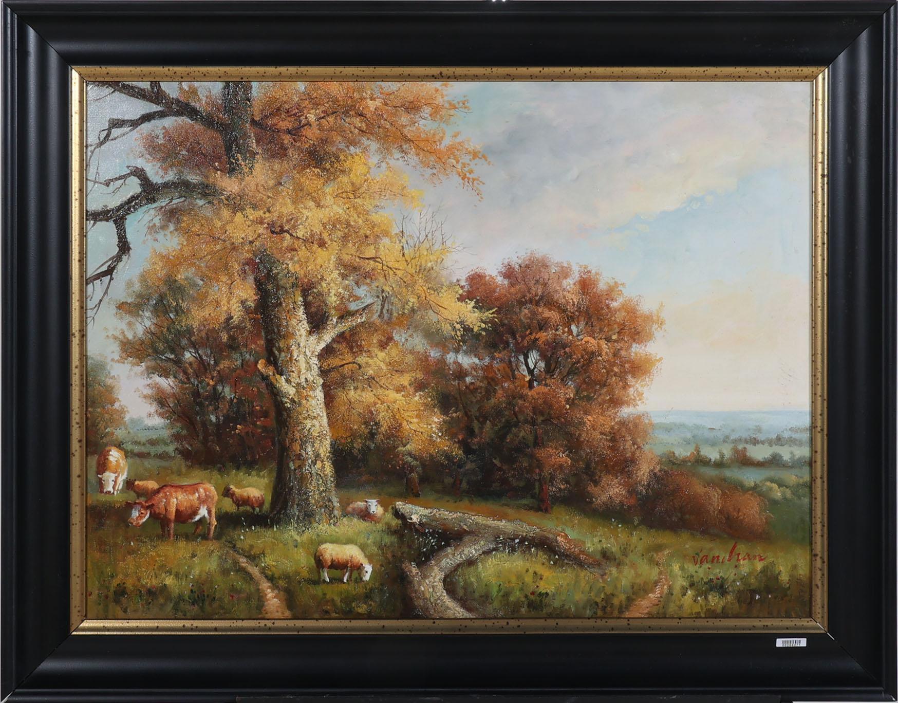 Van Han, Landschap met vee, olieverf op doek, 80 x 60 cm.