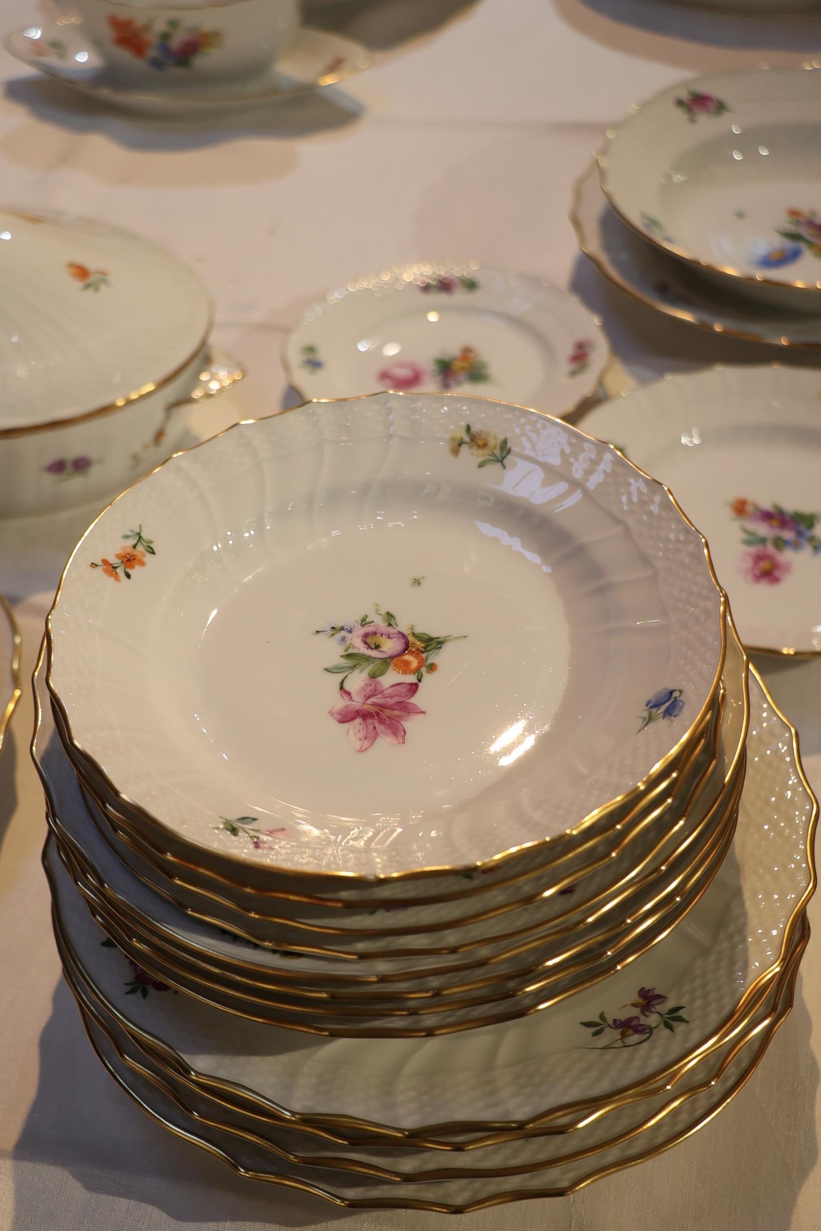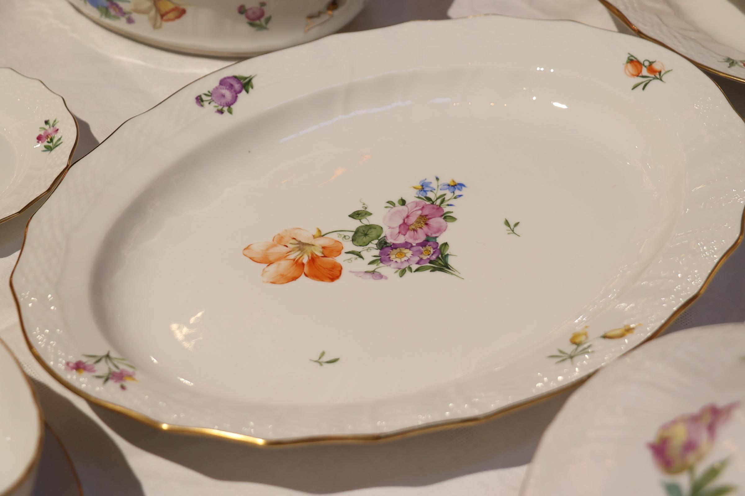 Uitgebreid met de hand met bloemen beschilderd porseleinen serviesdeel, Royal Copenhagen Denemarken
