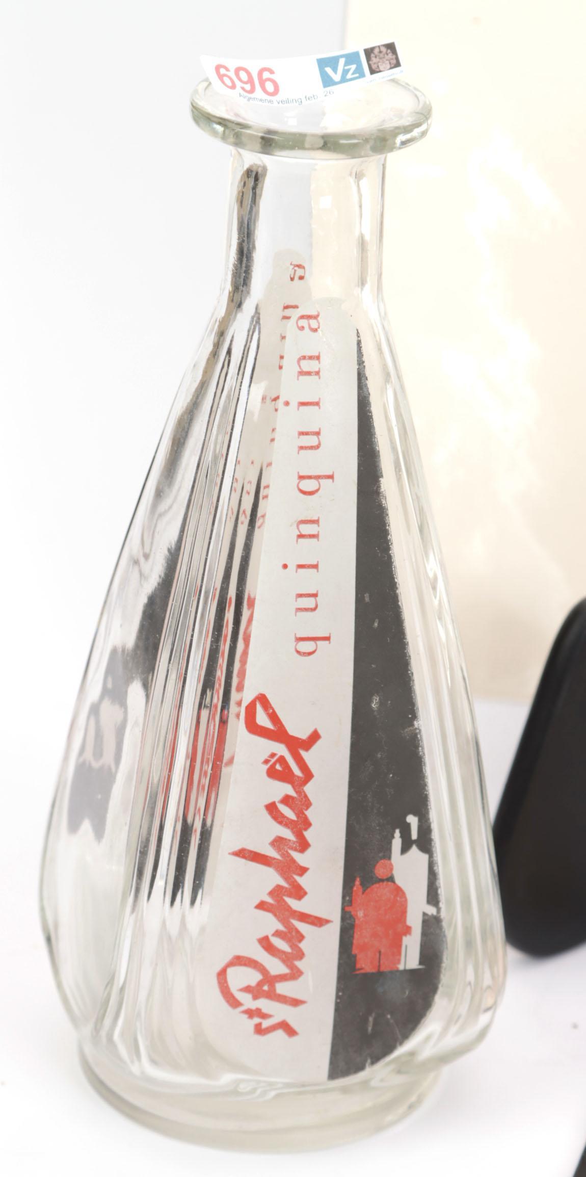 Dubonnet menu-reclame, glazen reclamefles en 2 Disney lithografieën