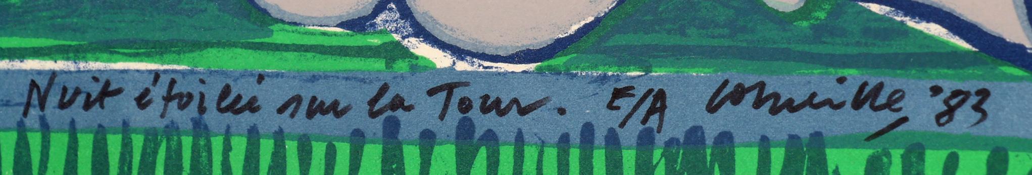 'Corneille', alias van Cornelis Guillaume van Beverloo (1922- 2010), Nuit étoilée sur la tour, handgesigneerde zeefdruk, gedateerd 1983 en genummerd E/A (twee exemplaren bekend), 79 x 63 cm. of 109 x 92 cm. (inclusief lijst). Provenance: collectie Kunsthandel Elisabeth den Bieman de Haas, Amsterdam