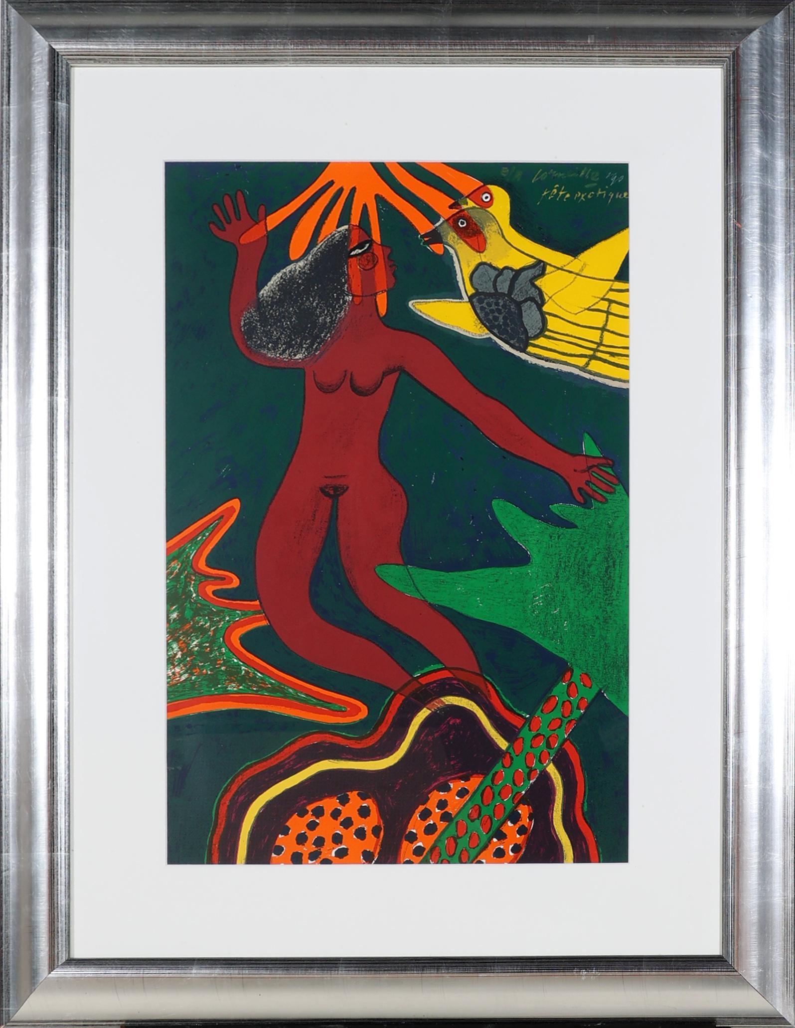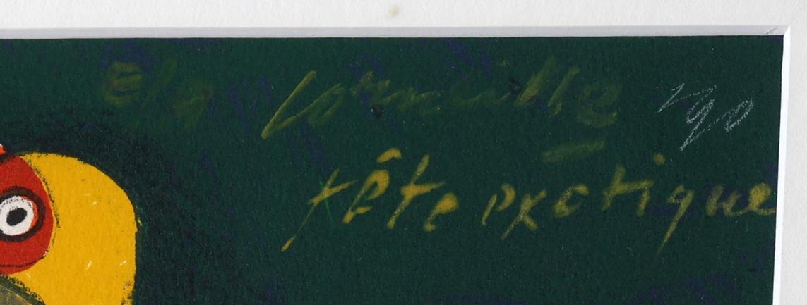 'Corneille', alias van Cornelis Guillaume van Beverloo (1922- 2010), Fête exotique, handgesigneerde zeefdruk, gedateerd 1990 en genummerd E/A, 69 x 45 cm. of 102 x 78 cm. (inclusief lijst). Provenance: collectie Kunsthandel Elisabeth den Bieman de Haas, Amsterdam