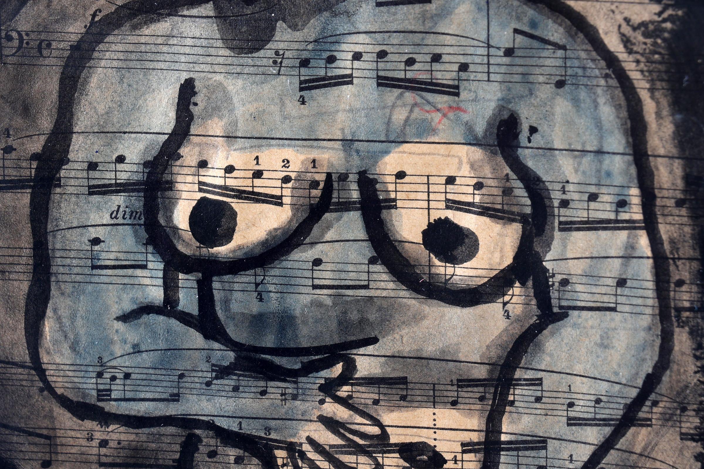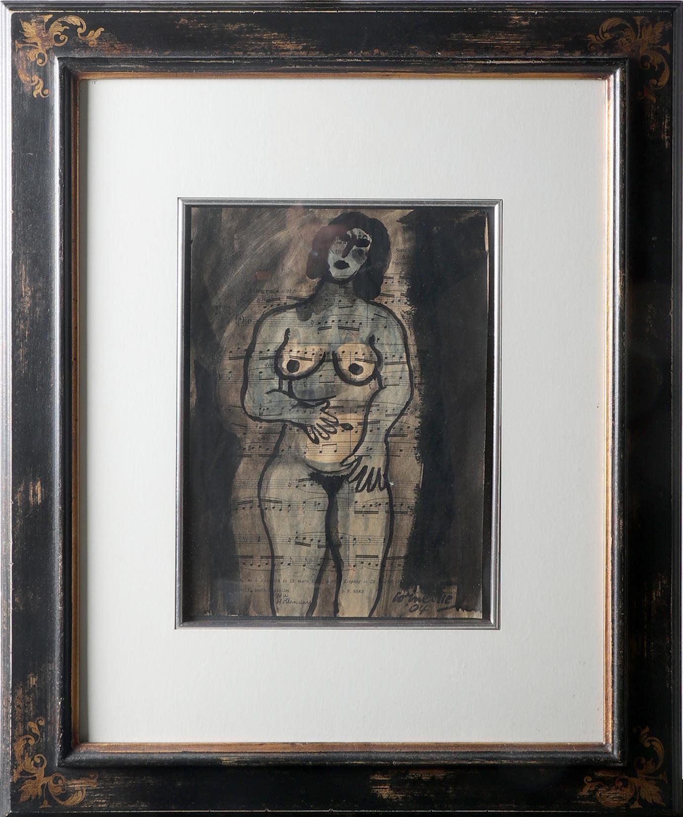 'Corneille', alias van Cornelis Guillaume van Beverloo (1922- 2010), Nu Hollandais (2004), gemengde techniek op oude partituren, gesigneerd en gedateerd, 31 x 23,5 cm. Provenance: collectie Kunsthandel Elisabeth den Bieman de Haas, Amsterdam. Tentoonstelling: Museum Jan van der Togt, Amstelveen 2015/2016