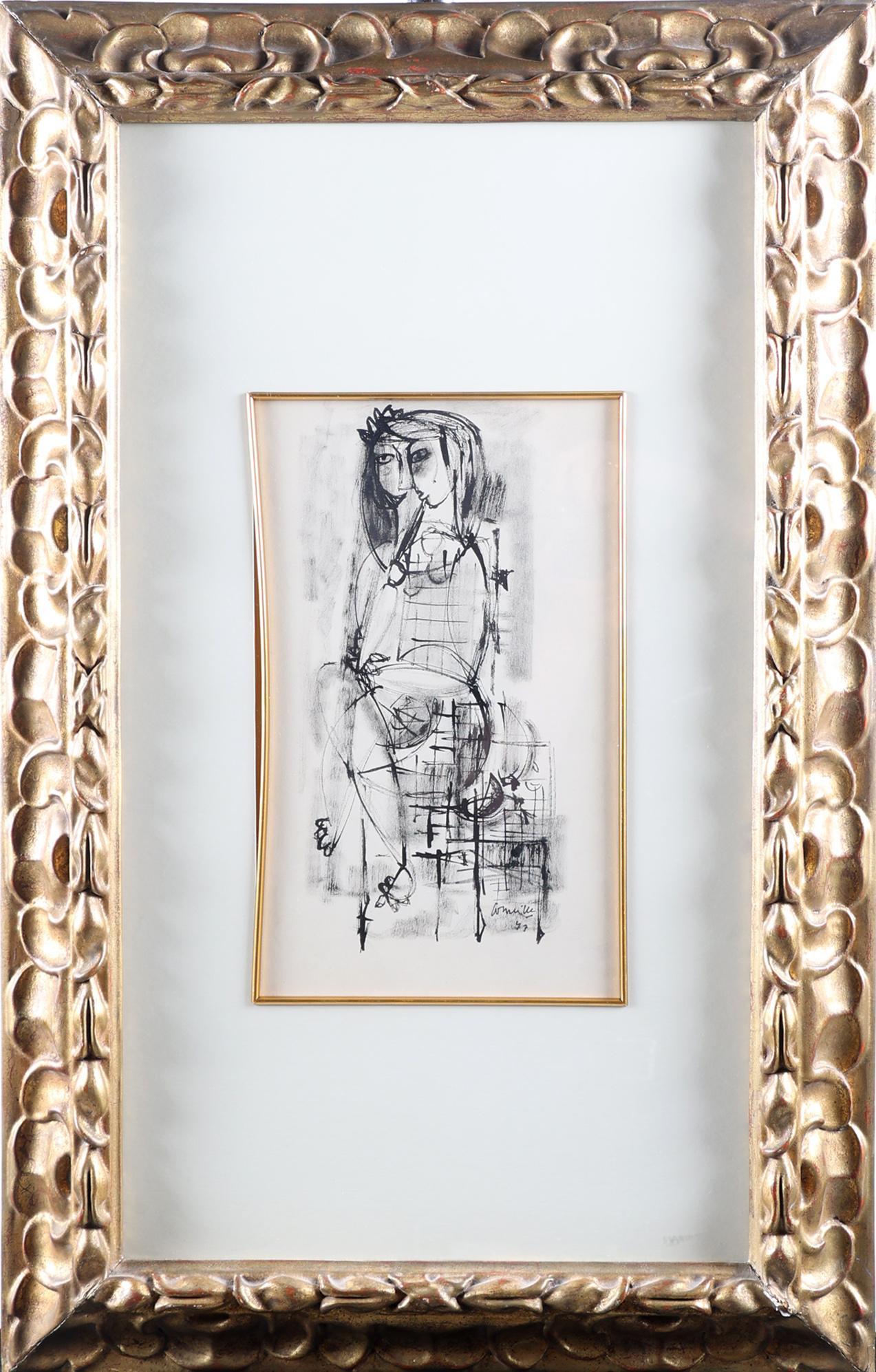 'Corneille', alias van Cornelis Guillaume van Beverloo (1922- 2010), Zittende vrouw (1947), inkt op papier, gesigneerd en gedateerd, 38 x 28 cm. Provenance: collectie Kunsthandel Elisabeth den Bieman de Haas, Amsterdam. Tentoonstelling: Cobra Museum Amstelveen, 'Het Hongaarse avontuur en de ontmoeting met de Europese School', 11 jan. - 17 maart 2002; Museum of Fine Arts, Budapest, zomer 2002; Stedelijk Museum Schiedam, 'Picasso, Klee, Miró en de moderne kunst in Nederland 1946-1958', 8 april - 20 augustus 2006. Literatuur: C. Küssel, 'Corneille Het Hongaarse avontuur 1947', Amsterdam, 2002, afb. 10, p.18; Cat. Stedelijk Museum Schiedam, 'Picasso, Klee, Miró en de moderne kunst in Nederland 1946 - 1958', 2006, afb. p.56