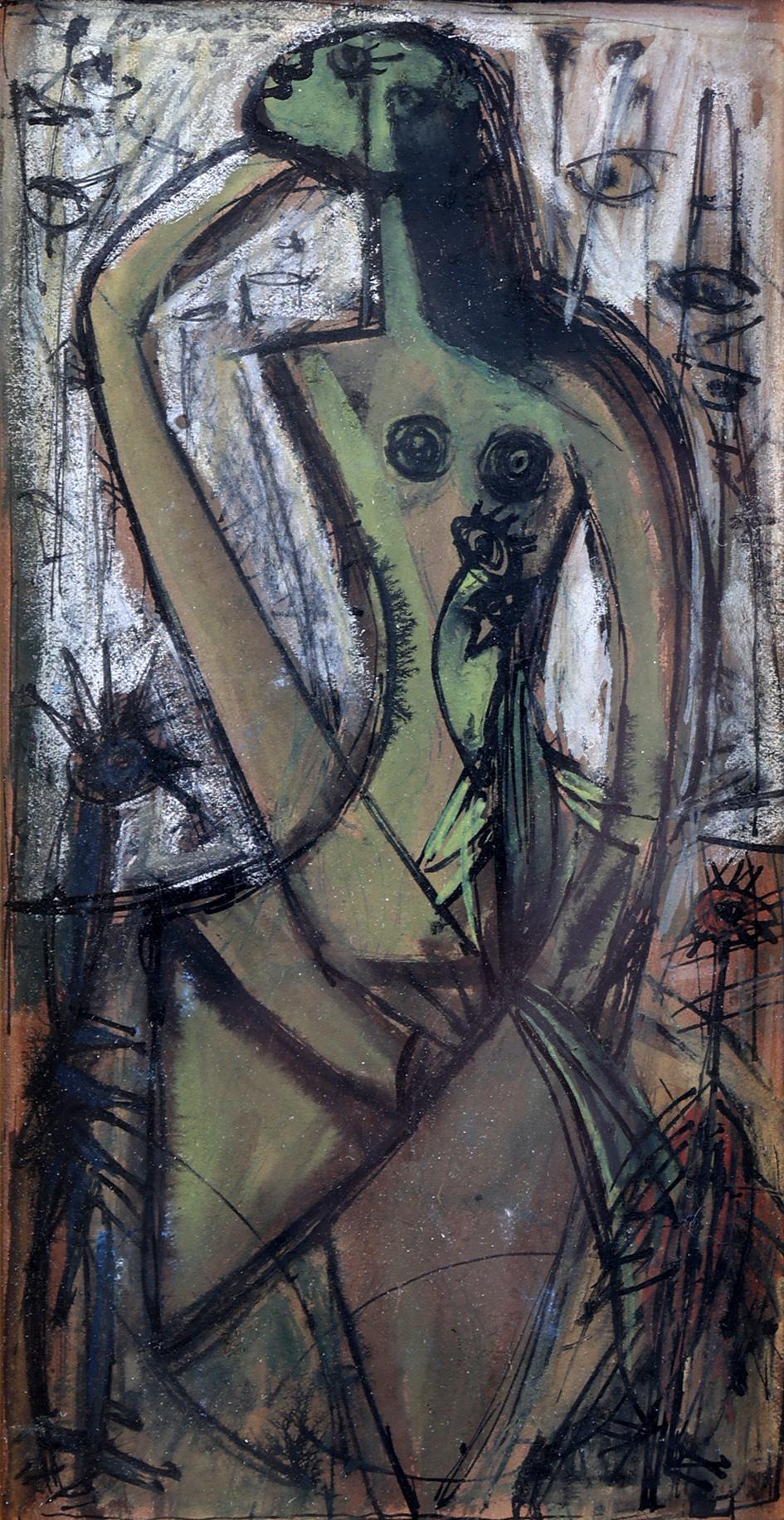 'Corneille', alias van Cornelis Guillaume van Beverloo (1922- 2010), Naakt (1947), gouache en inkt op papier, gesigneerd en gedateerd, 33 x 22 cm. Provenance: collectie Kunsthandel Elisabeth den Bieman de Haas, Amsterdam. Tentoonstelling: Cobra Museum voor Moderne Kunst, Amstelveen, 2002; Maison des Arts, Tunis, 2002; Museum of Fine Arts, Budapest, 2002; Galerie Le Salon Rouge, Le Rendez-Vous des Arts et des Lettres, Amsterdam; Kerstexpositie Galerie Elisabeth den Bieman de Haas 'Spel, Passie en beheersing', 2004