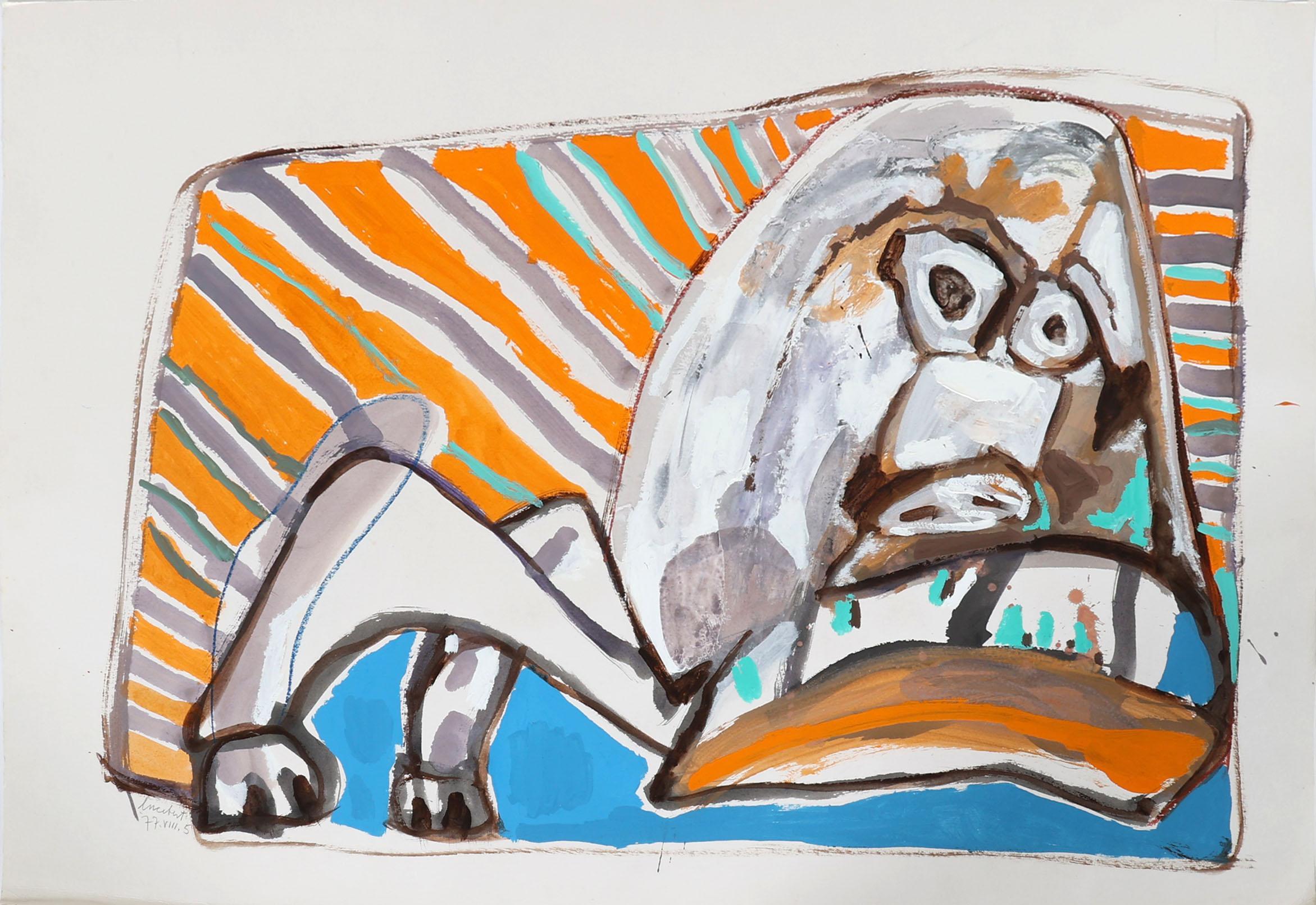 'Lucebert' alias van Lubertus Jacobus Swaanswijk (1924-1994), Waakhond II, gouache op papier, gesigneerd en genummerd 77.VIII.5, 70 x 100,5 cm.