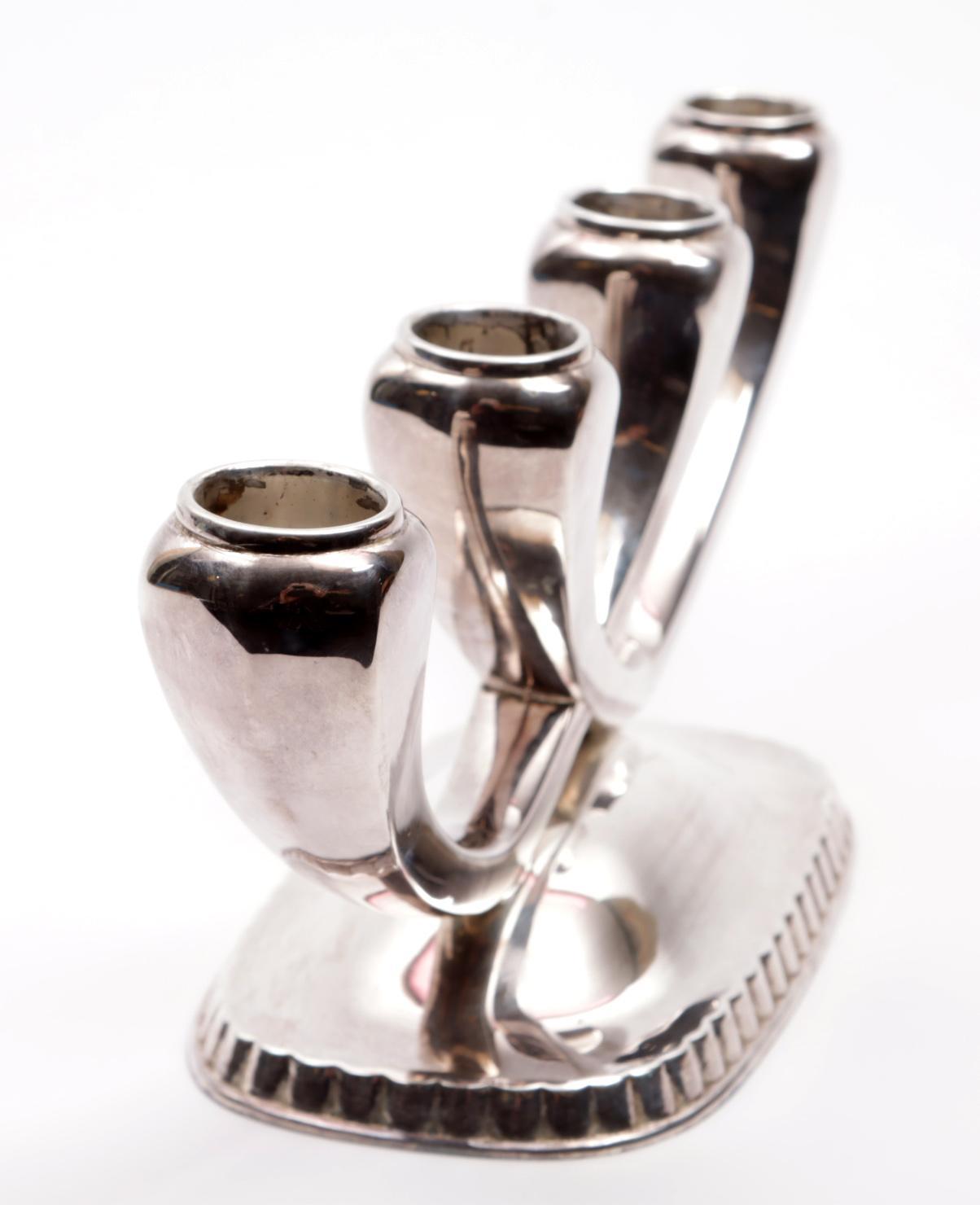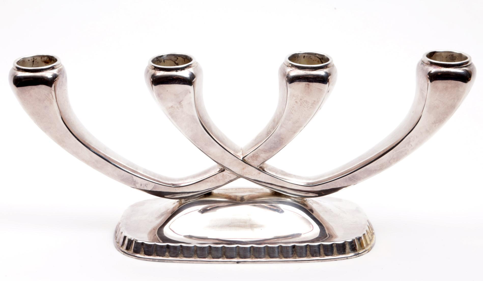 Zilveren 4-lichts kandelaar, h.12 cm., 675 gram