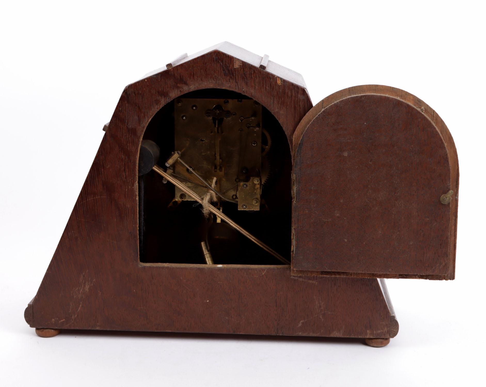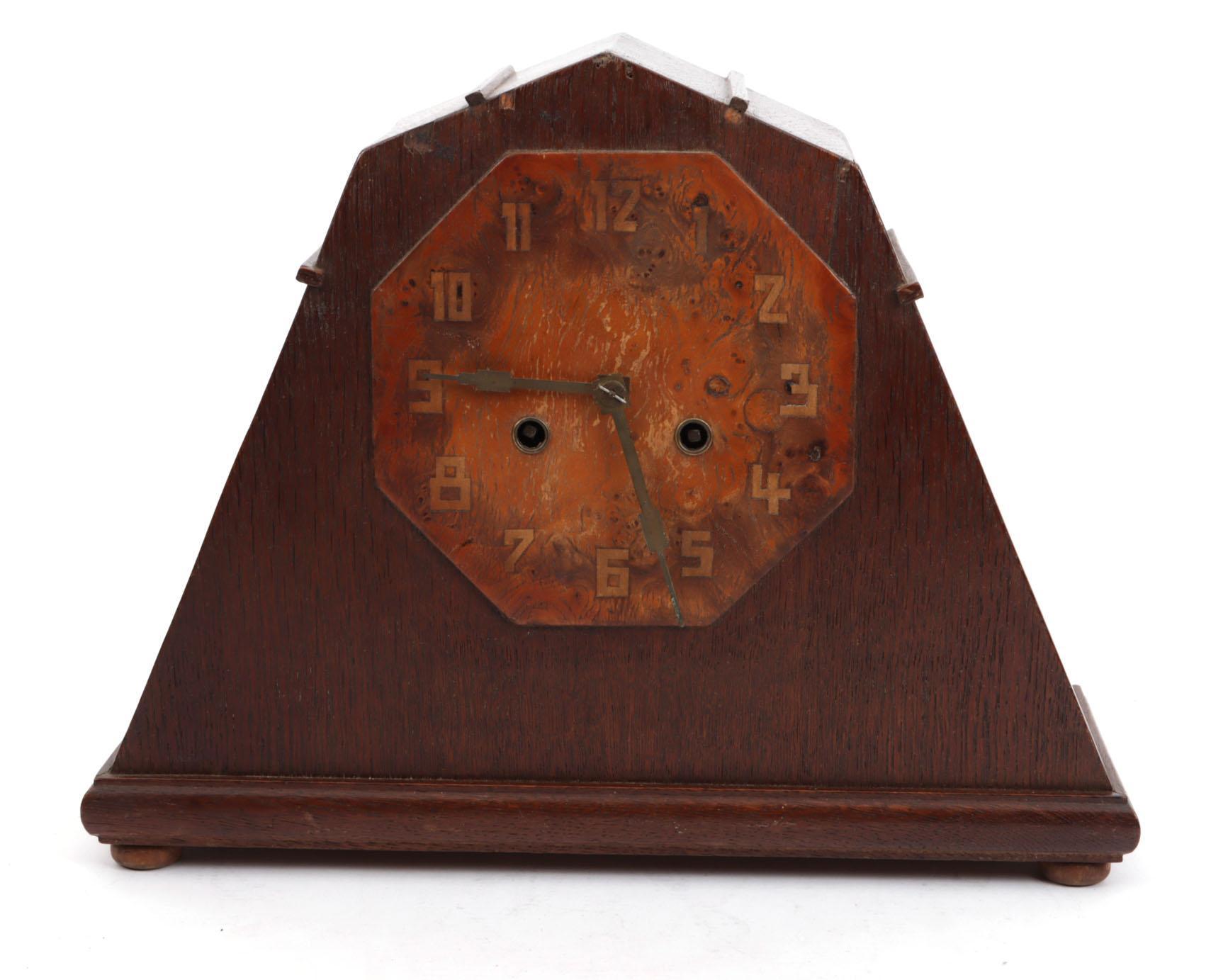 Eikenhouten schoorsteenpendule, h.29 cm.