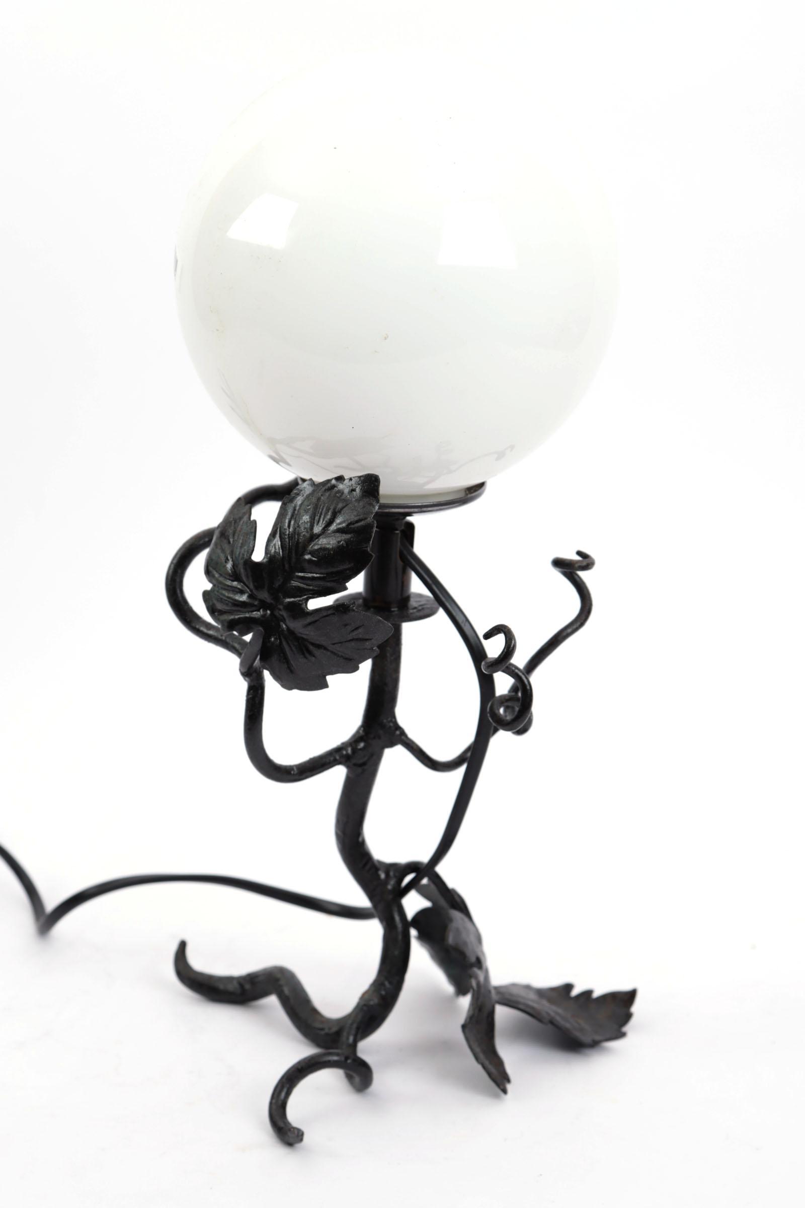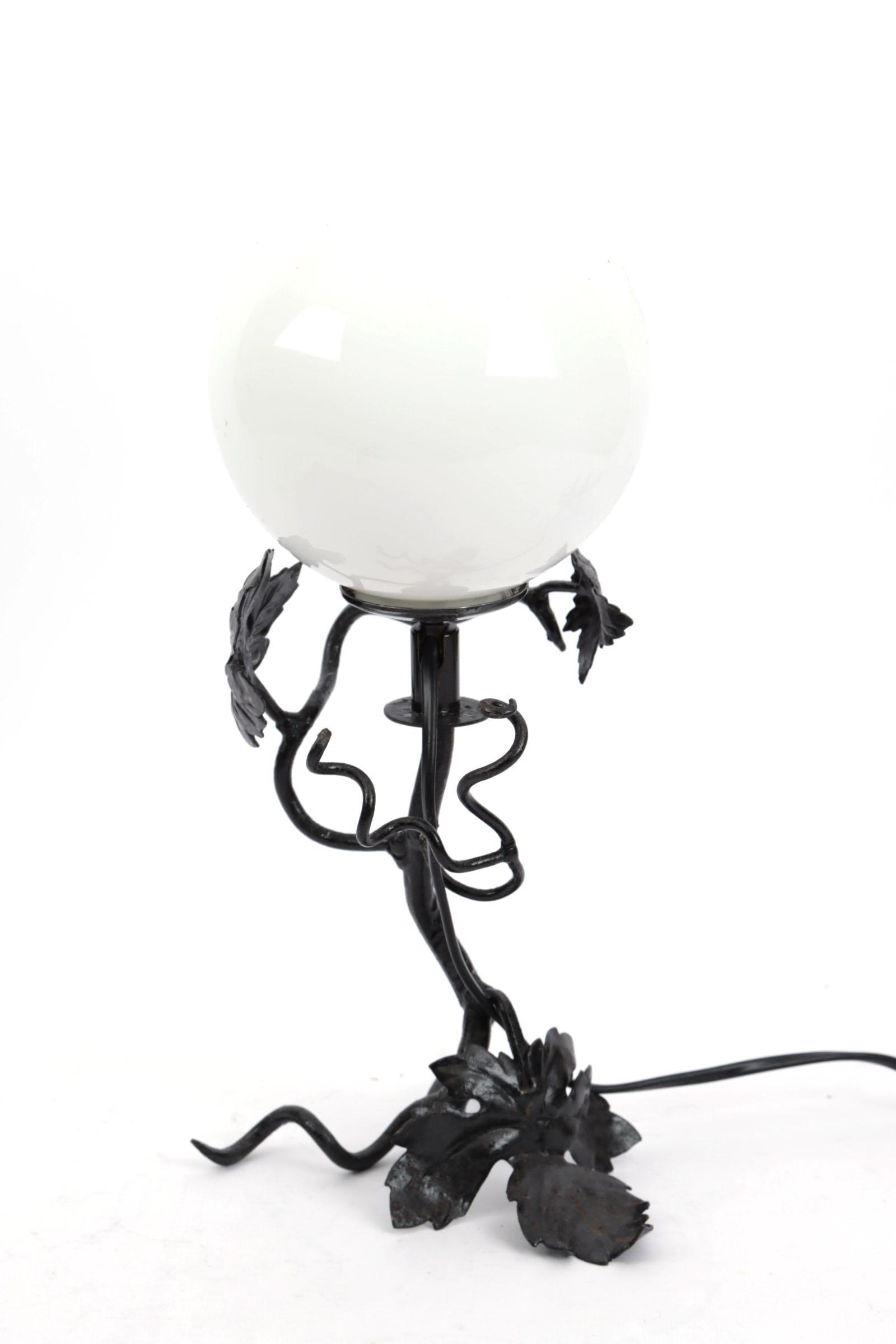 Ijzeren lampvoet met glazen bol, h.34 cm.