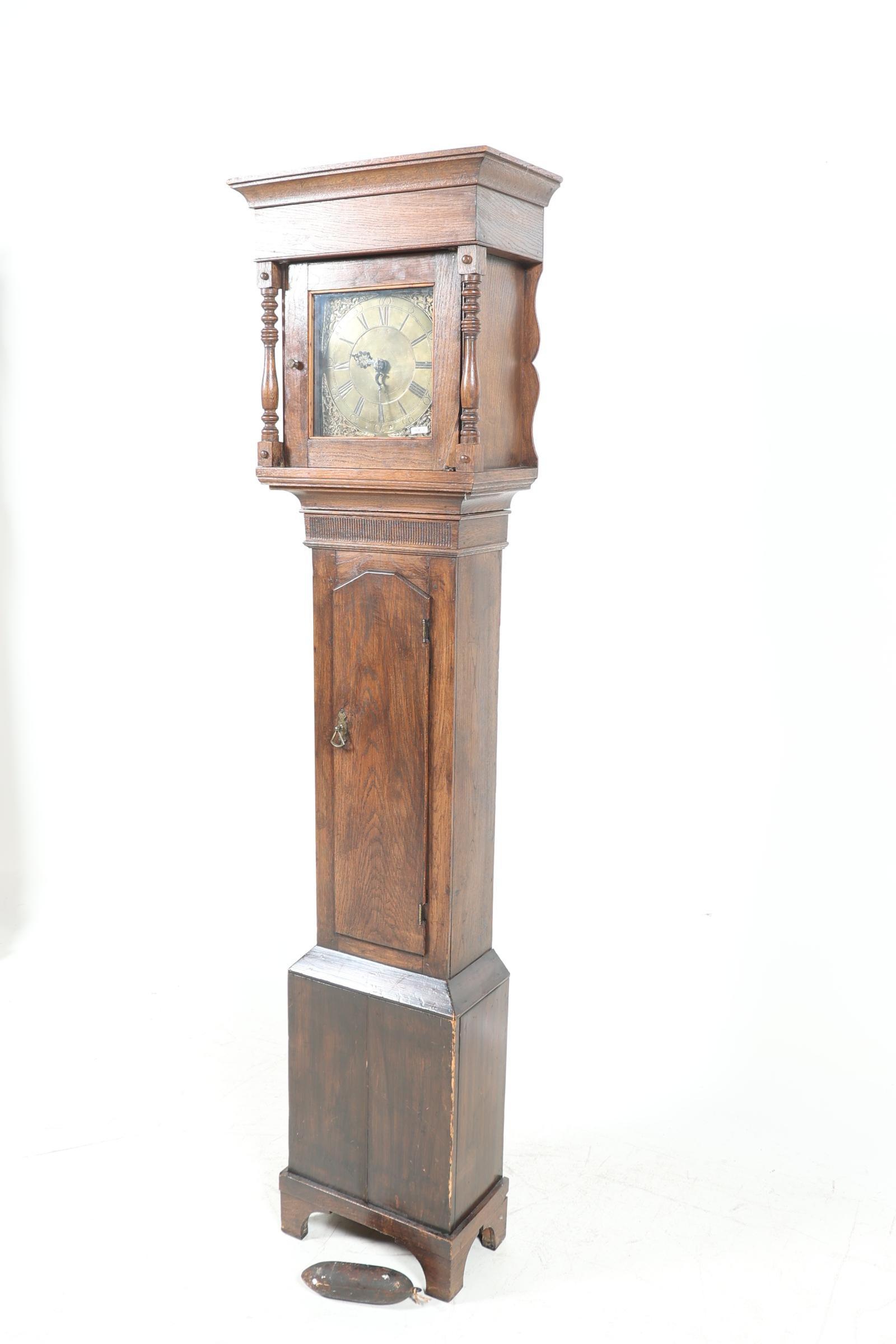 Antiek staand horloge in eikenhouten kast, h.210 cm.