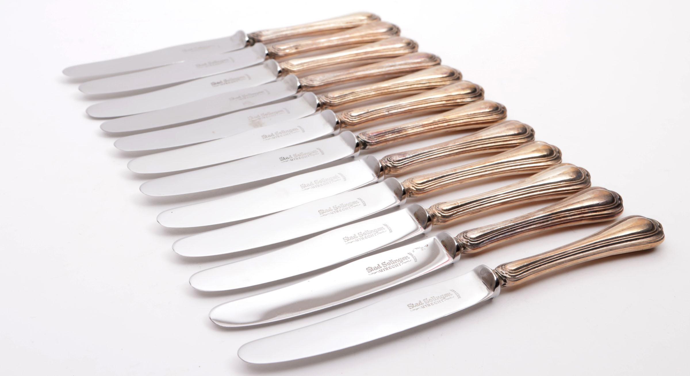 12 Messen met zilveren heften,