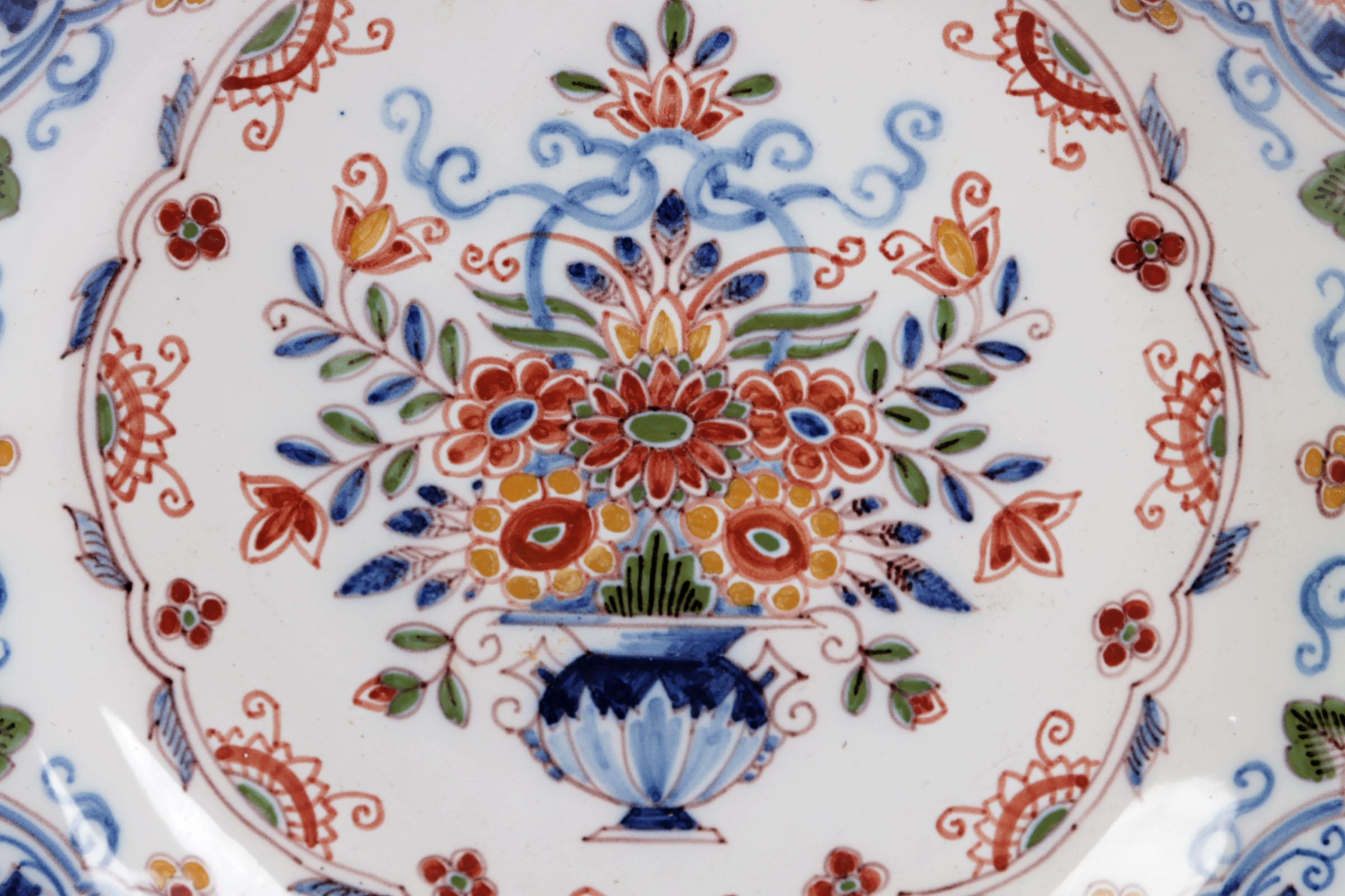 Makkum aardewerken schotel met florale motieven, diam.36 cm.
