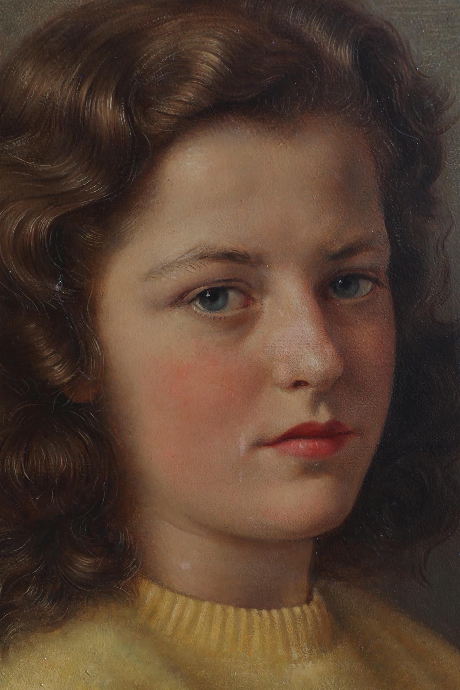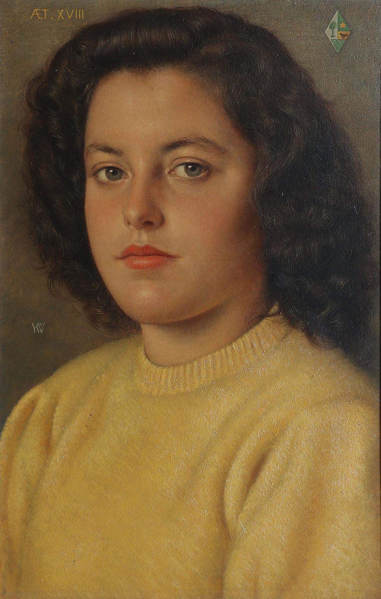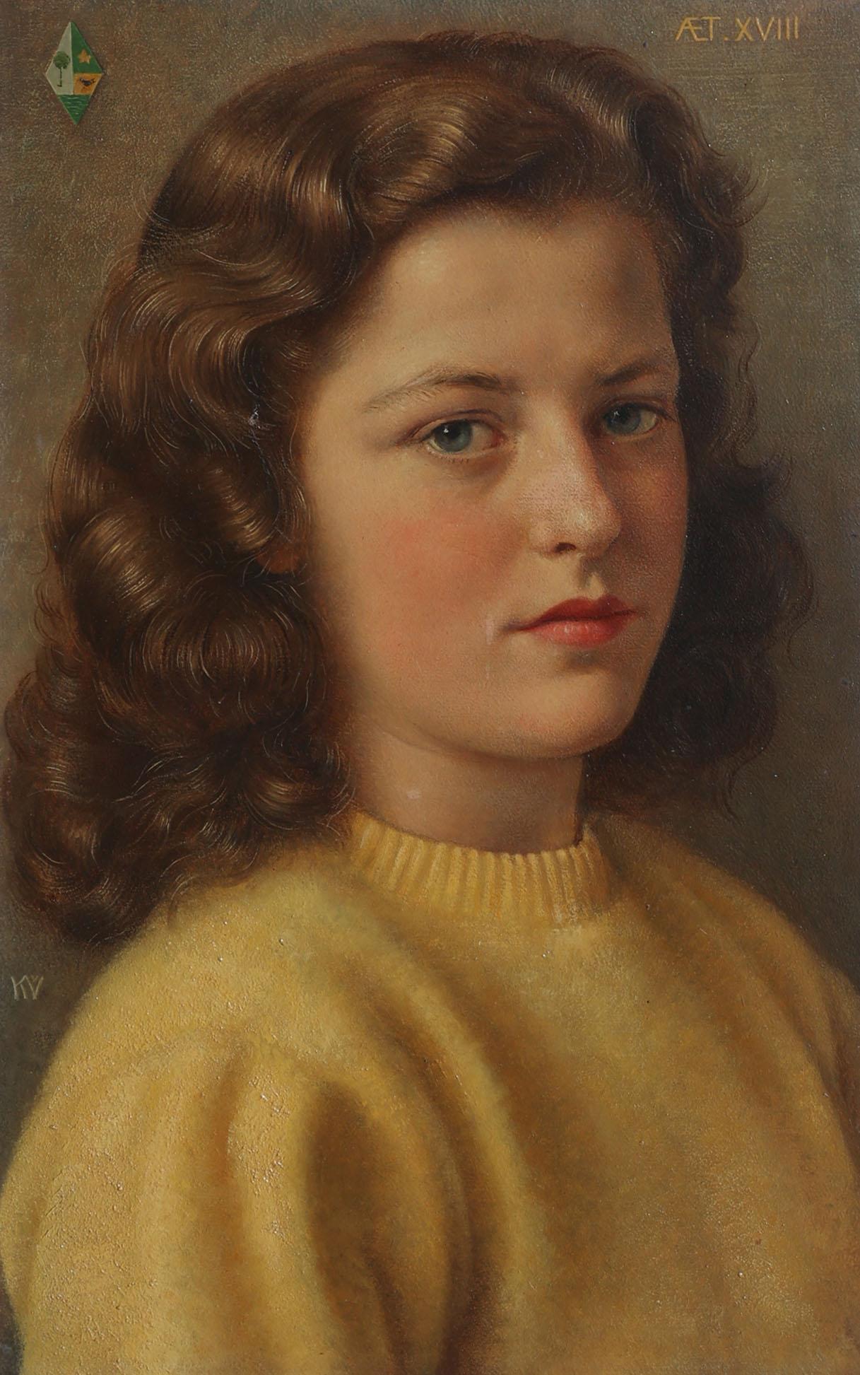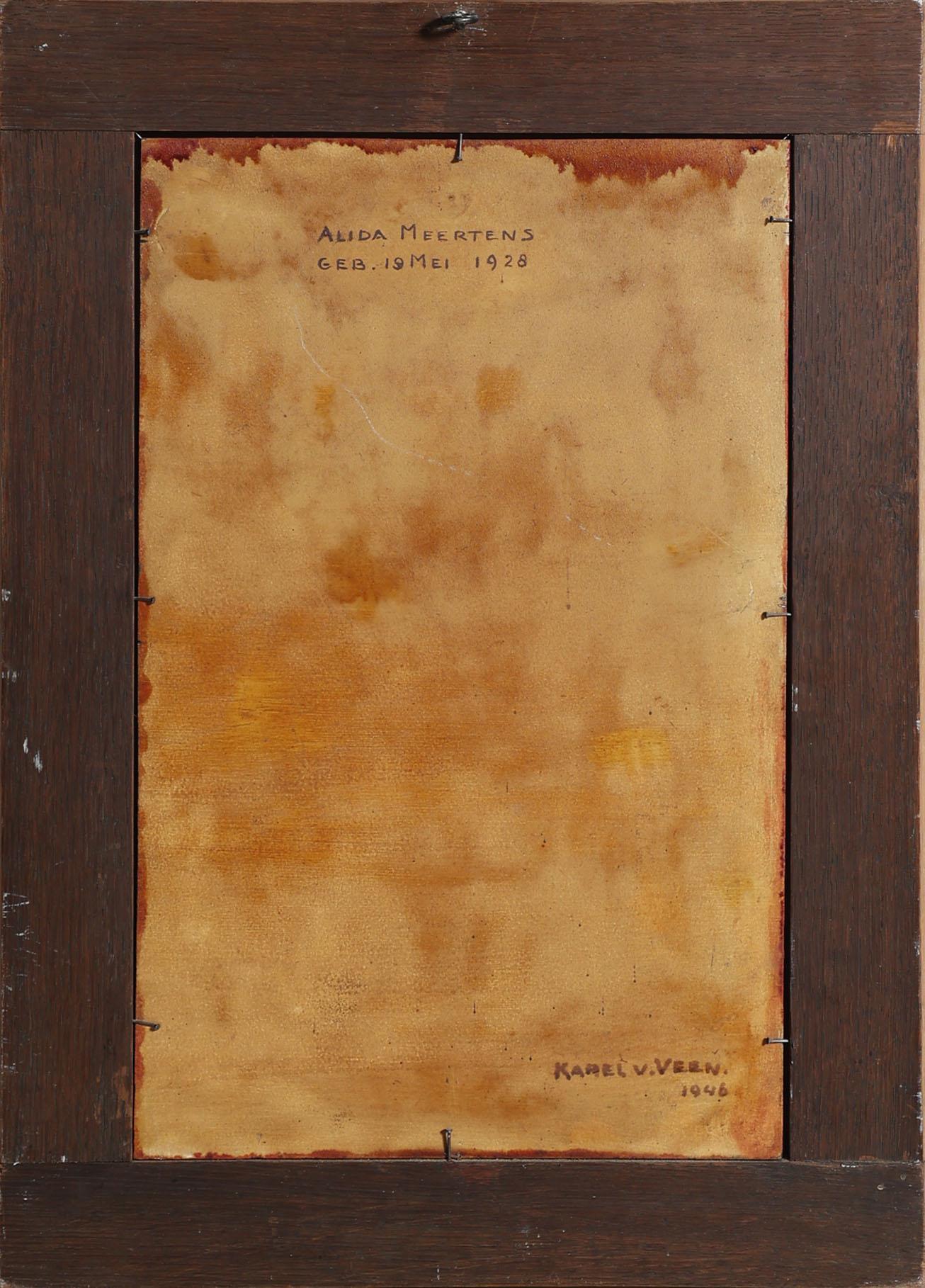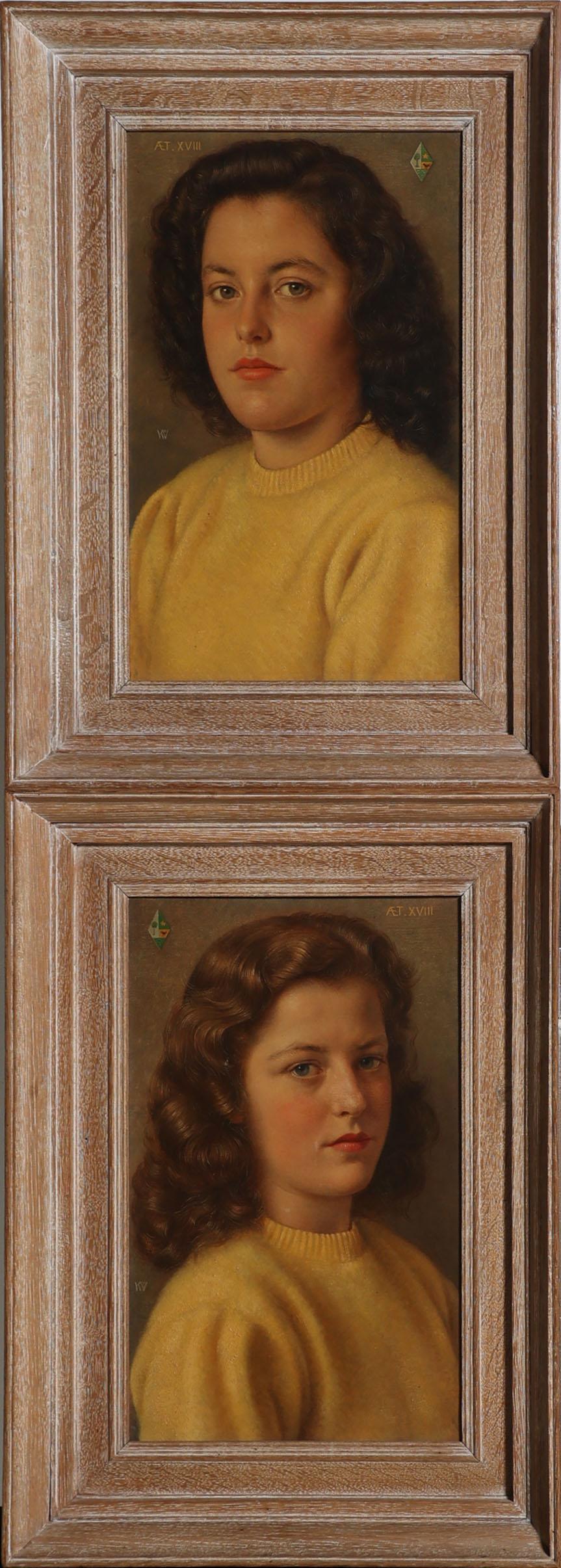 Karel van Veen (1898-1988), Portret van Alida en Mathilde Meertens, beide geboren op 19 mei 1928, olieverf op paneel, beide gedateerd op achterzijde 1946, 42 x 26 cm. per stuk